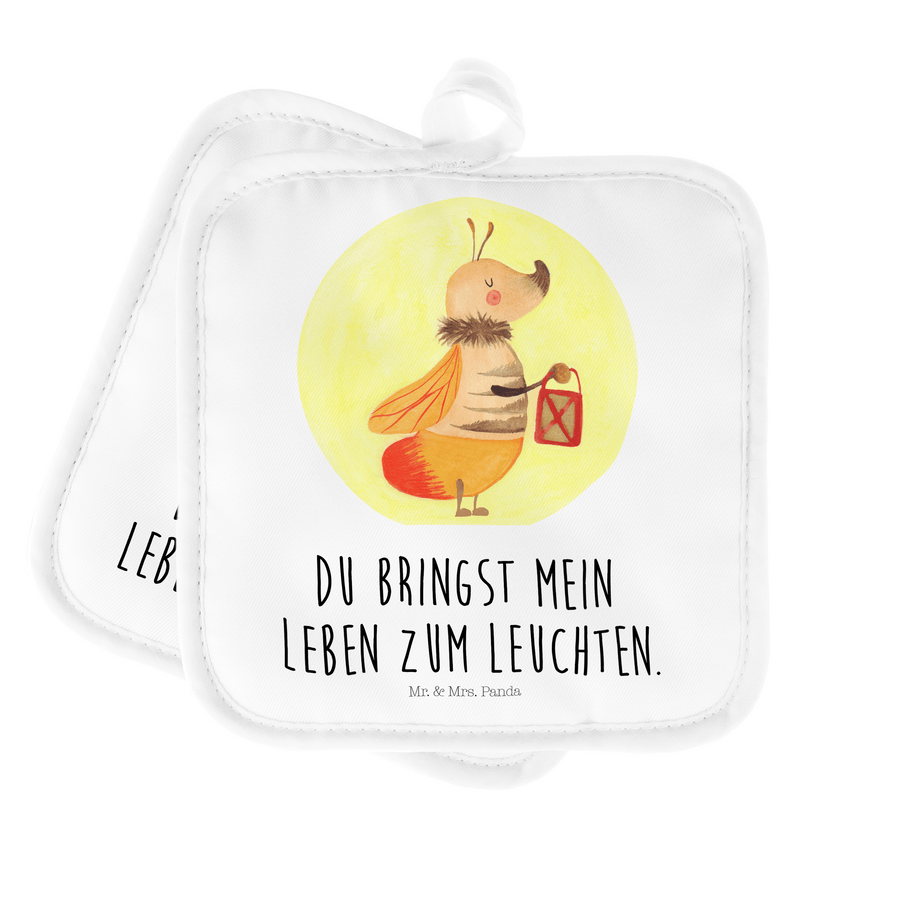 2er Set Topflappen Glühwürmchen - mit Spruch - Weiß