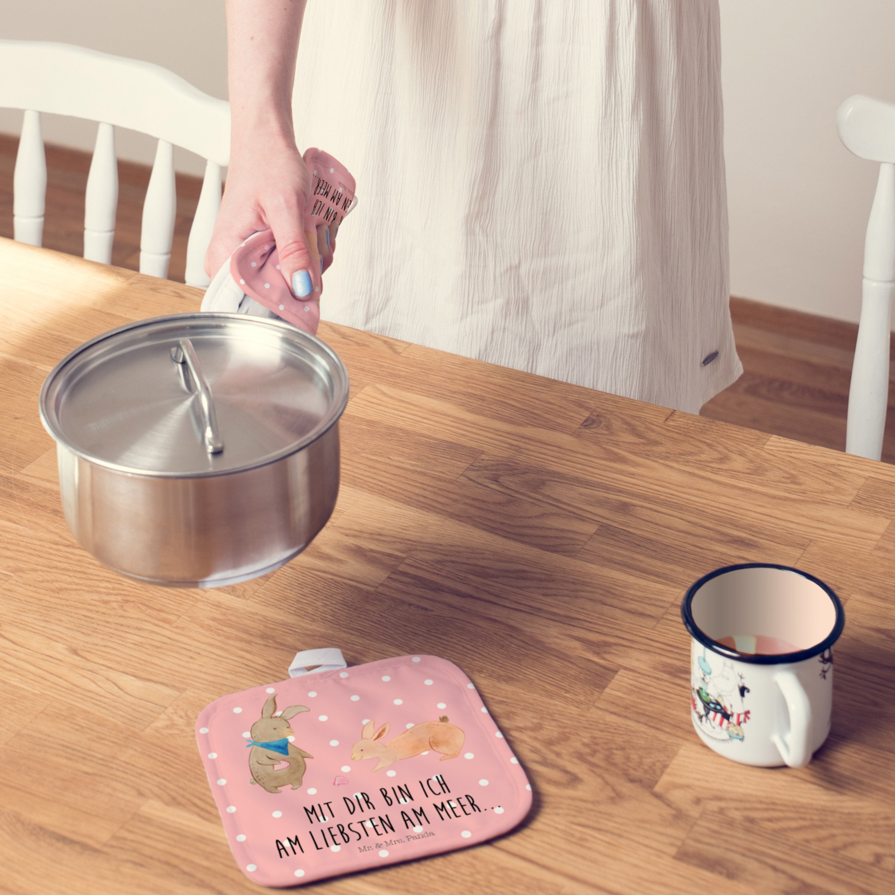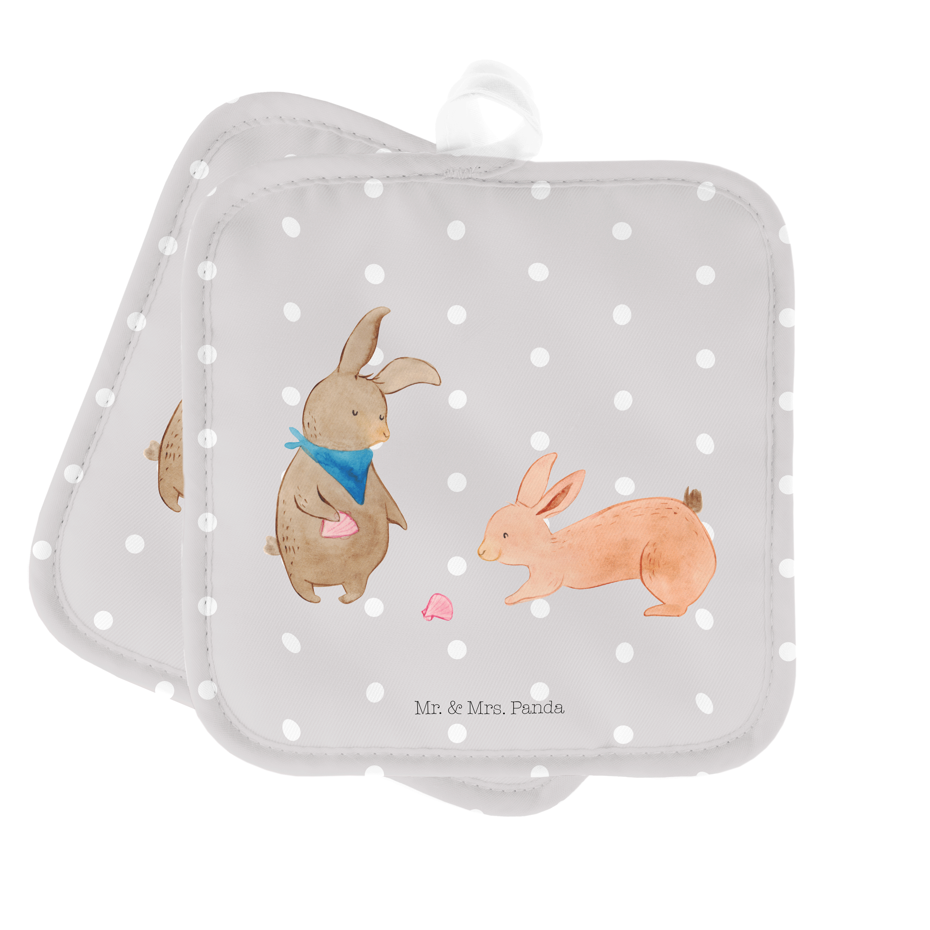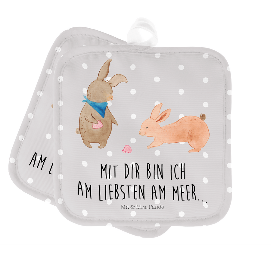 2er Set Topflappen Hasen Muschel - mit Spruch - Grau Pastell