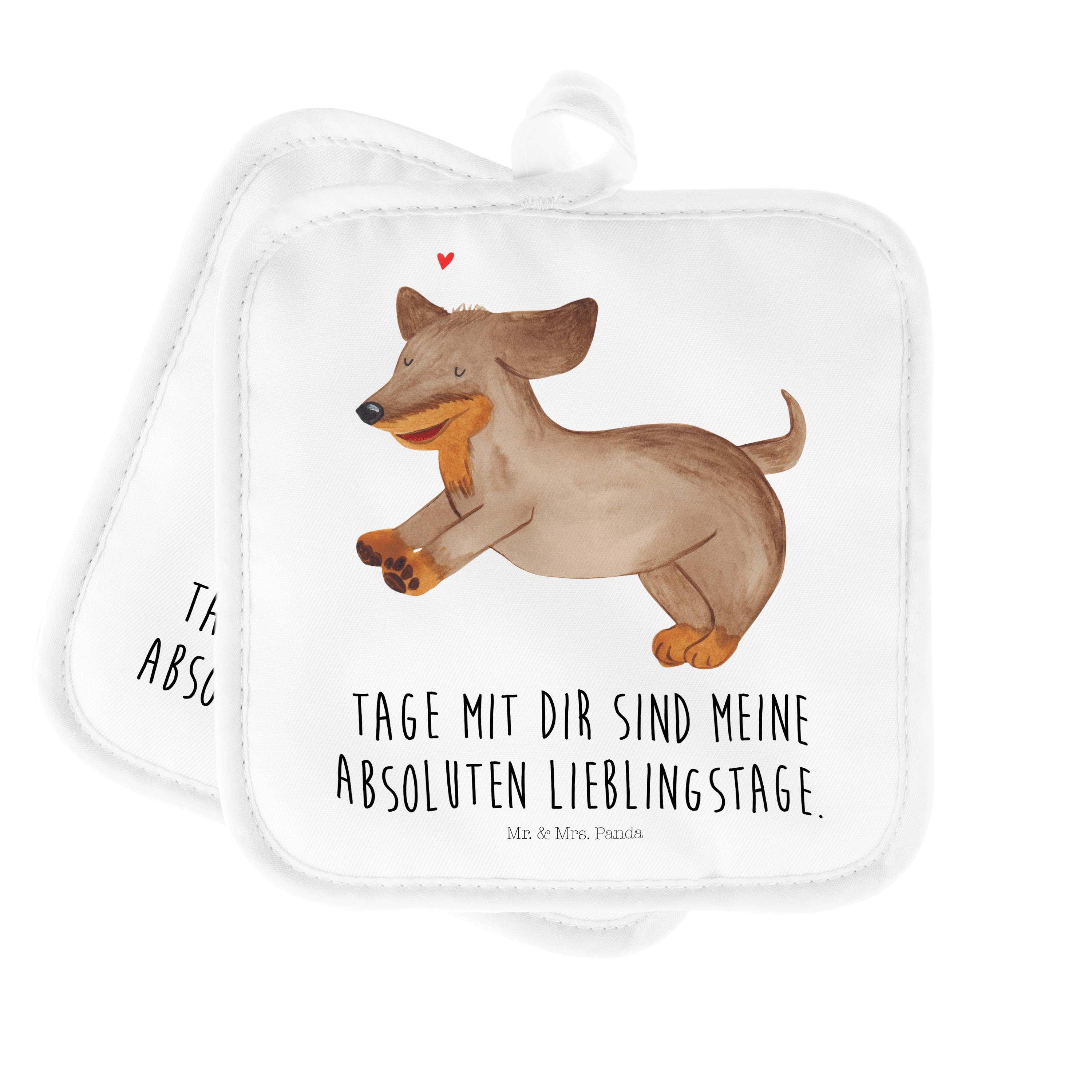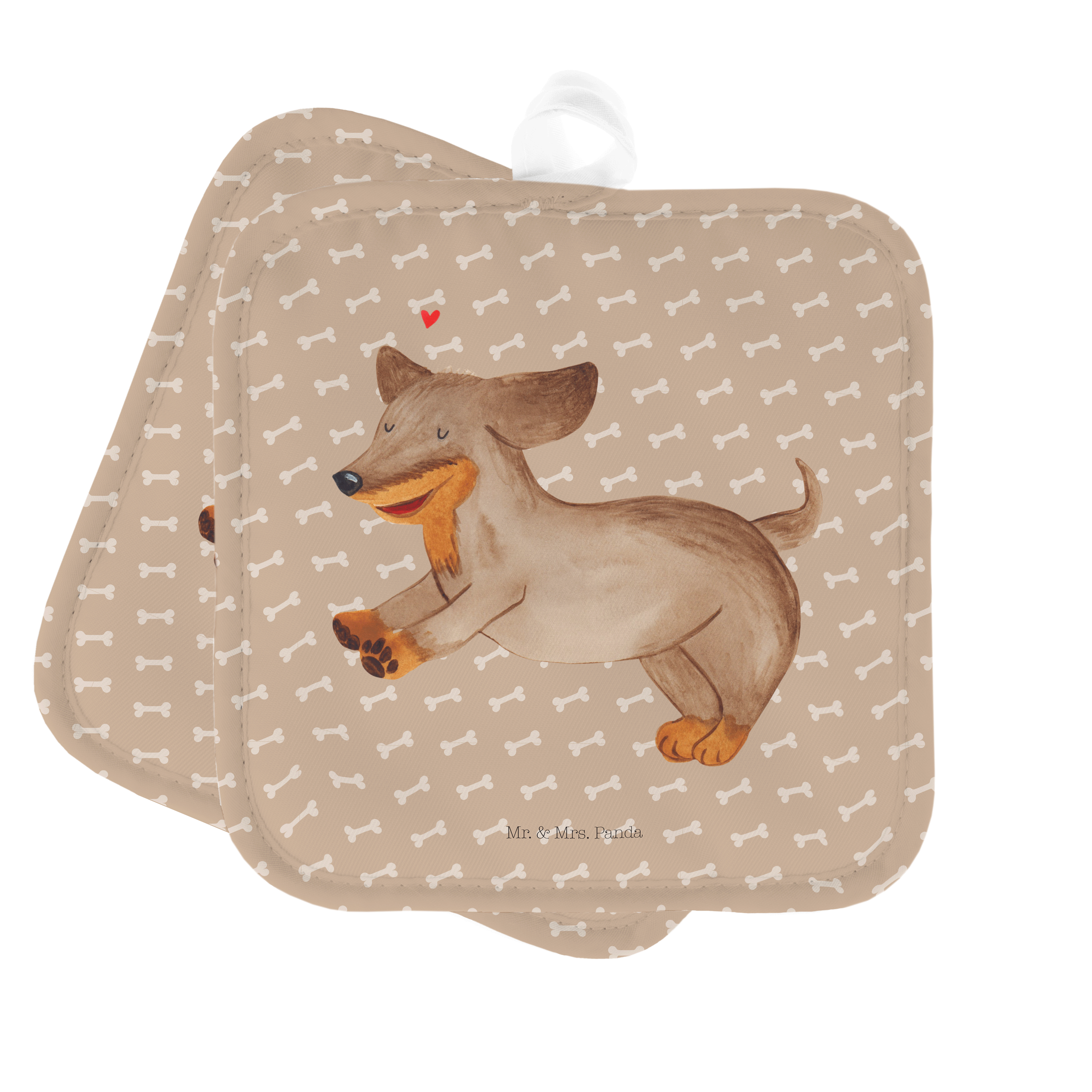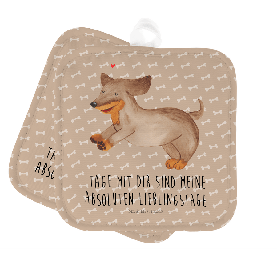 2er Set Topflappen Hund Dackel fröhlich - mit Spruch - Hundeglück