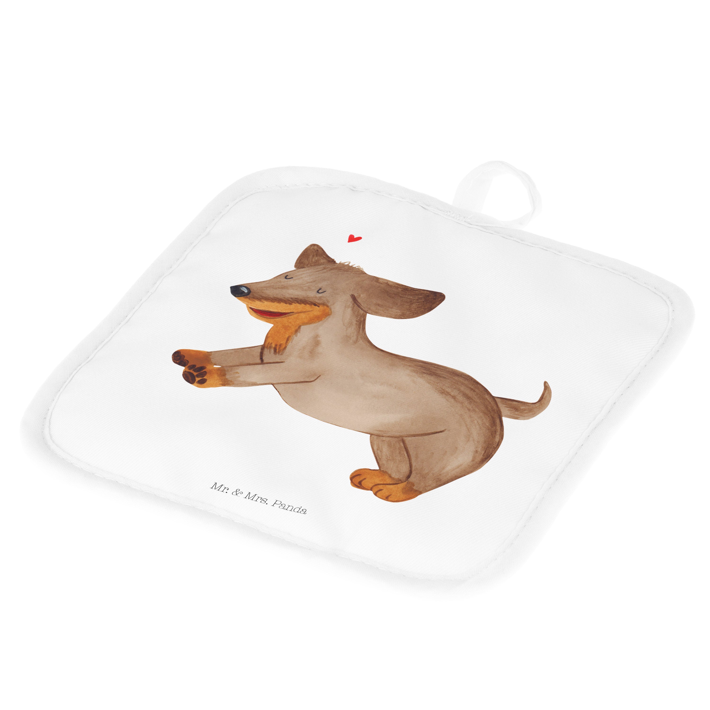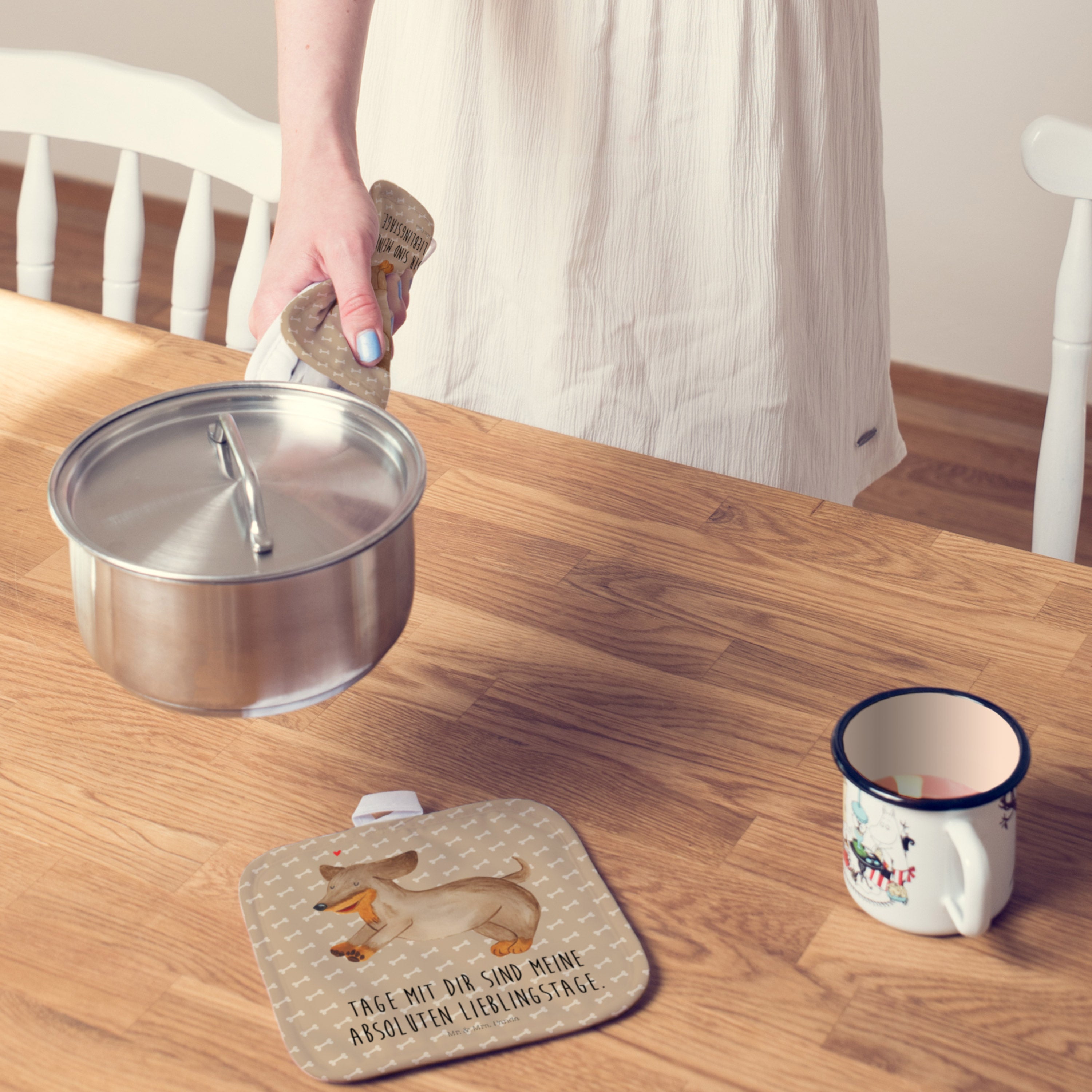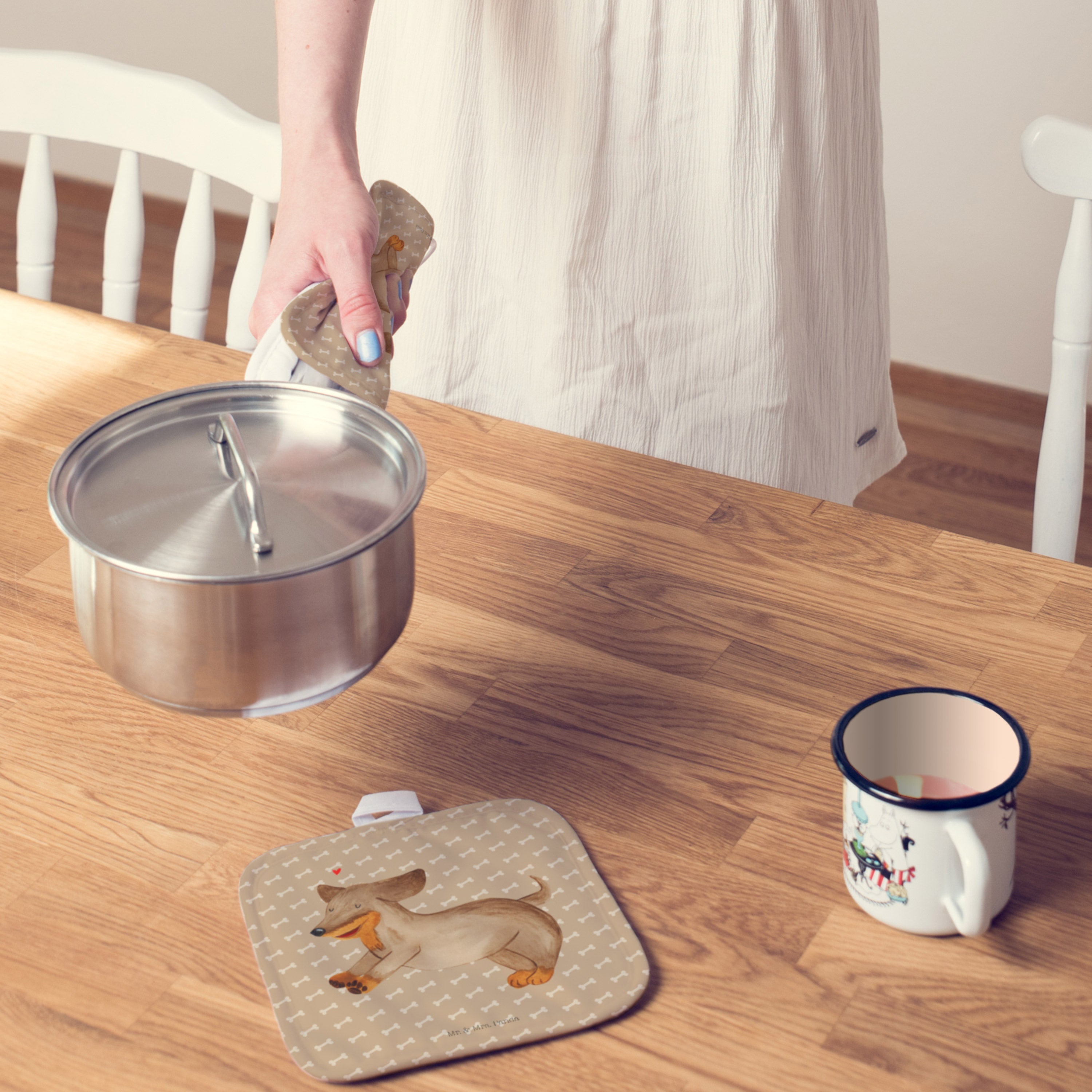 2er Set Topflappen Hund Dackel fröhlich - mit Spruch - Hundeglück