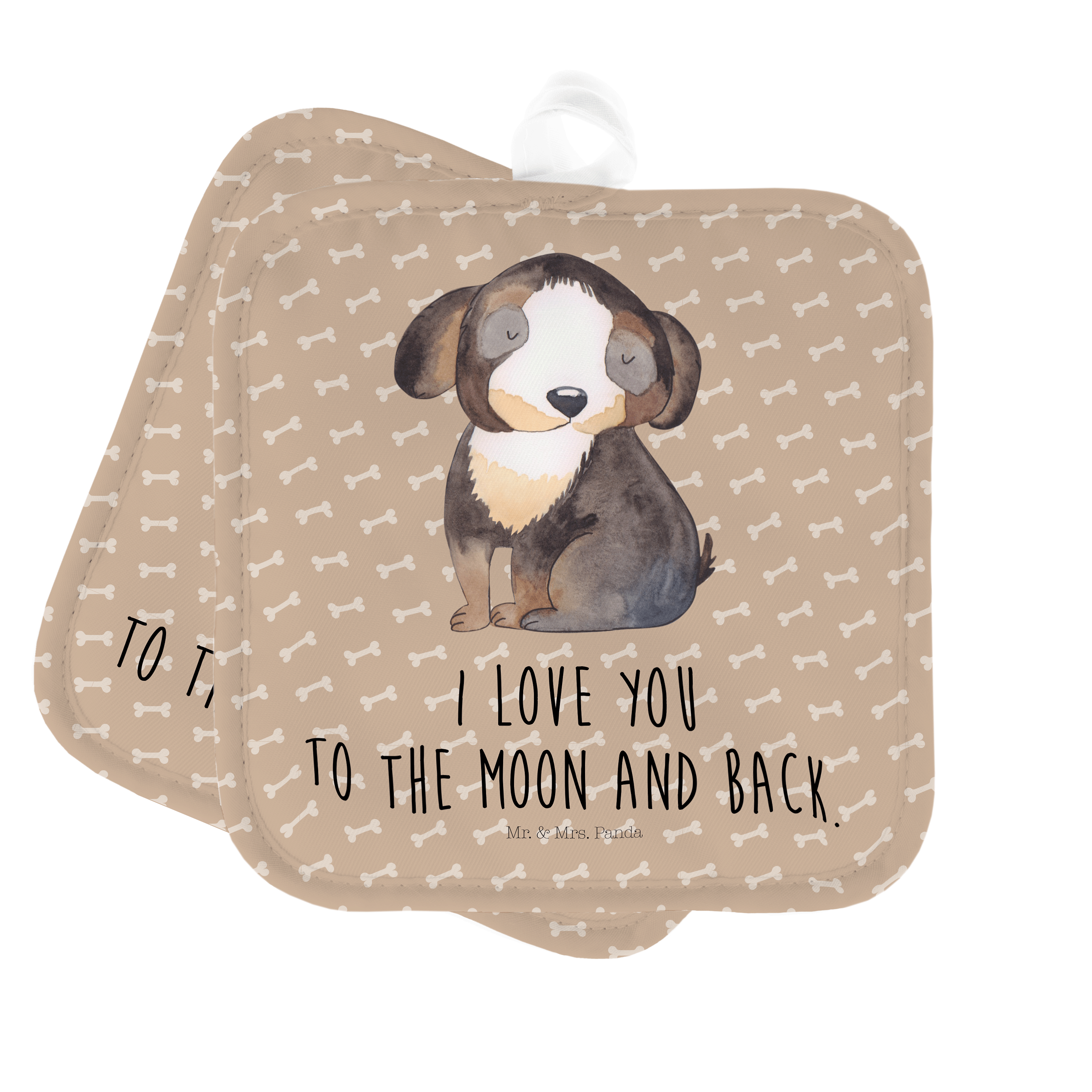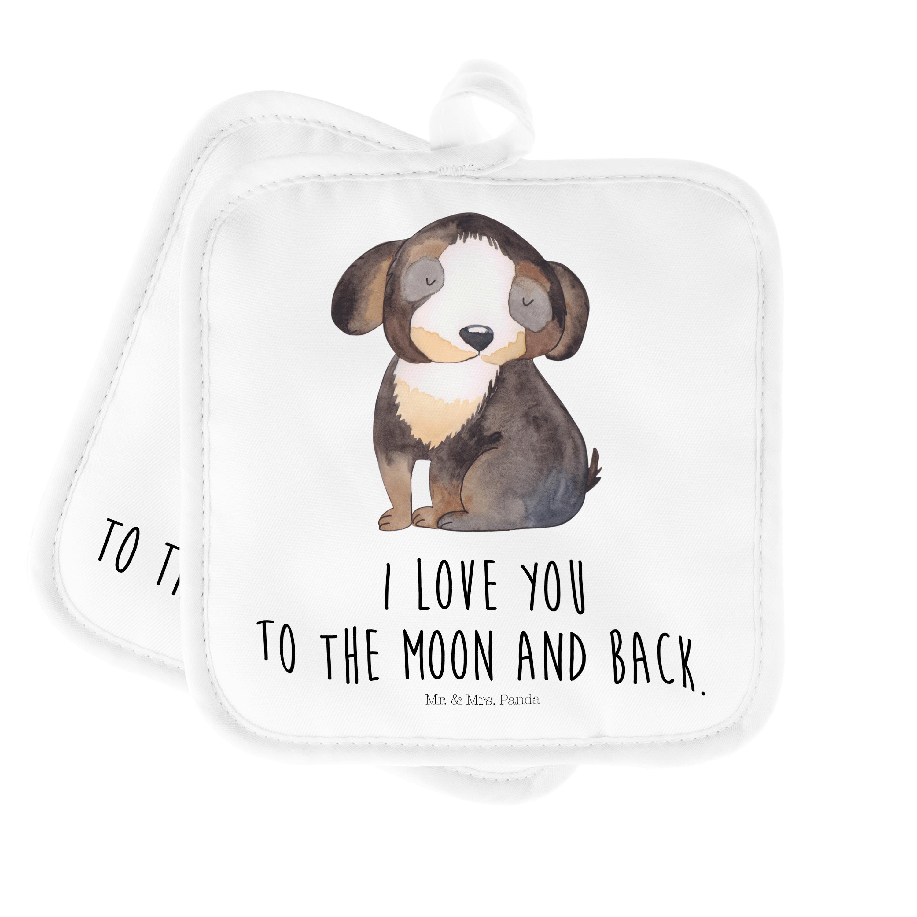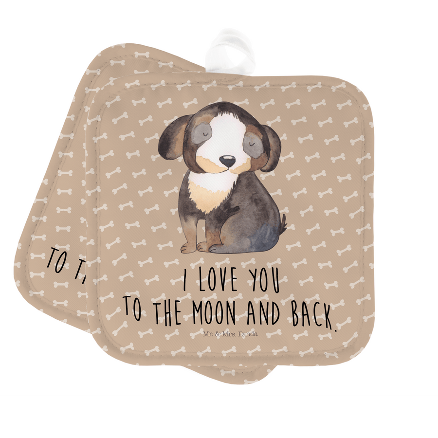 2er Set Topflappen Hund entspannt - mit Spruch - Hundeglück
