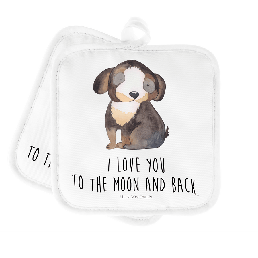 2er Set Topflappen Hund entspannt - mit Spruch - Weiß