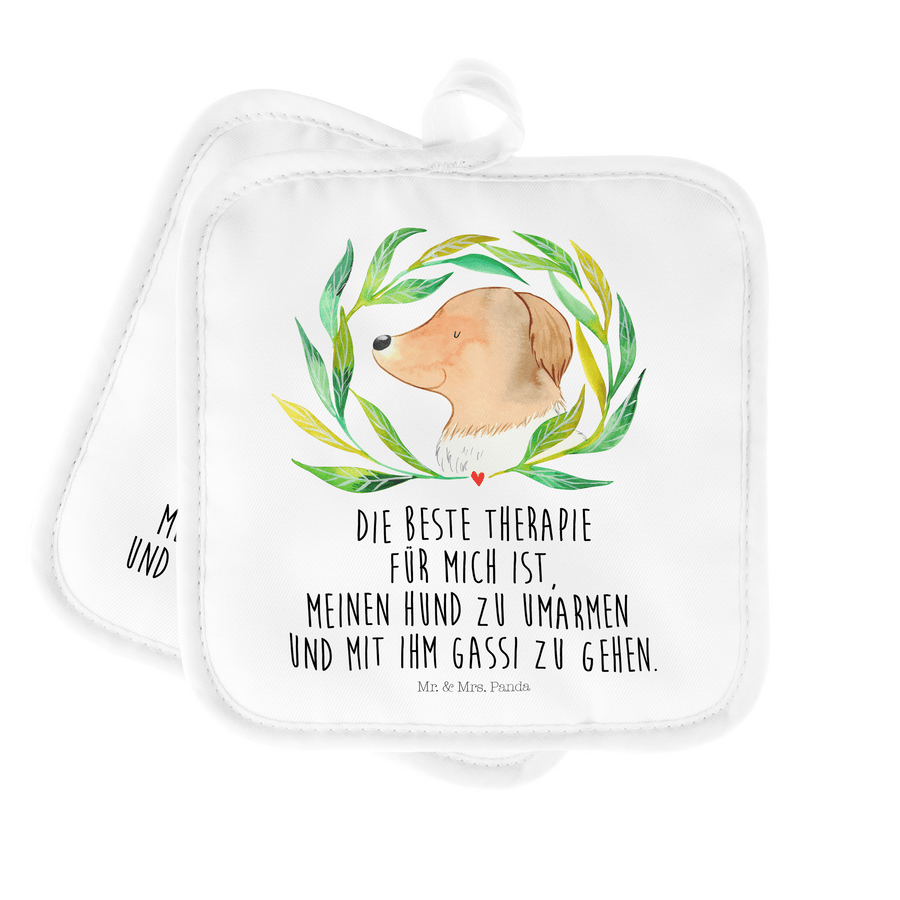 2er Set Topflappen Hund Ranke - mit Spruch - Weiß