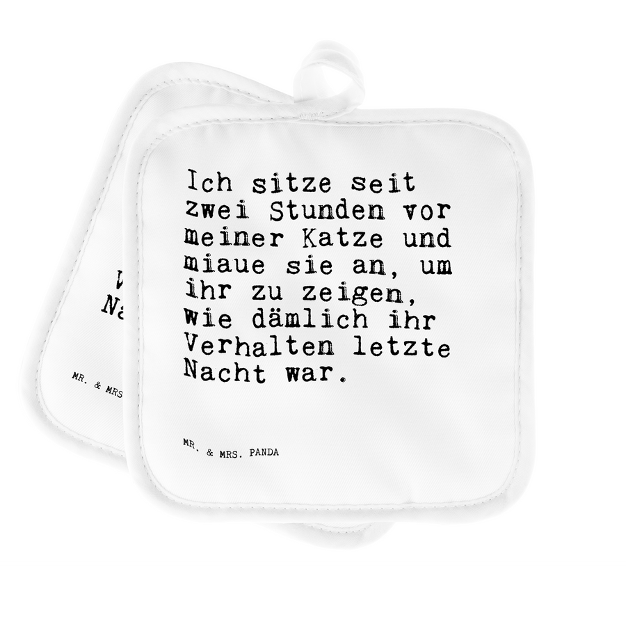 2er Set Topflappen  Sprüche und Zitate Ich sitze seit zwei Stunden vor meiner Katze und miaue sie an, um ihr zu zeigen, wie dämlich ihr Verhalten letzte Nacht war. Topflappen, Topfuntersetzer, Ofenhandschuh, Topflappen Set, Topflappen lustig, Topflappen mit Spruch, Spruch, Sprüche, lustig, Weisheiten, Zitate, Spruch Sprüche Weisheiten Zitate Lustig Weisheit Worte