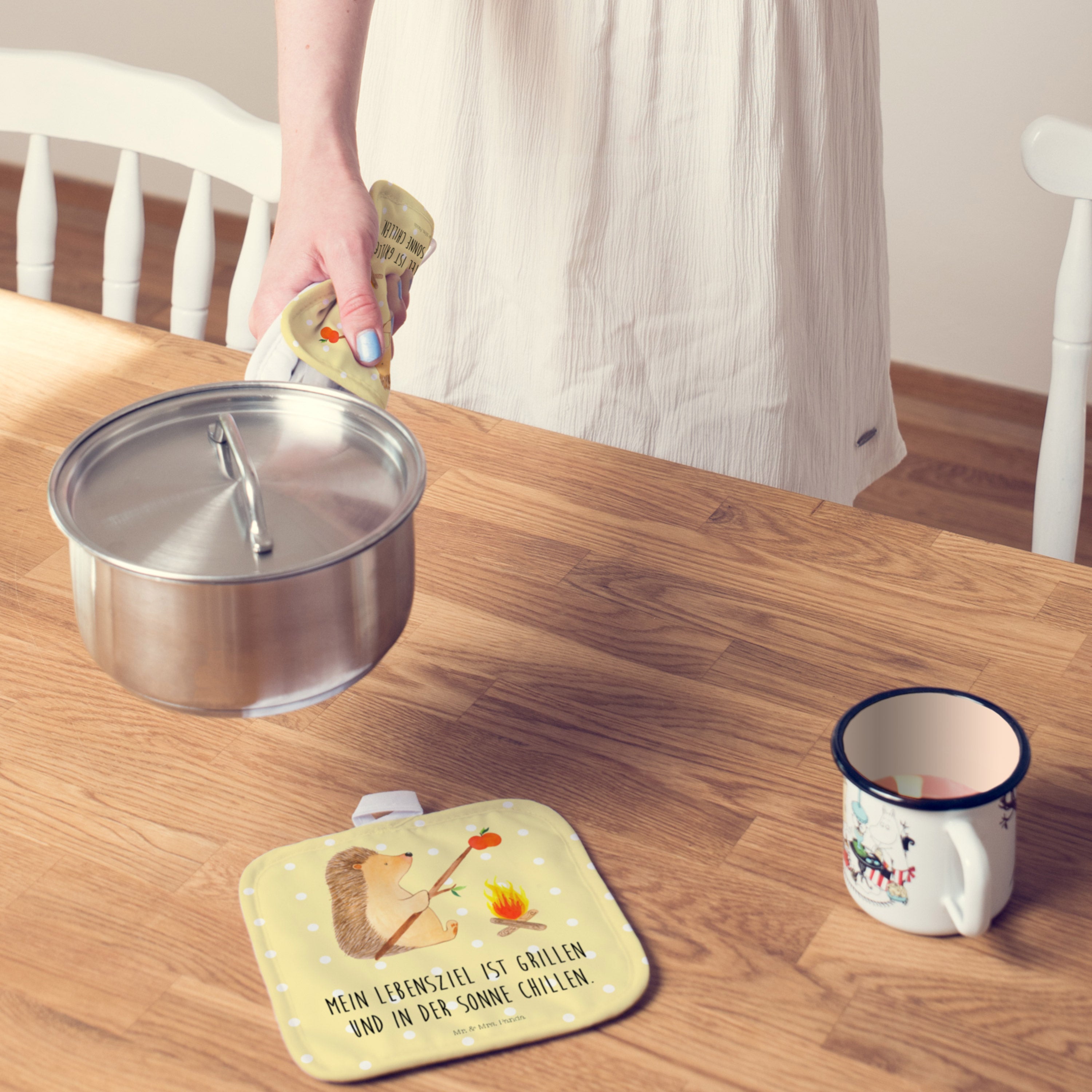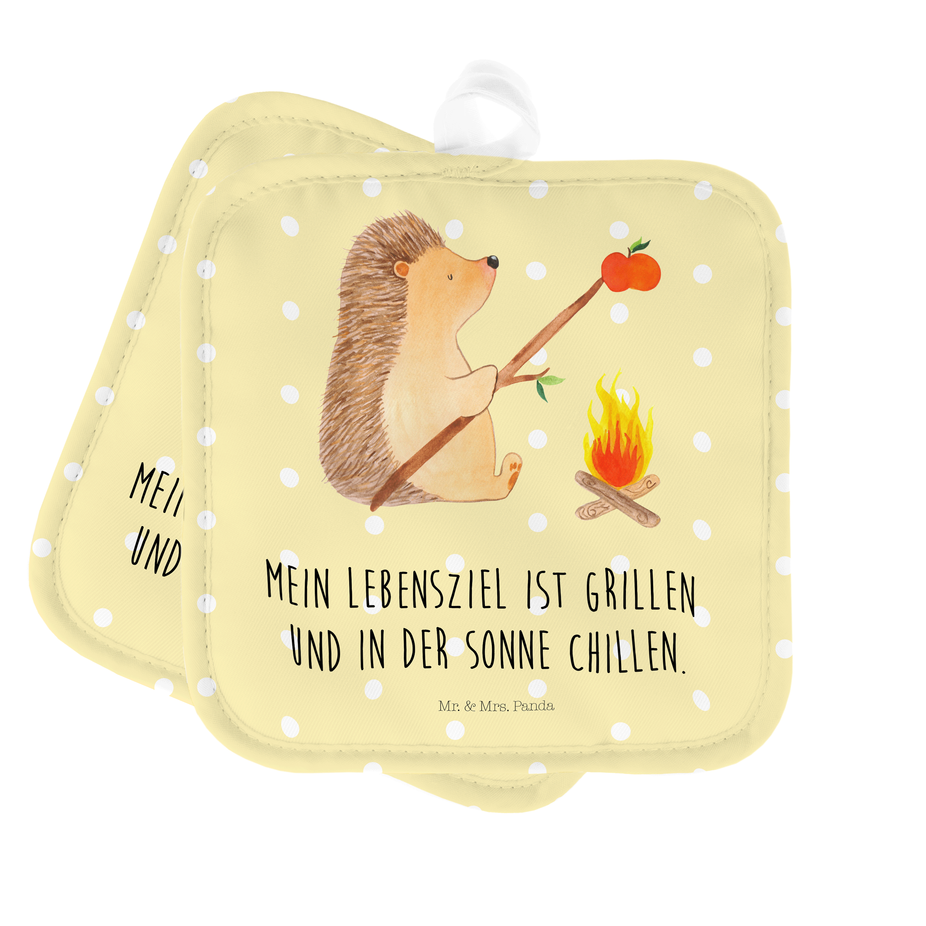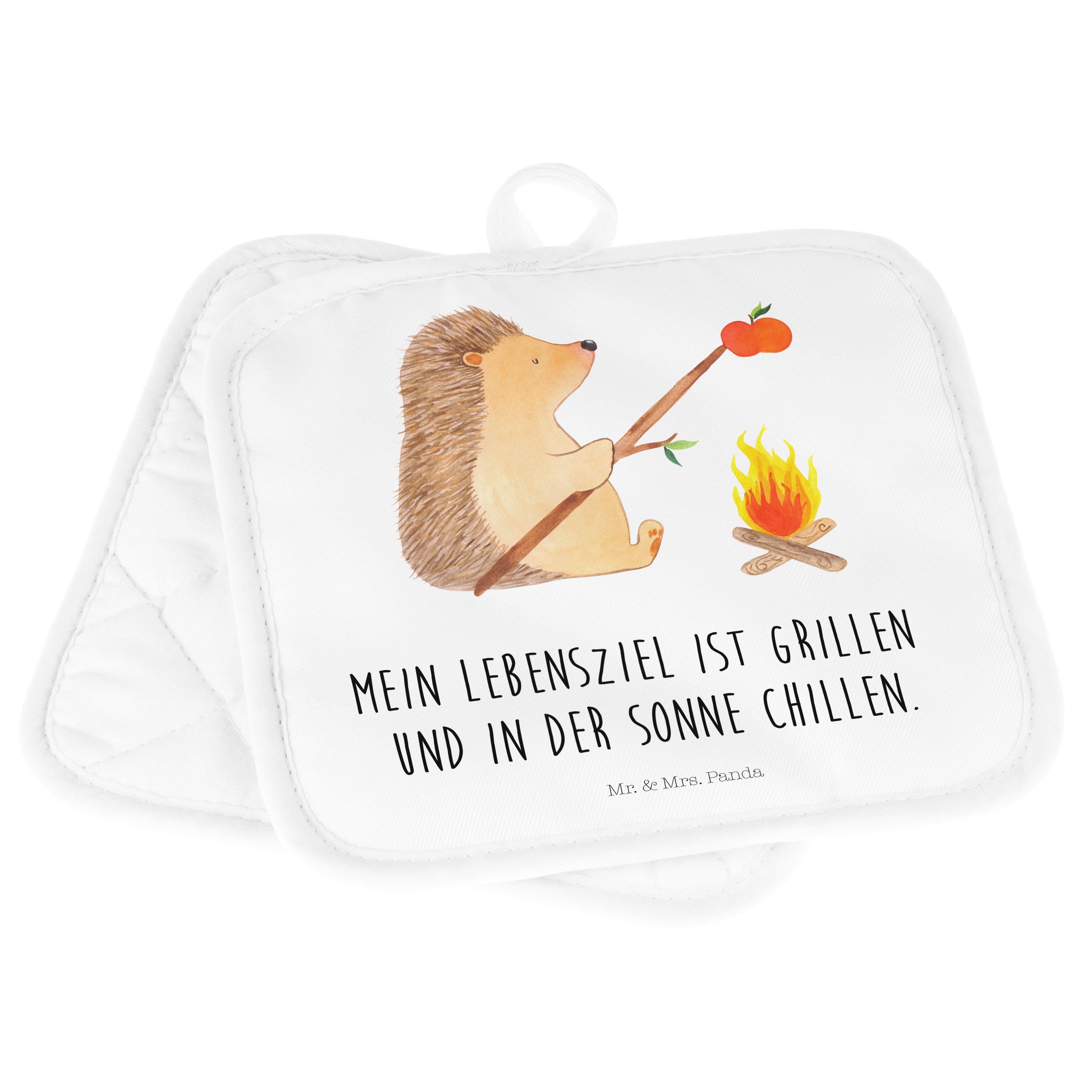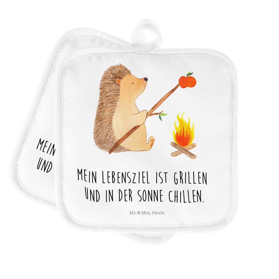 2er Set Topflappen Igel grillt - mit Spruch - Weiß