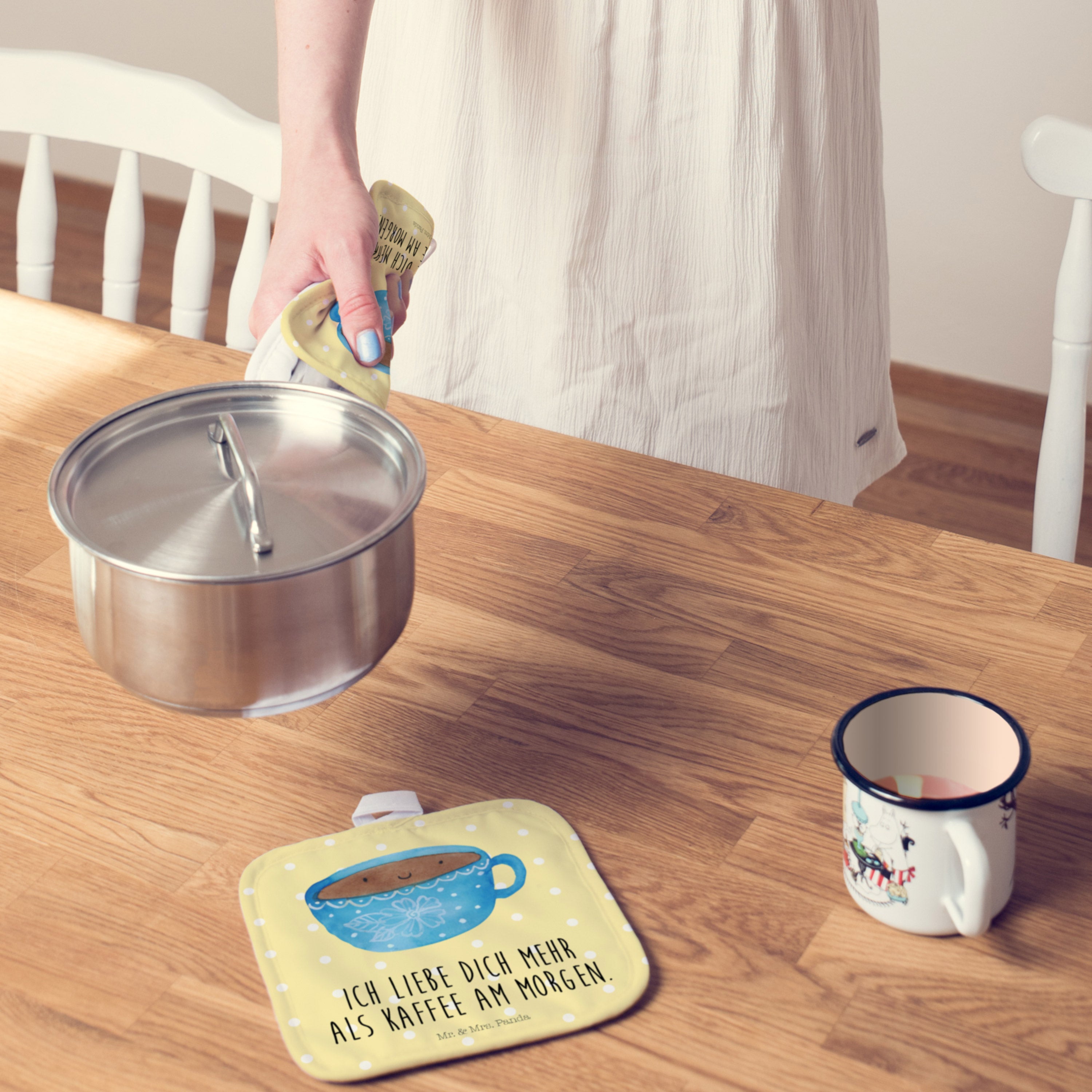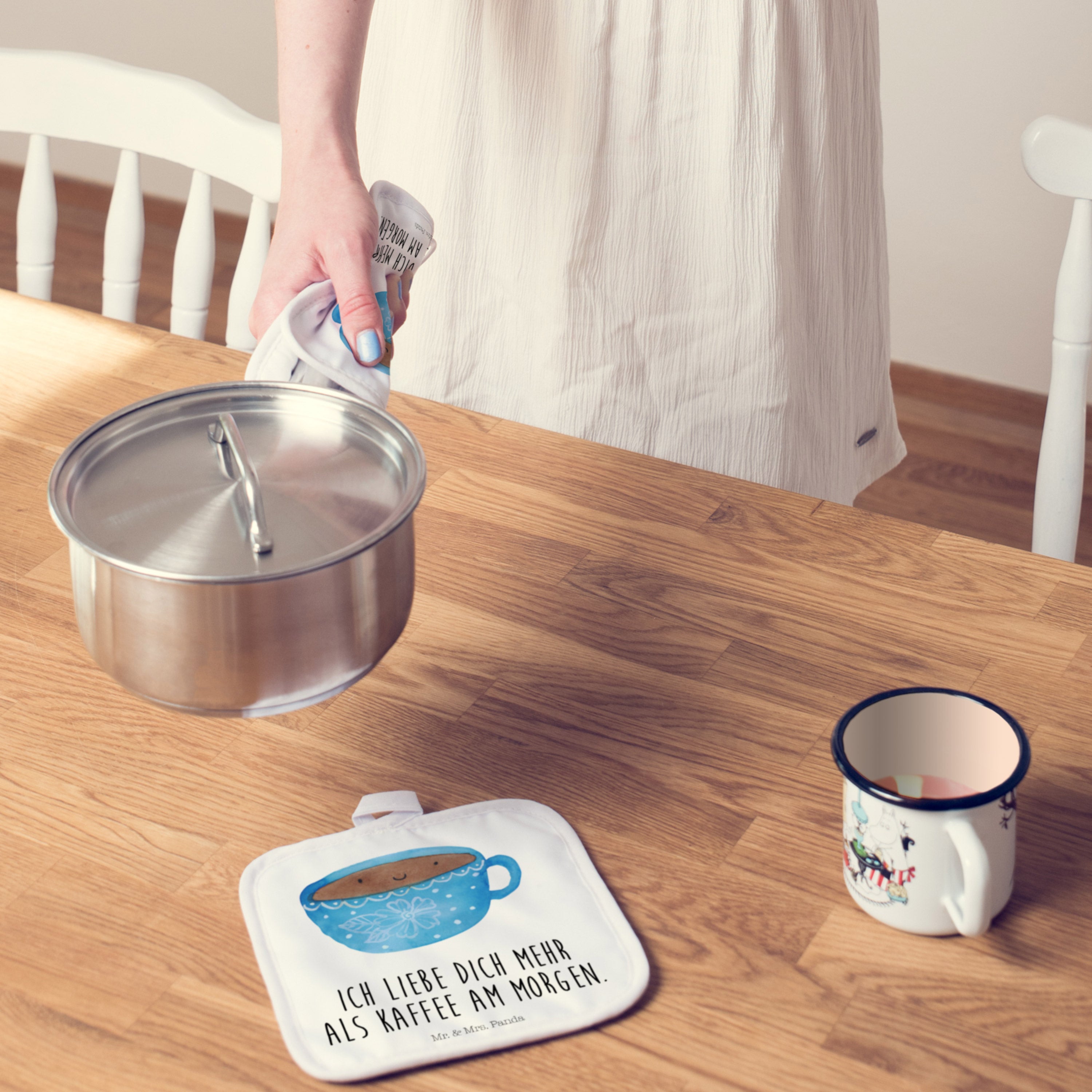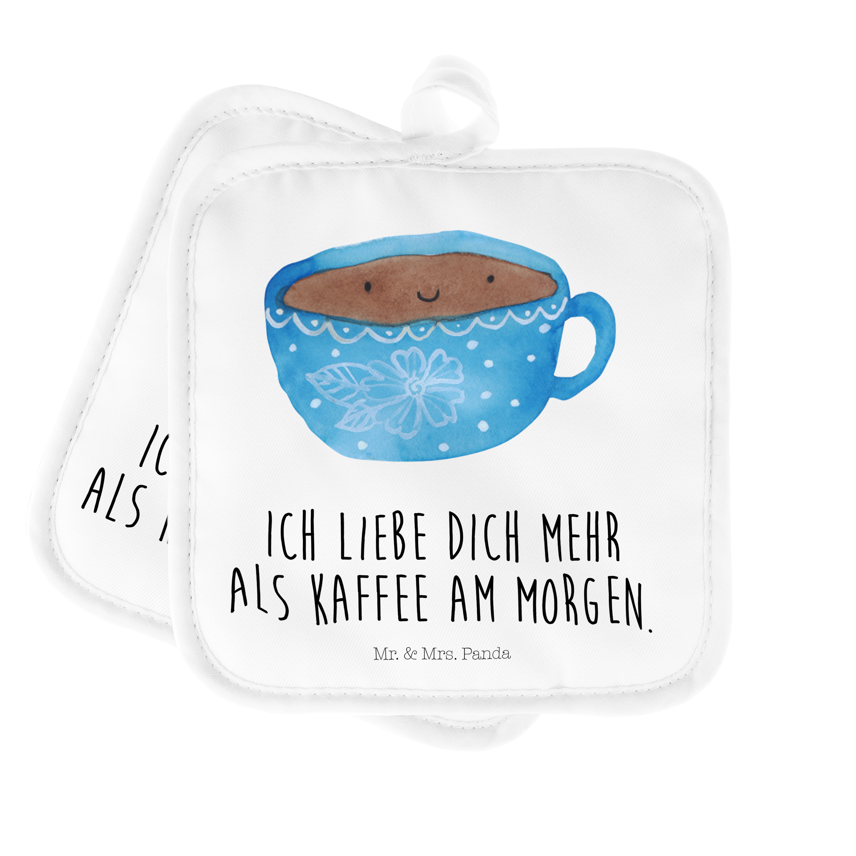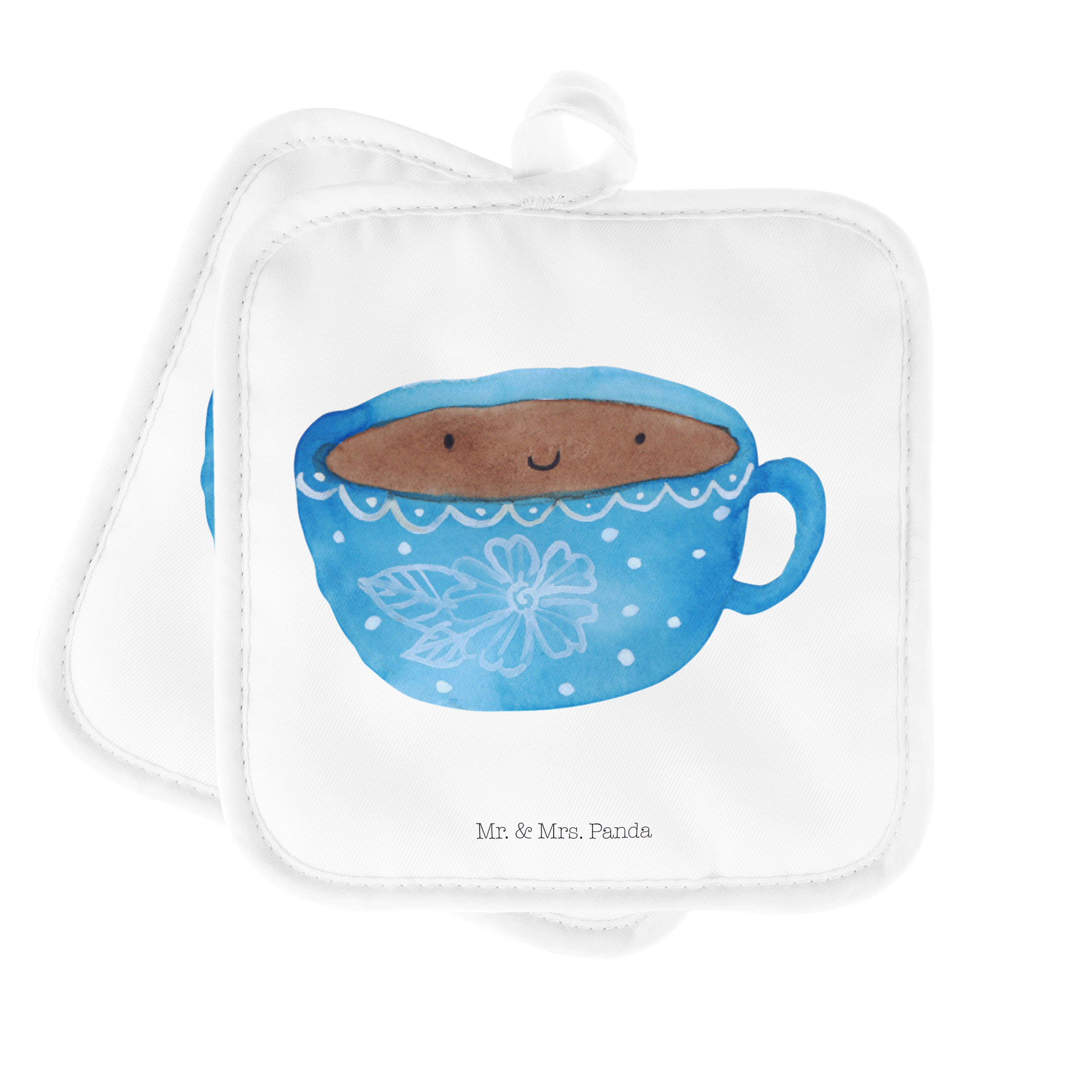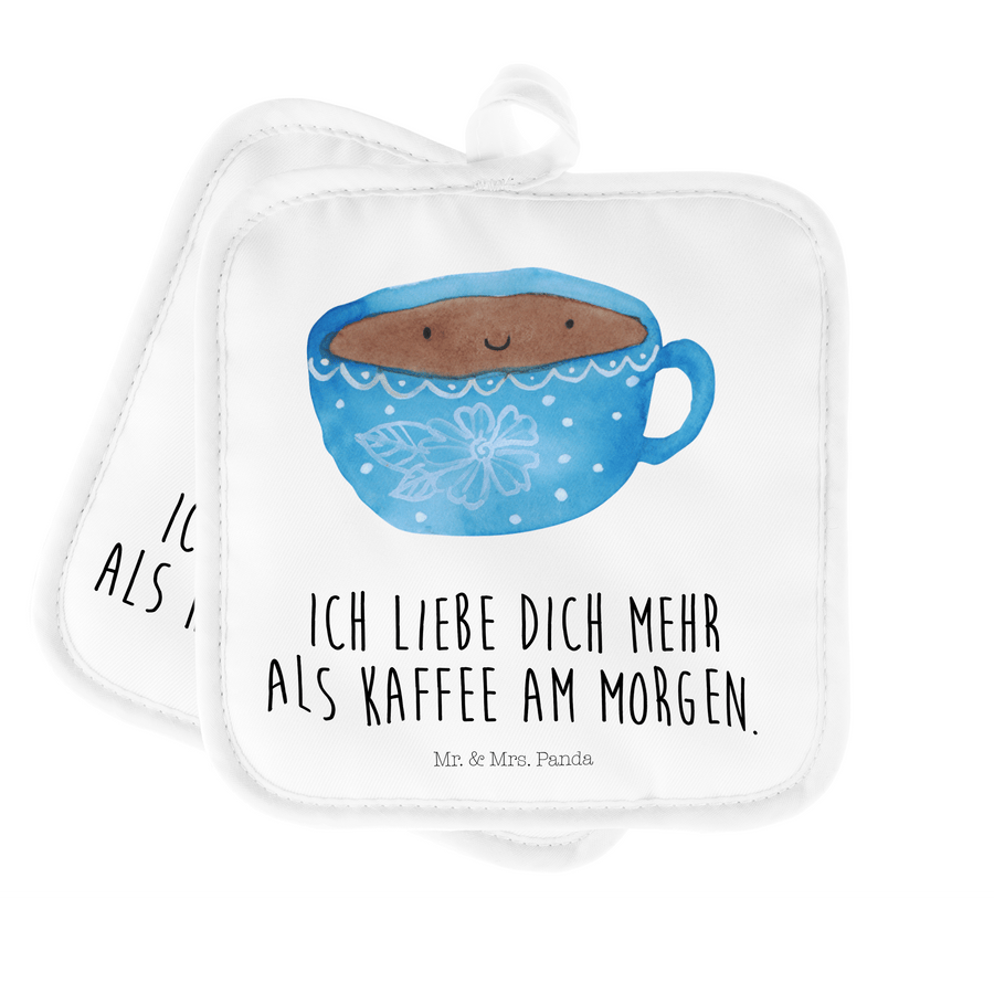 2er Set Topflappen Kaffee Tasse - mit Spruch - Weiß