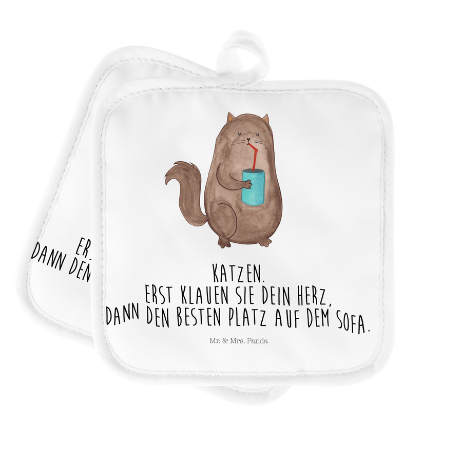 2er Set Topflappen Katze Dose - mit Spruch - Weiß