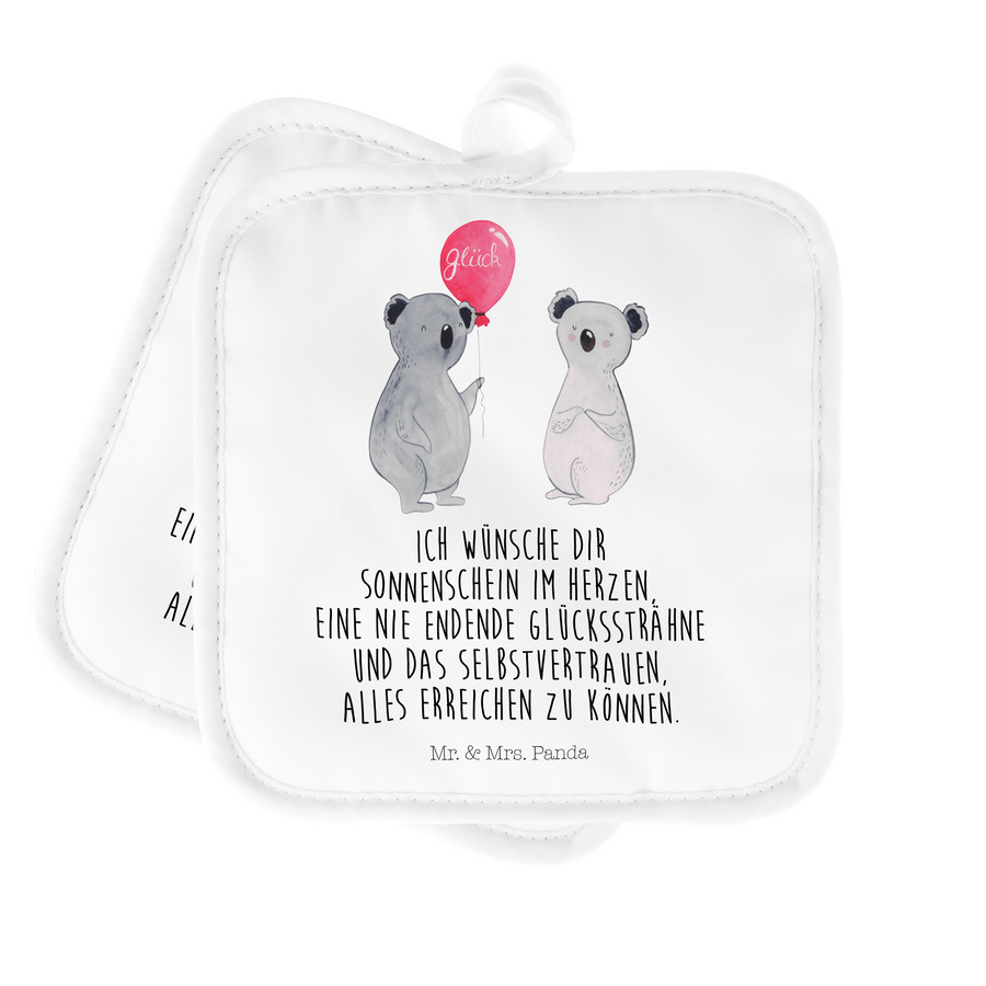 2er Set Topflappen Koala Luftballon - mit Spruch - Weiß