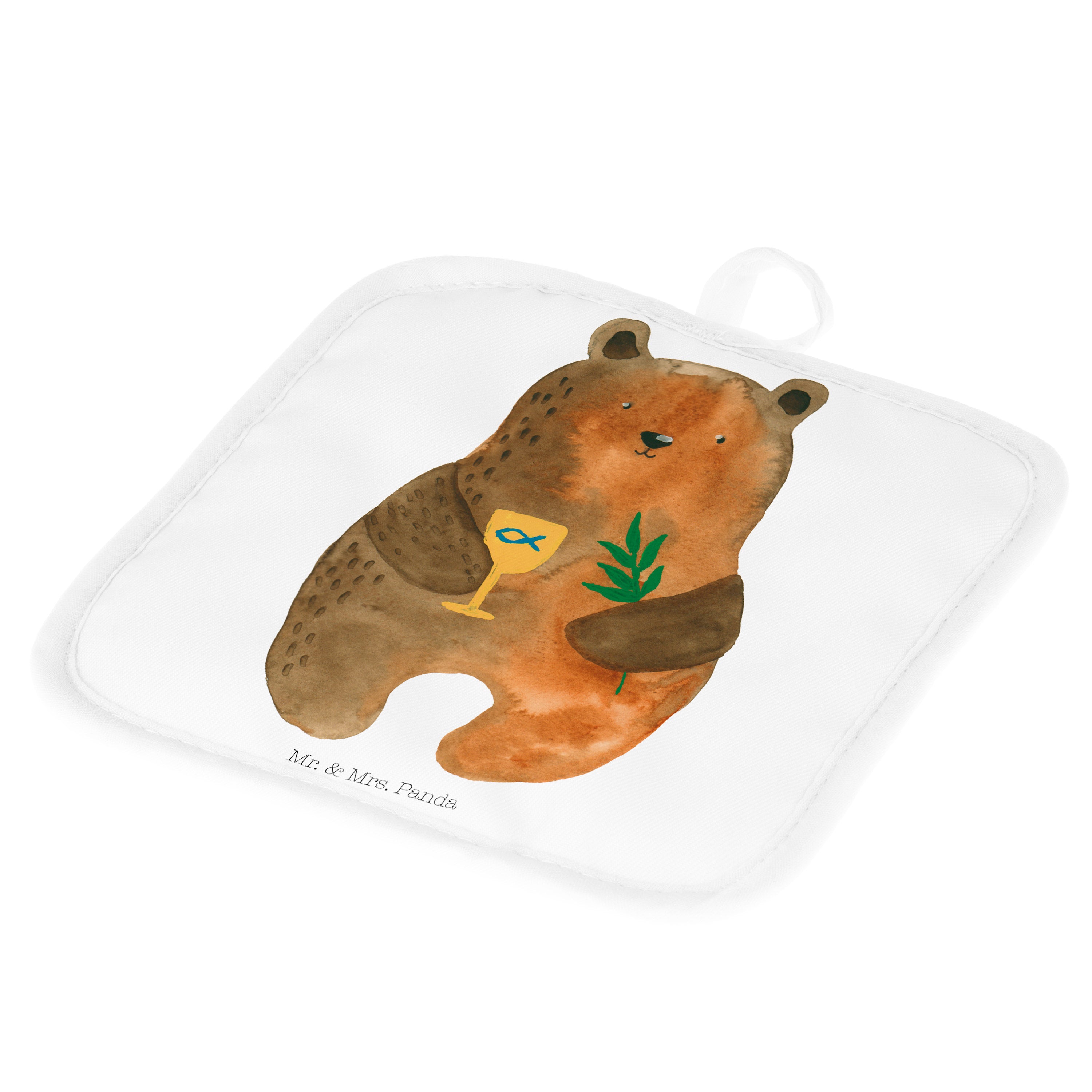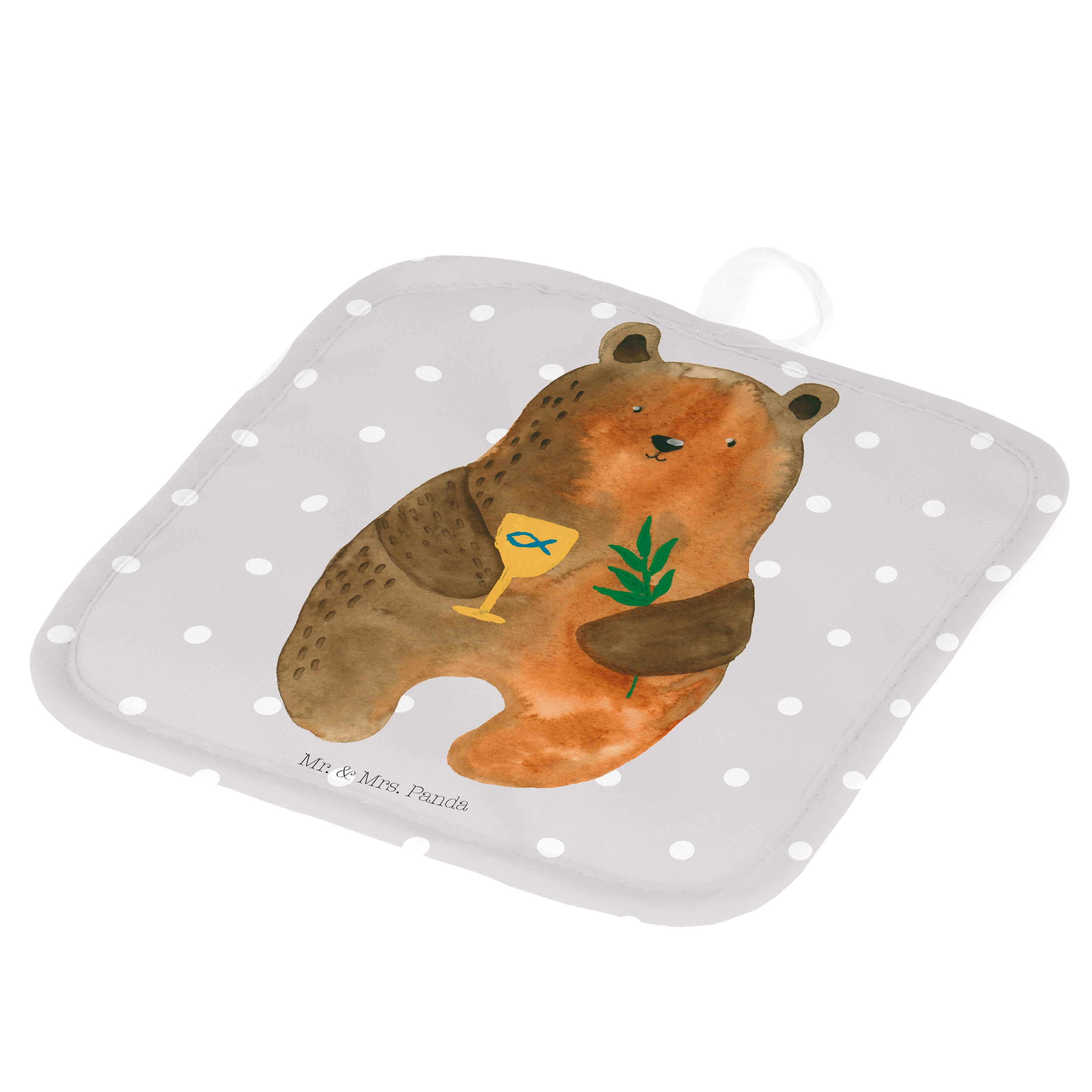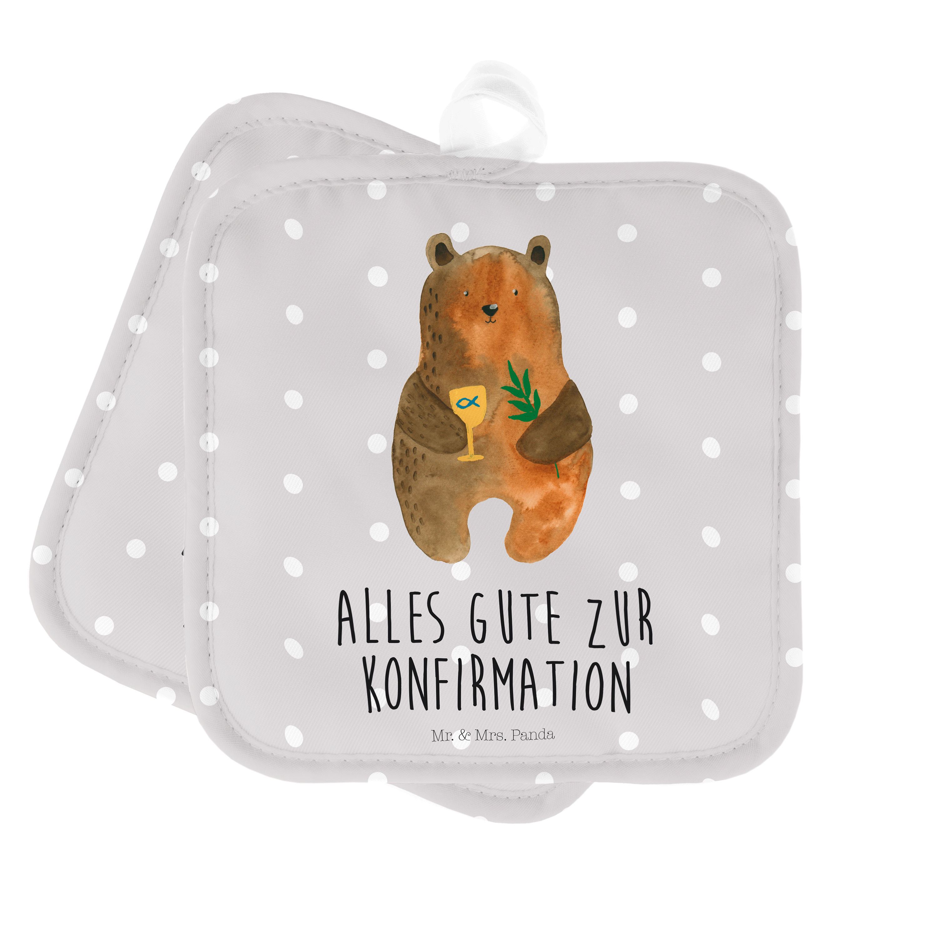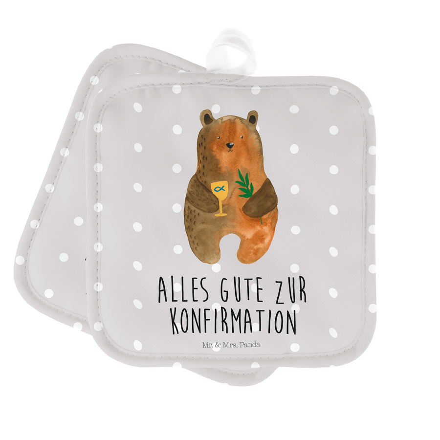 2er Set Topflappen Konfirmation-Bär - mit Spruch - Grau Pastell