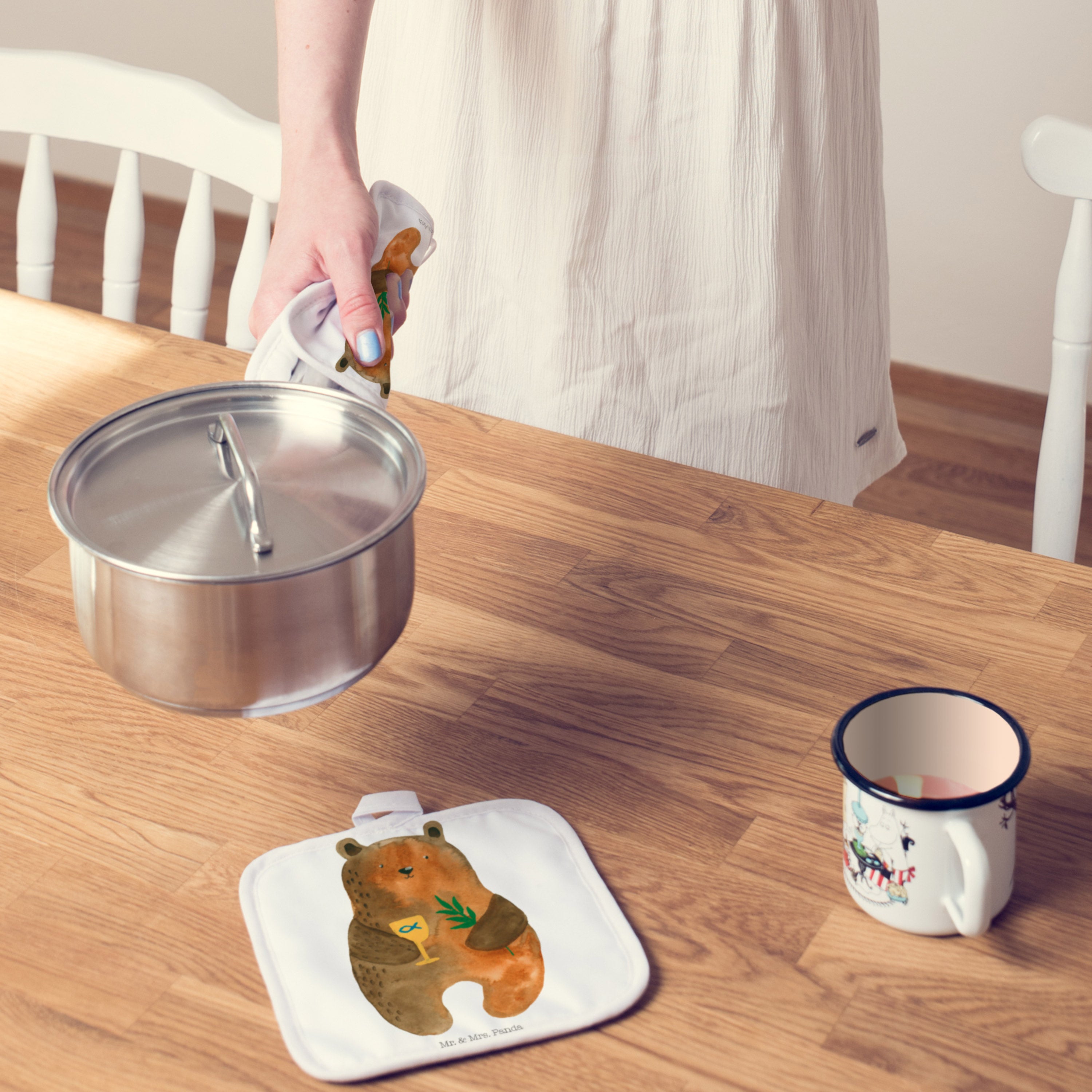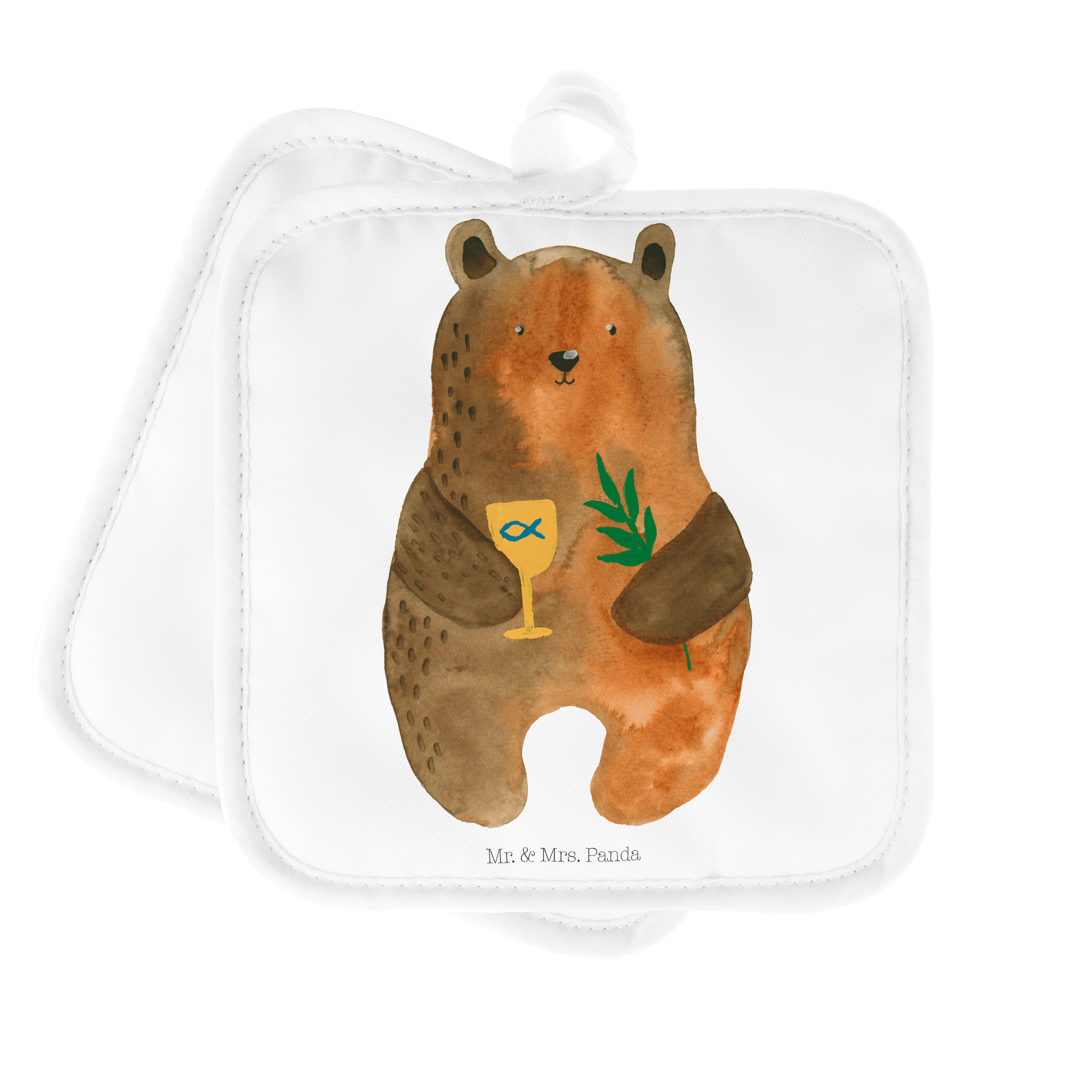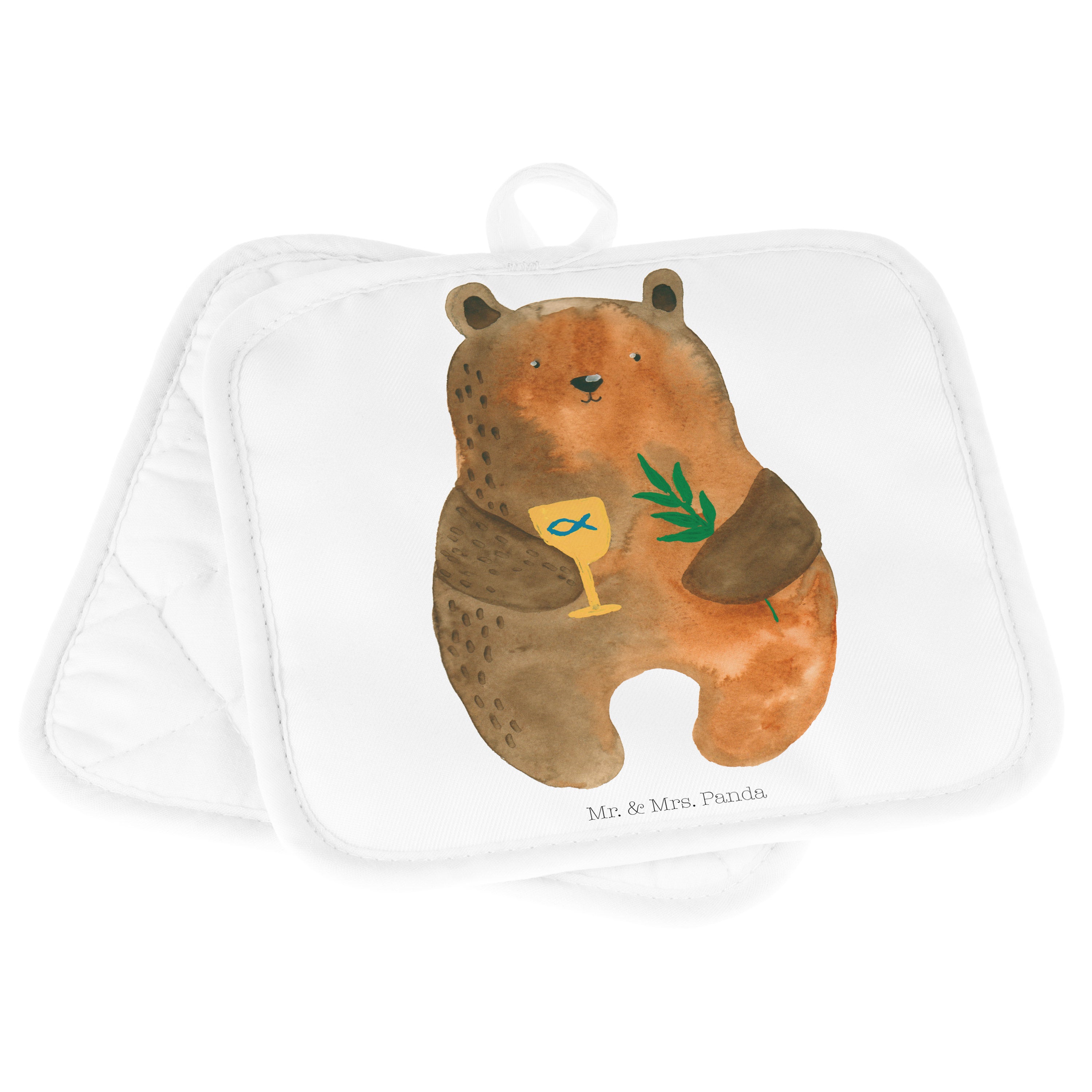 2er Set Topflappen Konfirmation-Bär - mit Spruch - Grau Pastell