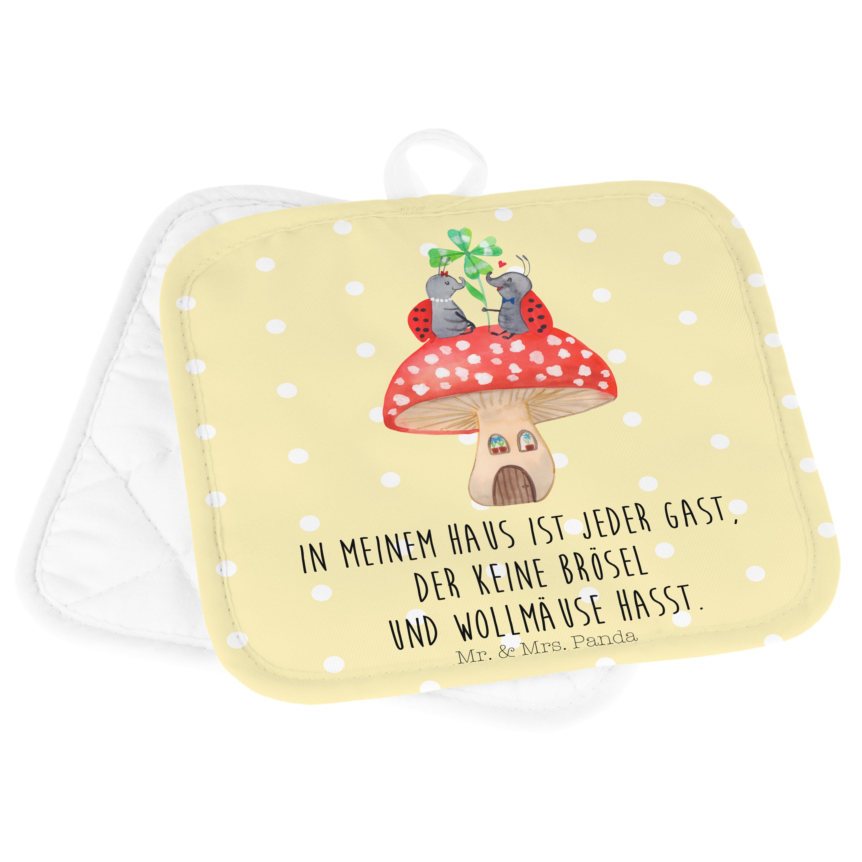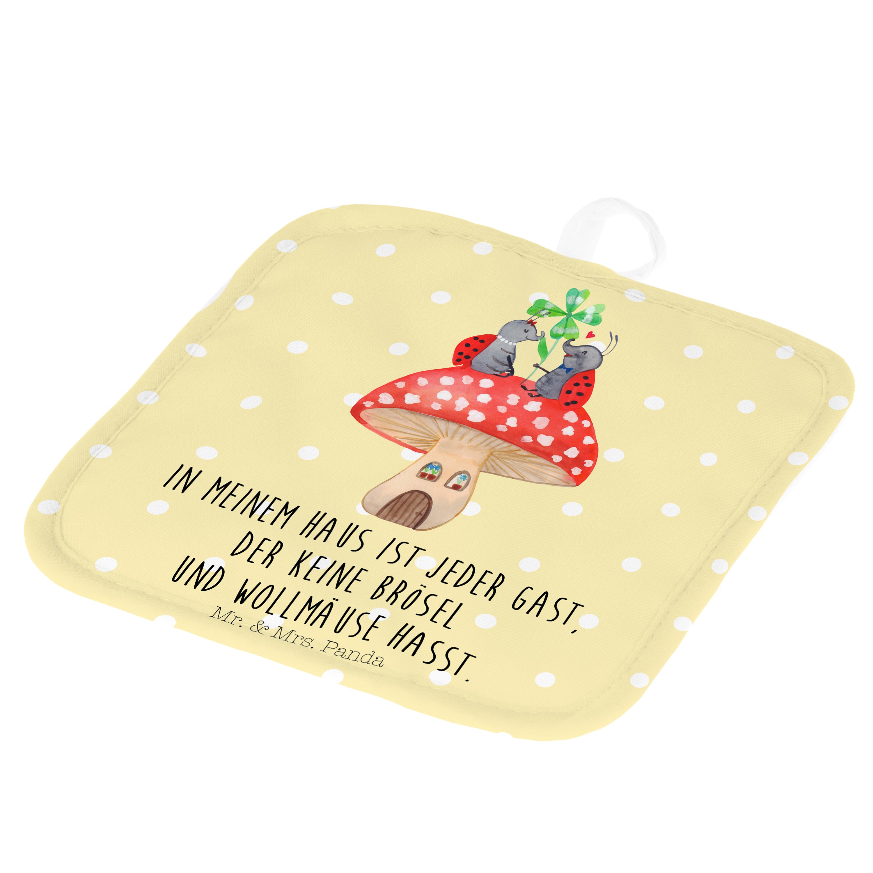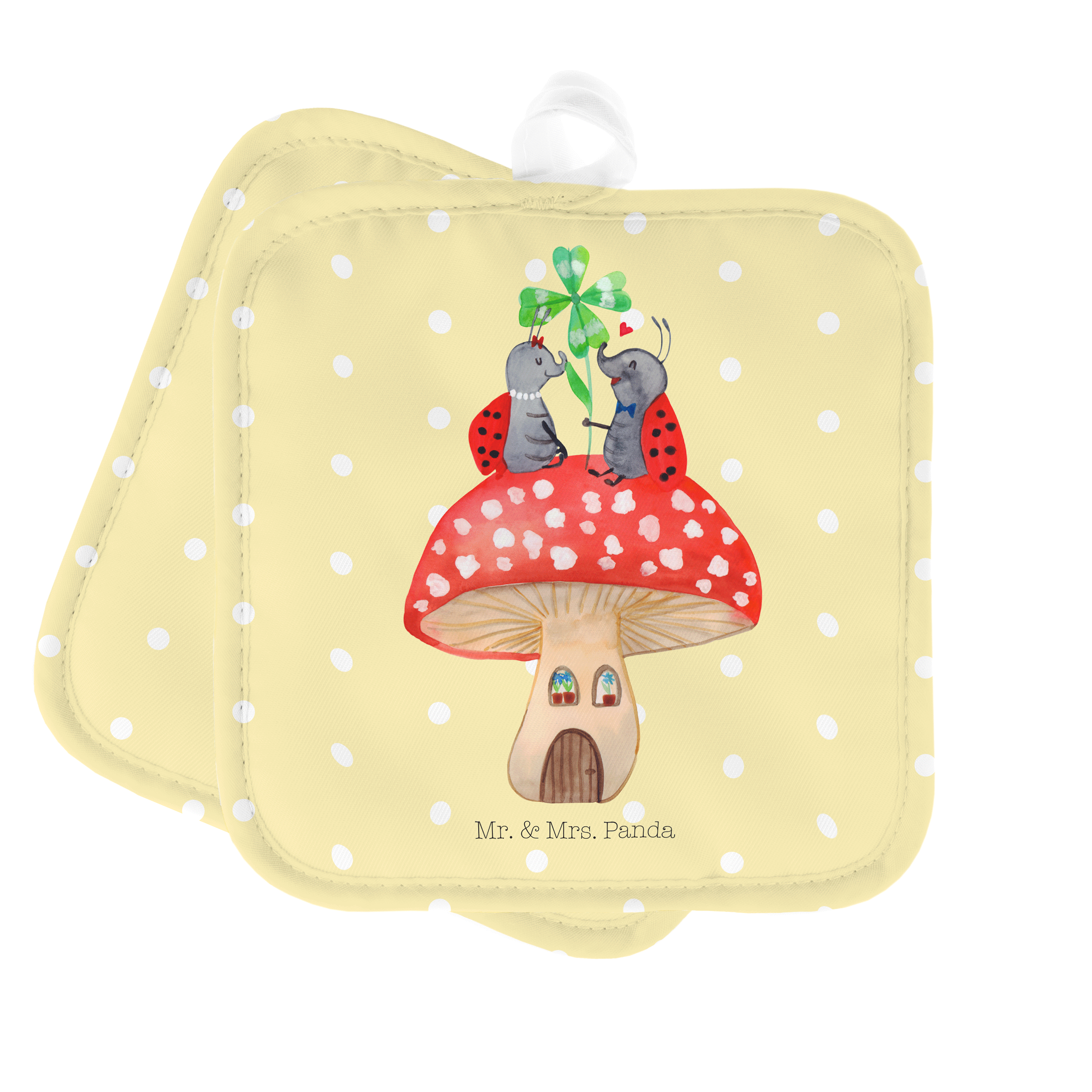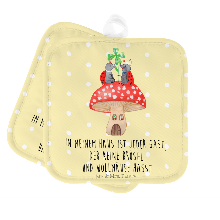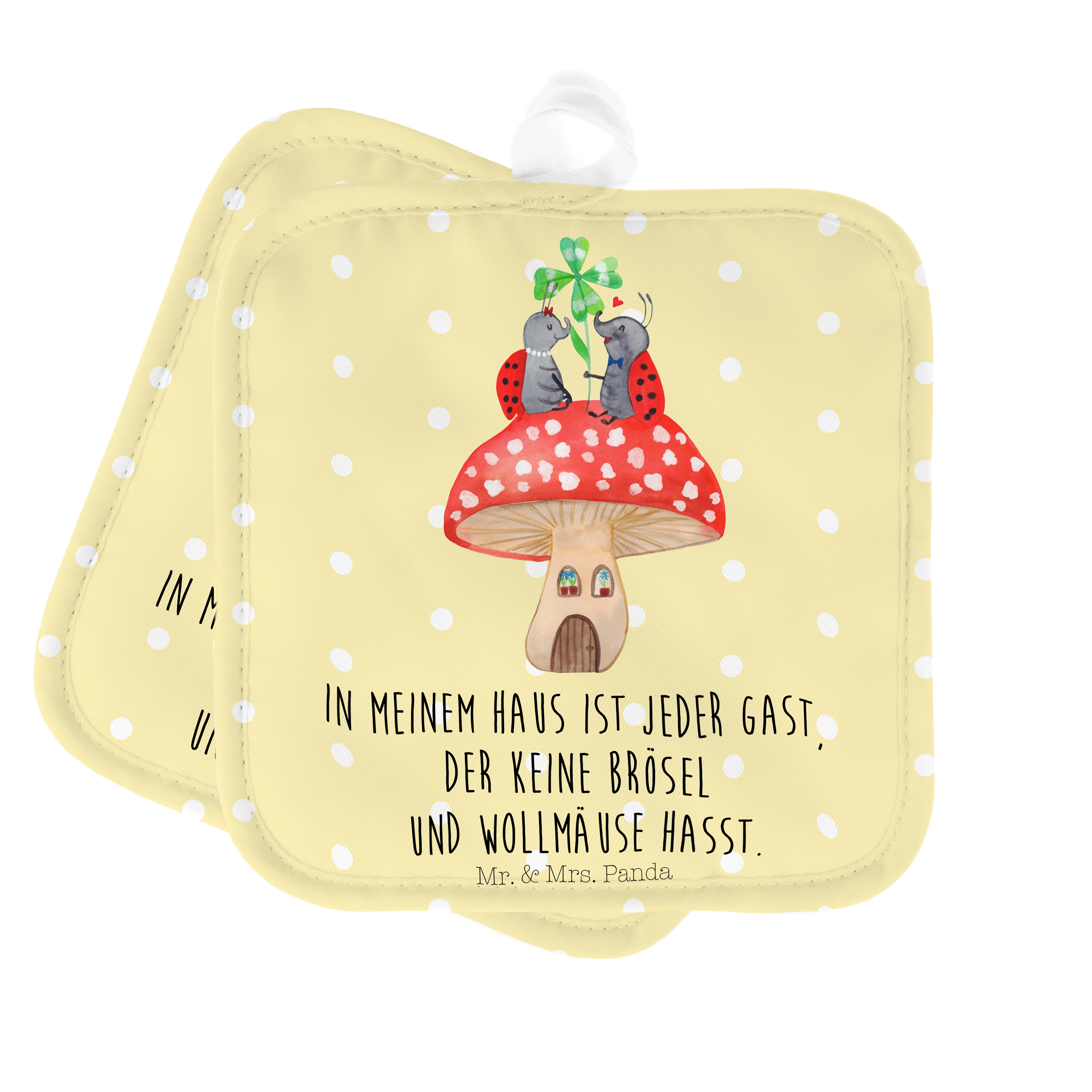 2er Set Topflappen Marienkäfer Paar Fliegenpilz - mit Spruch - Gelb Pastell