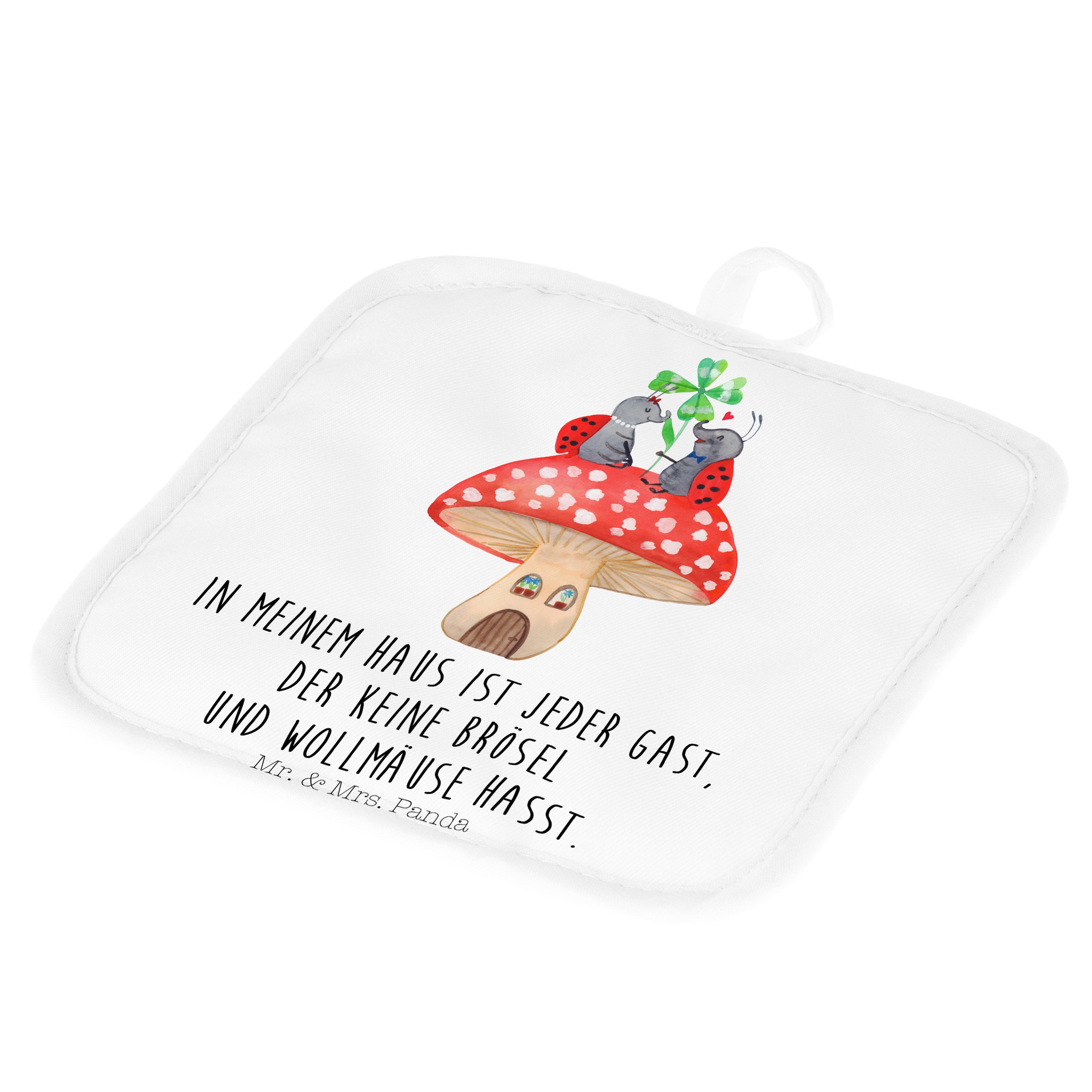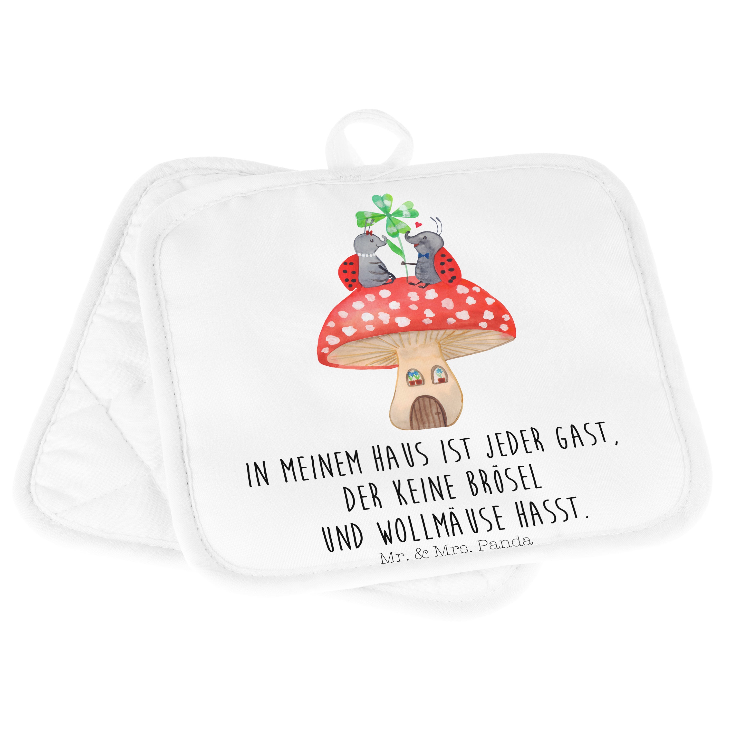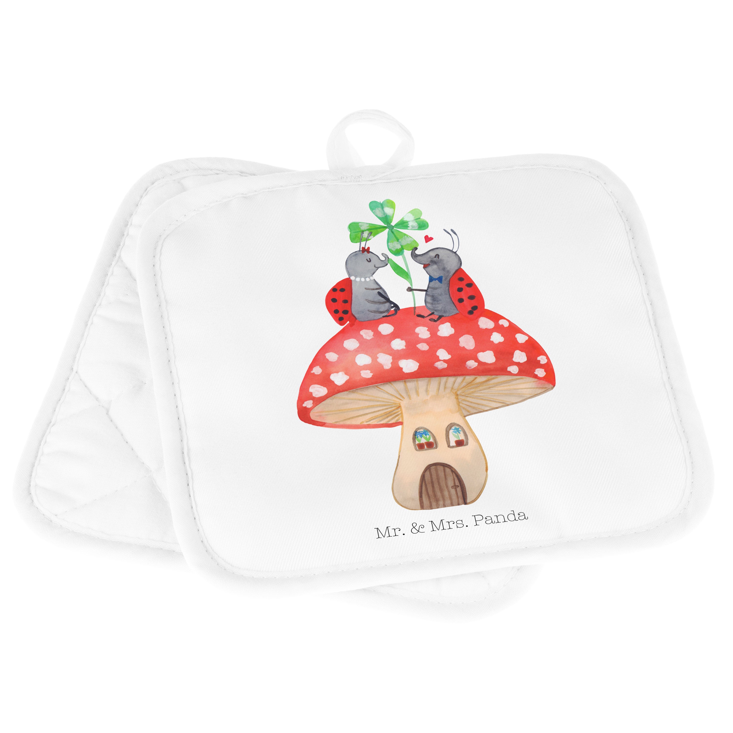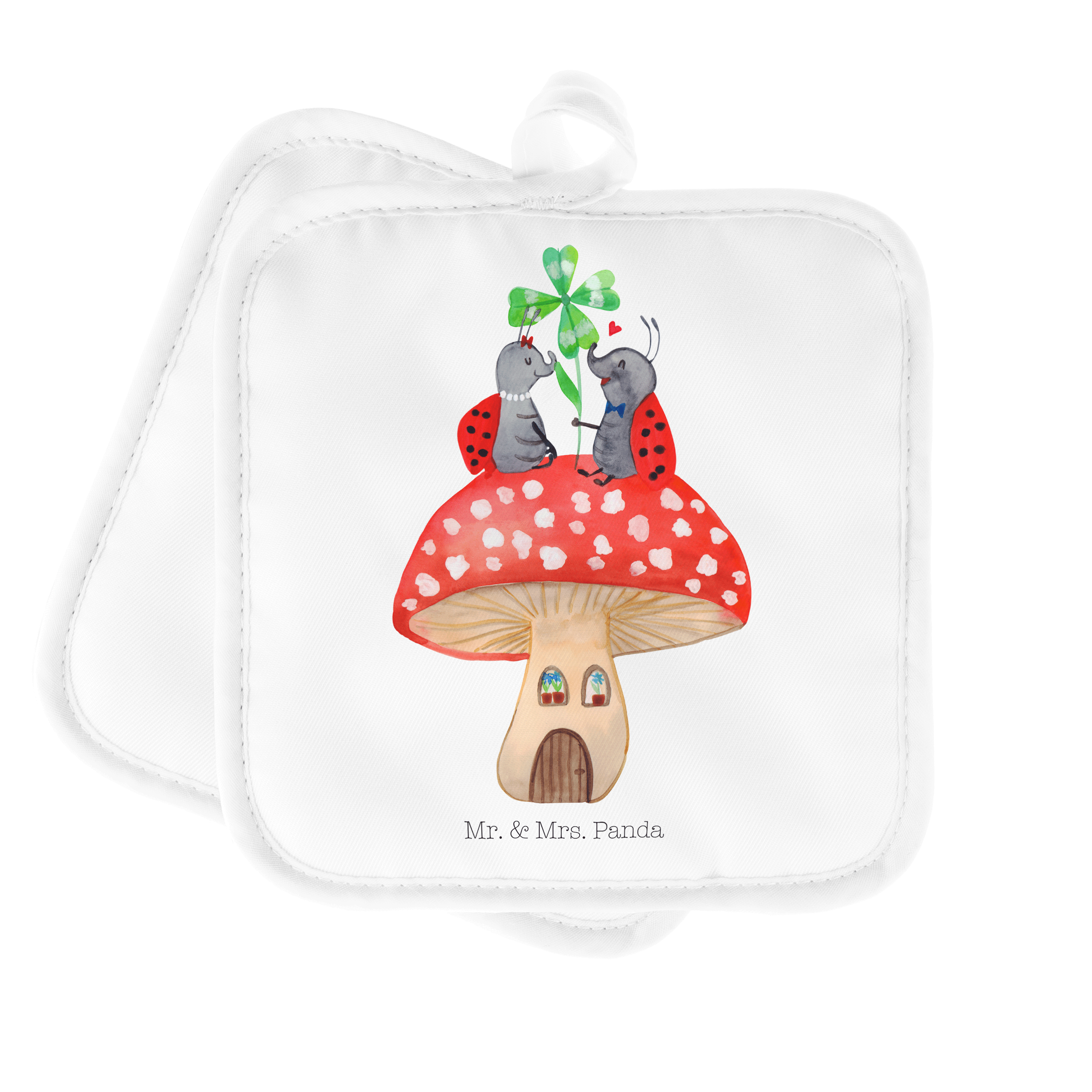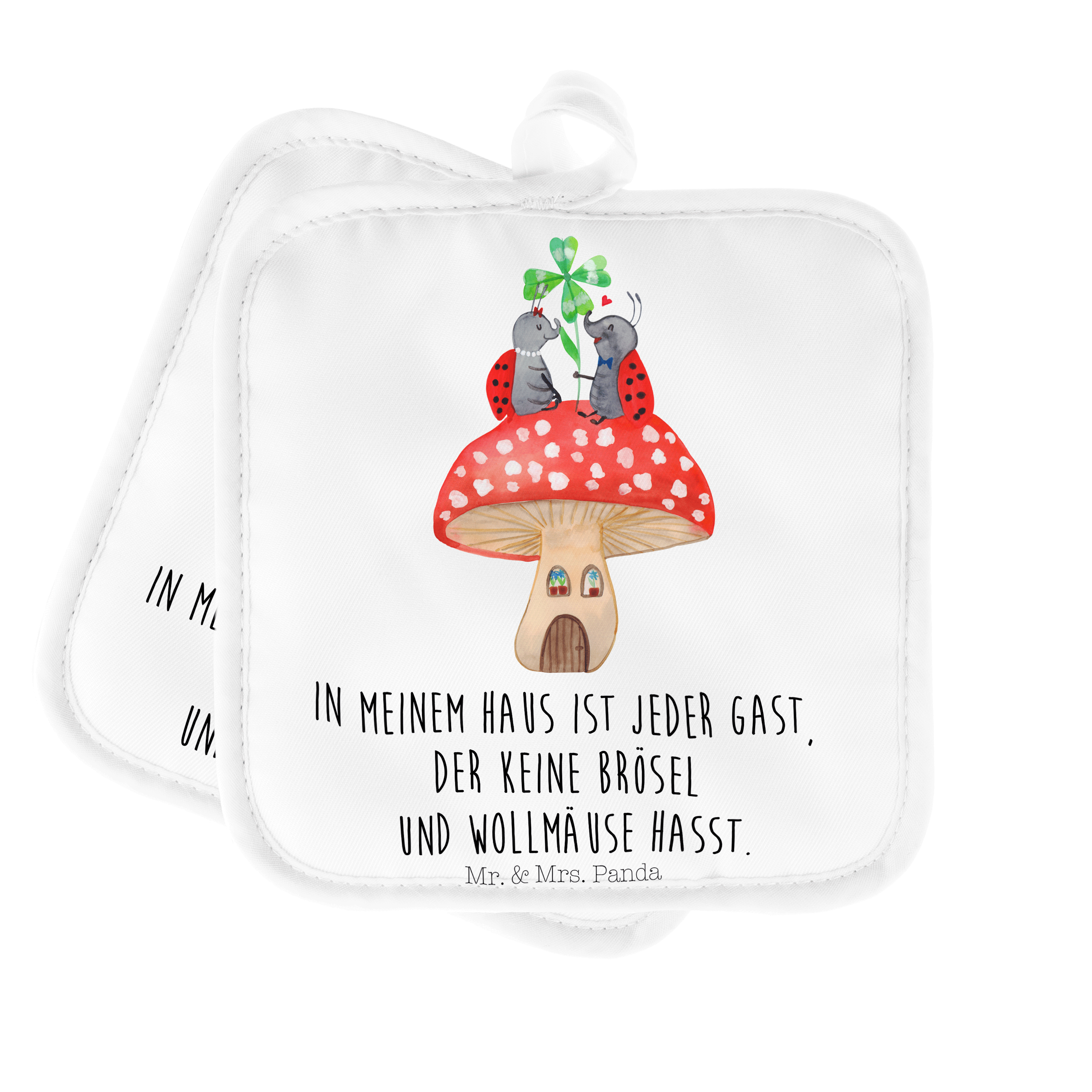 2er Set Topflappen Marienkäfer Paar Fliegenpilz - mit Spruch - Gelb Pastell