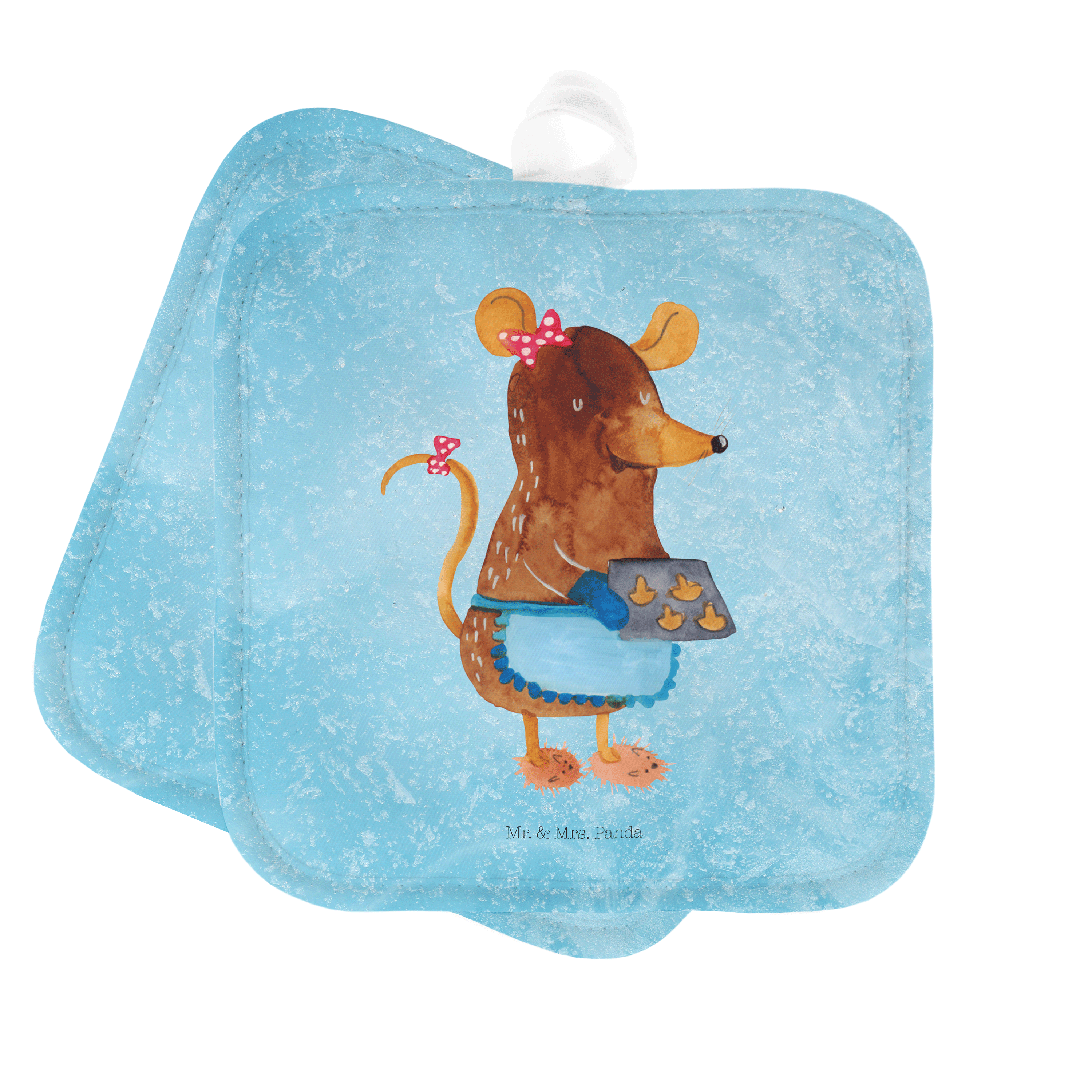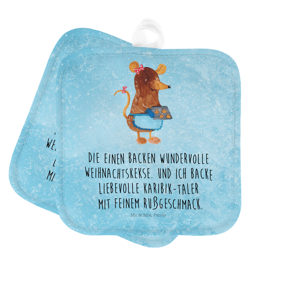 2er Set Topflappen Maus Kekse - mit Spruch - Eisblau