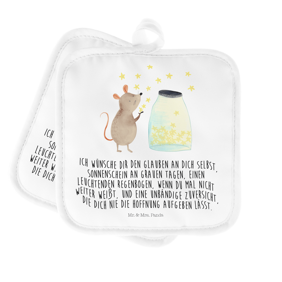 2er Set Topflappen Maus Sterne - mit Spruch - Weiß