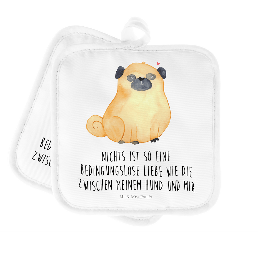 2er Set Topflappen Mops - mit Spruch - Weiß