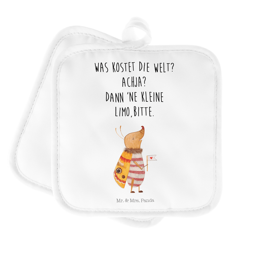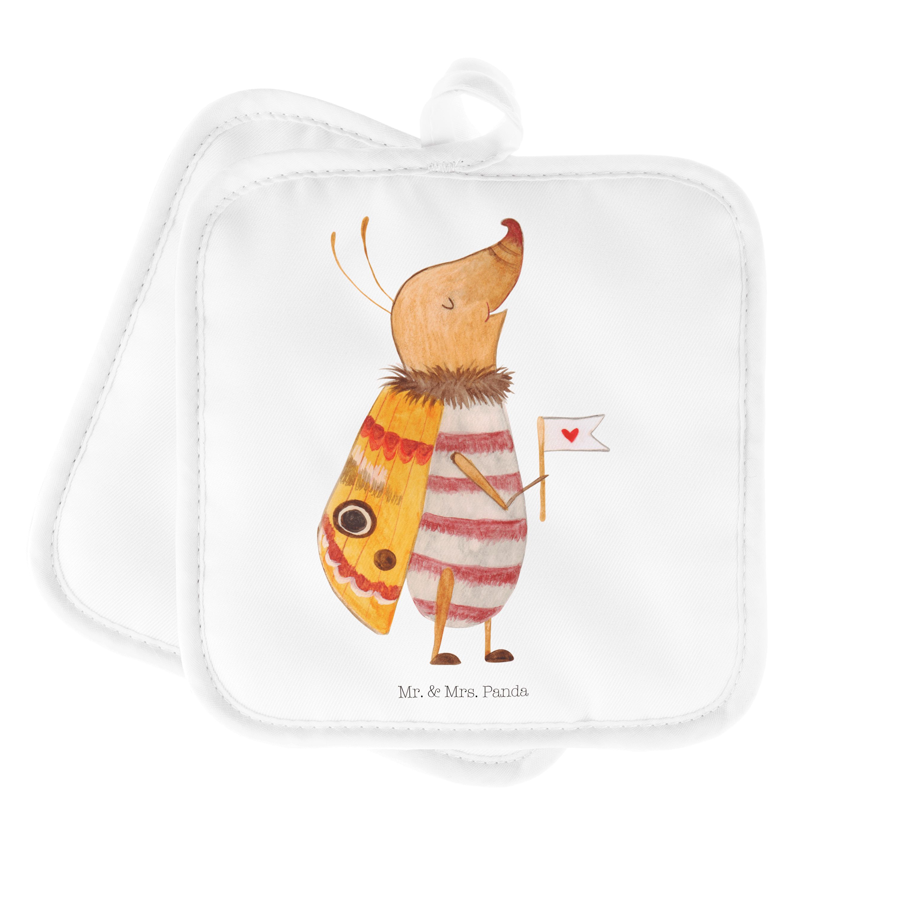 2er Set Topflappen Nachtfalter mit Fähnchen - mit Spruch - Weiß