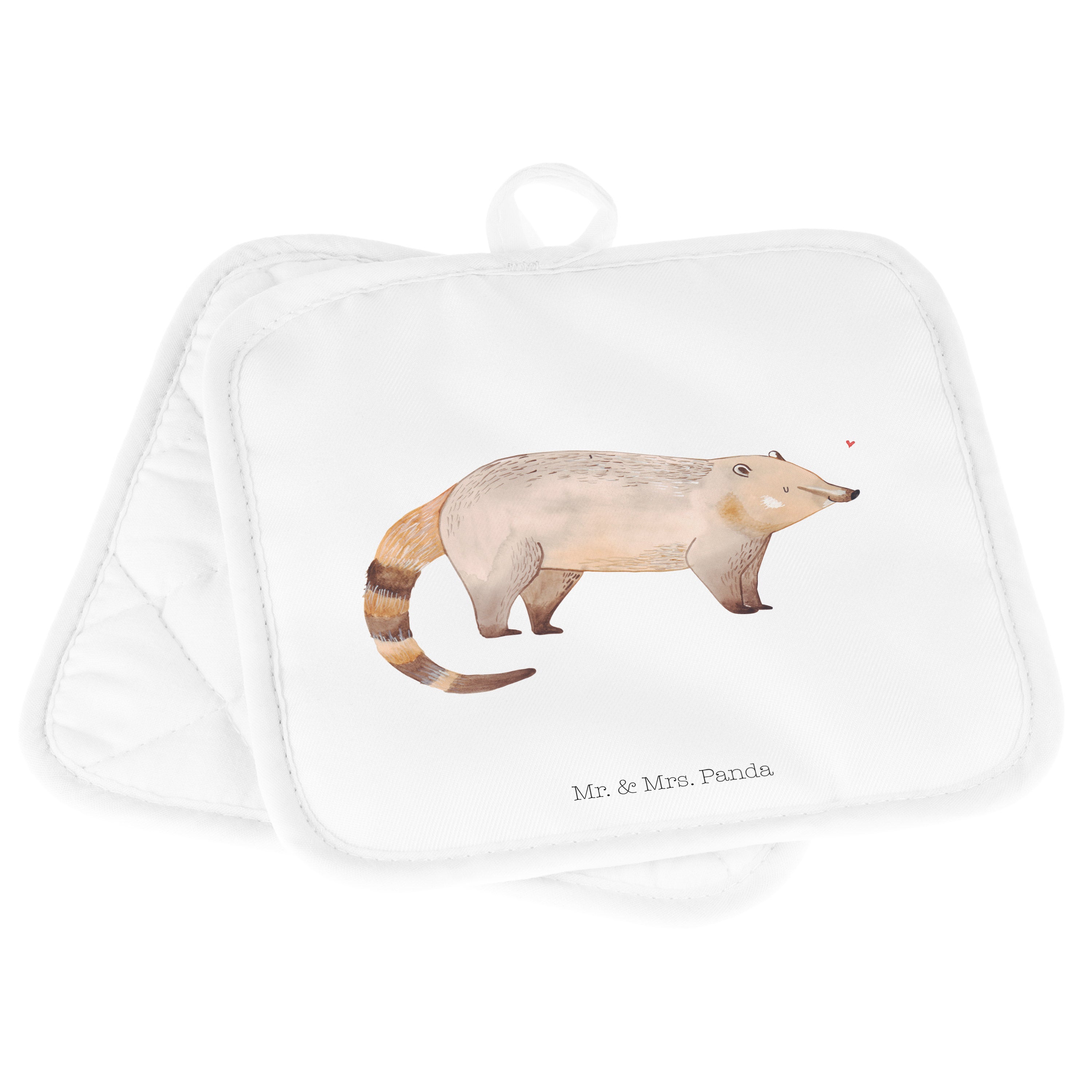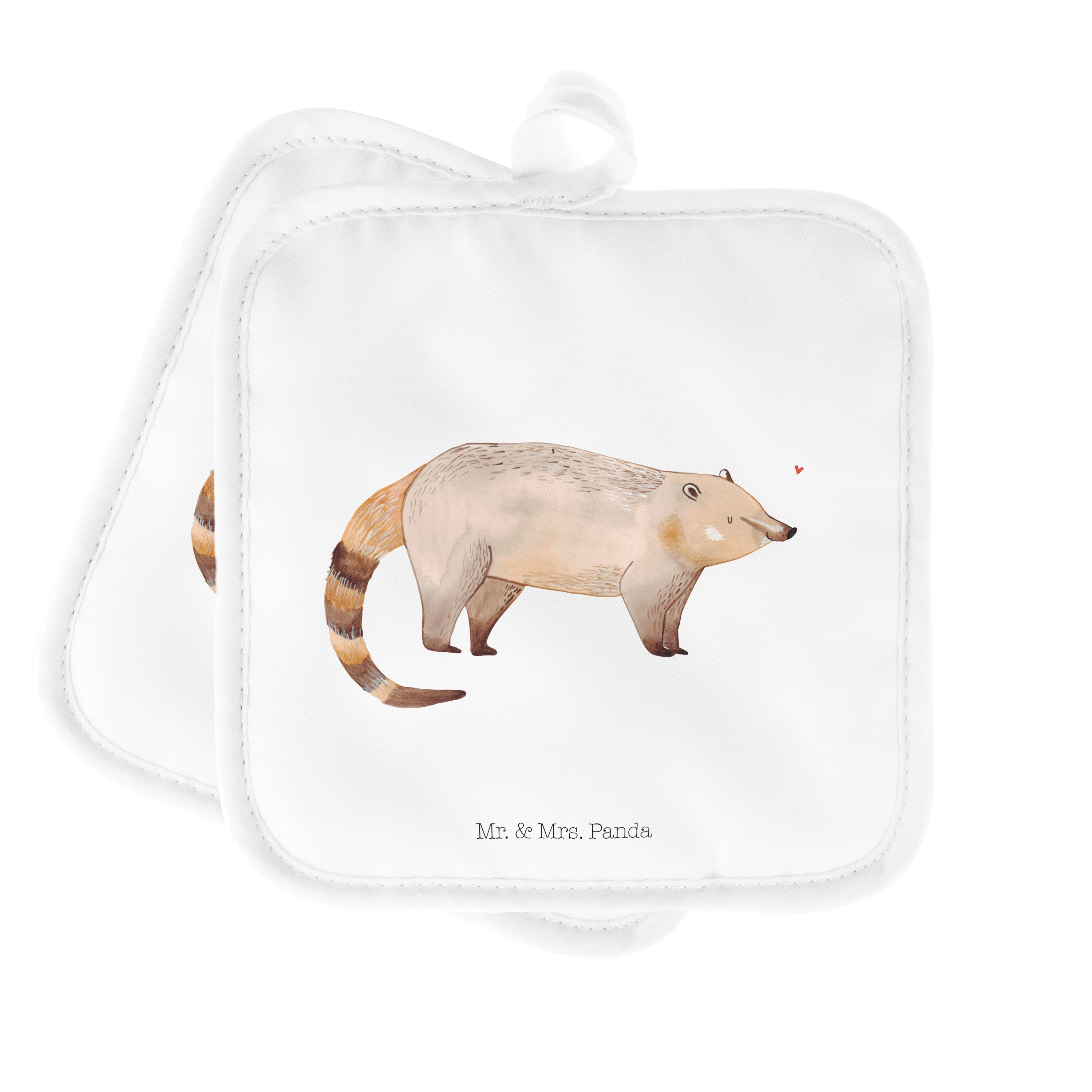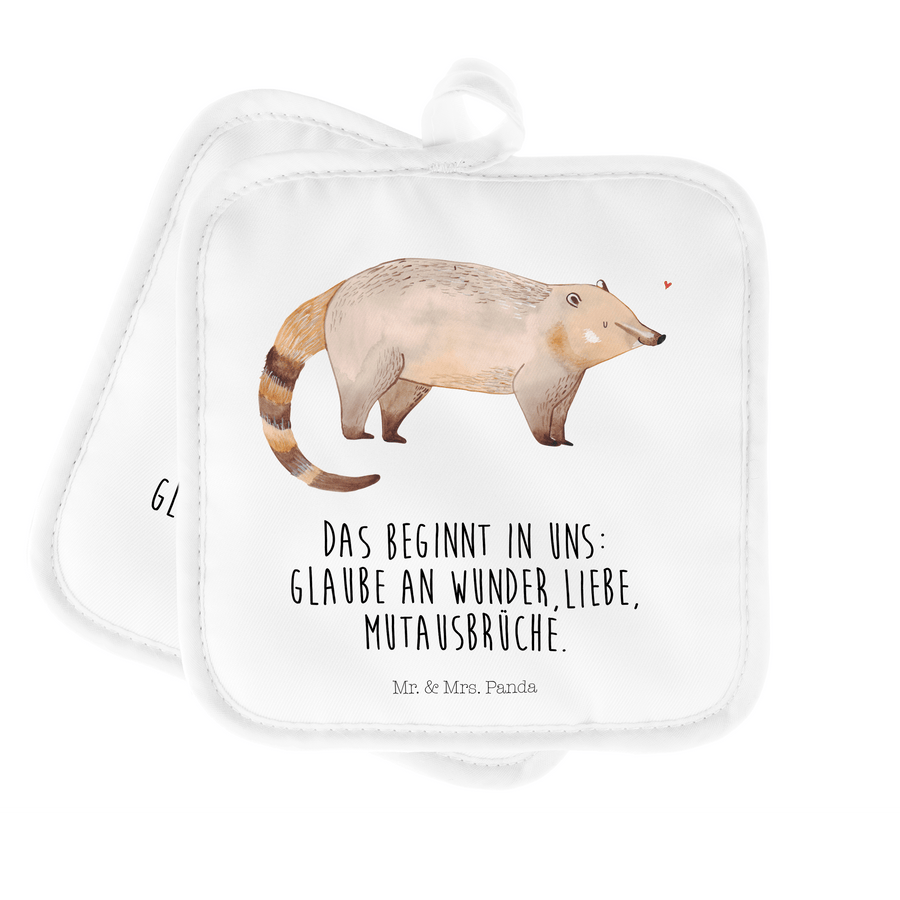 2er Set Topflappen Nasenbaer - mit Spruch - Weiß