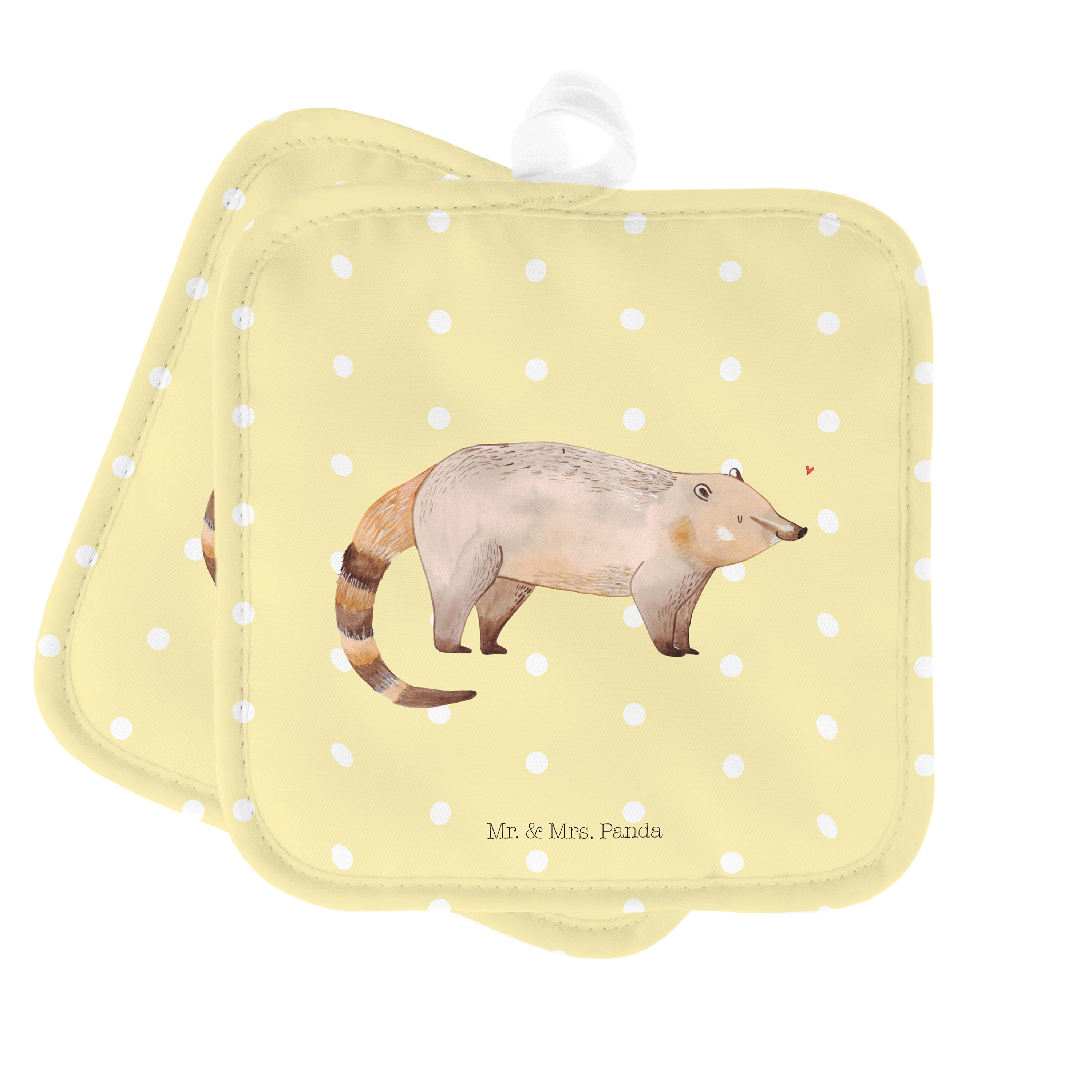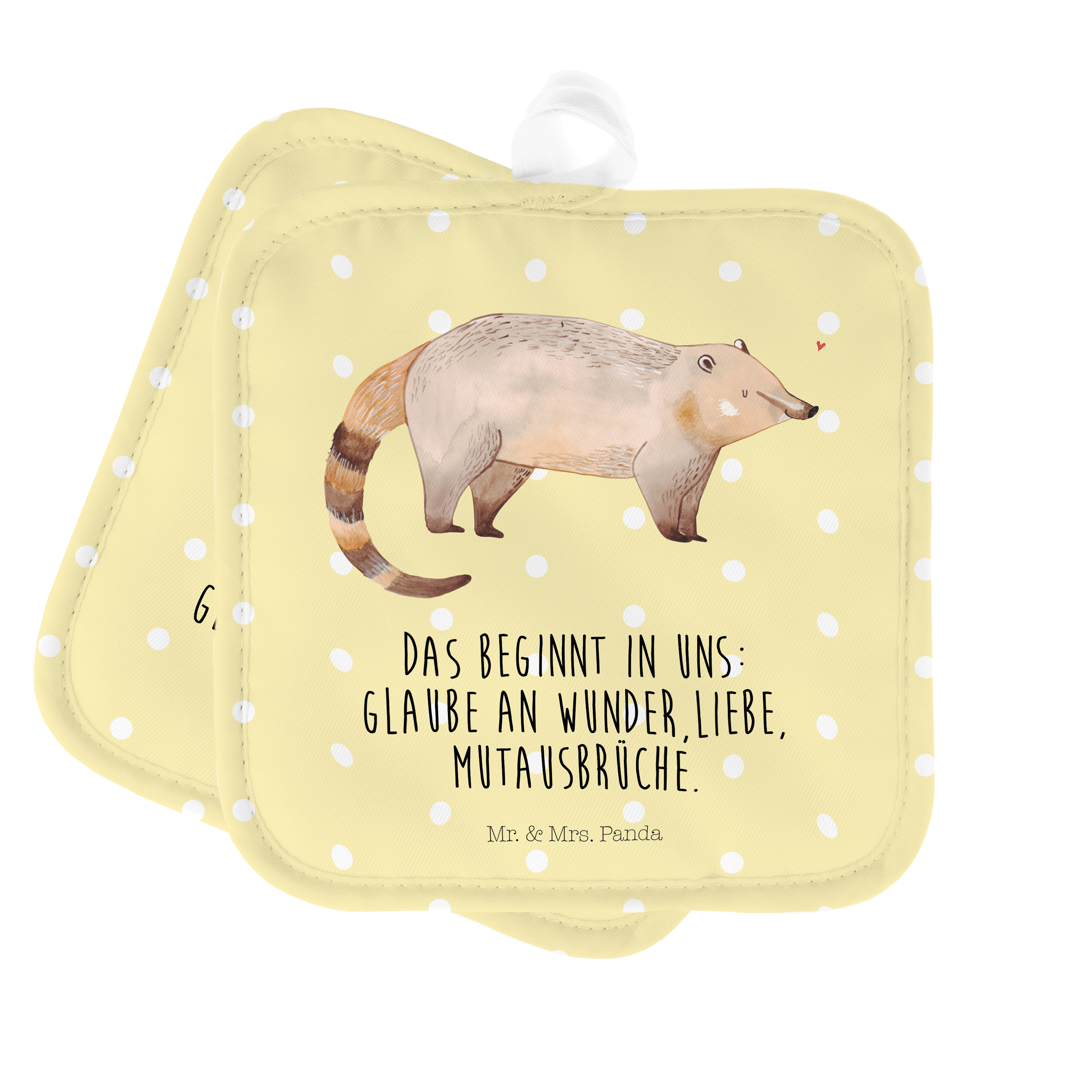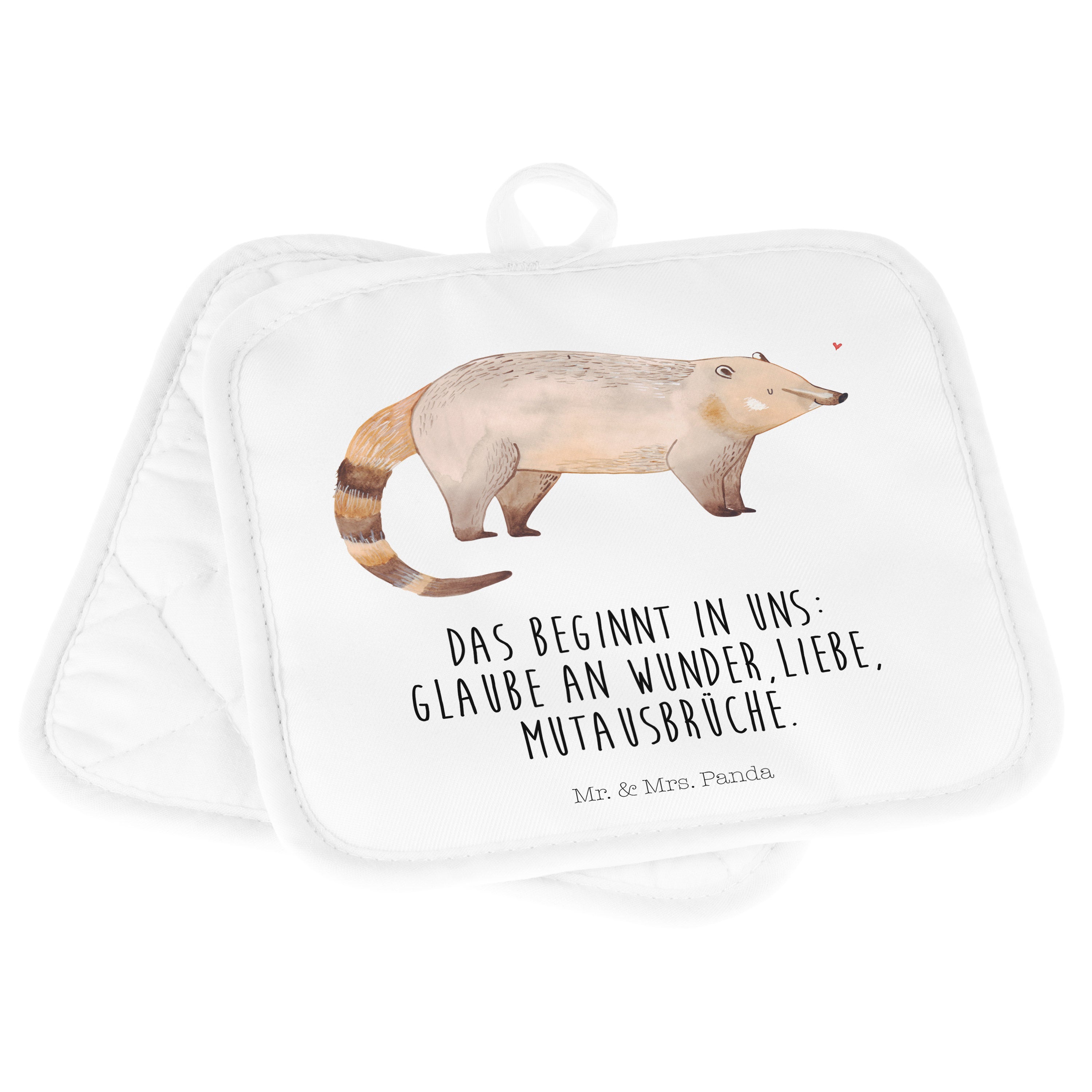 2er Set Topflappen Nasenbaer - mit Spruch - Weiß