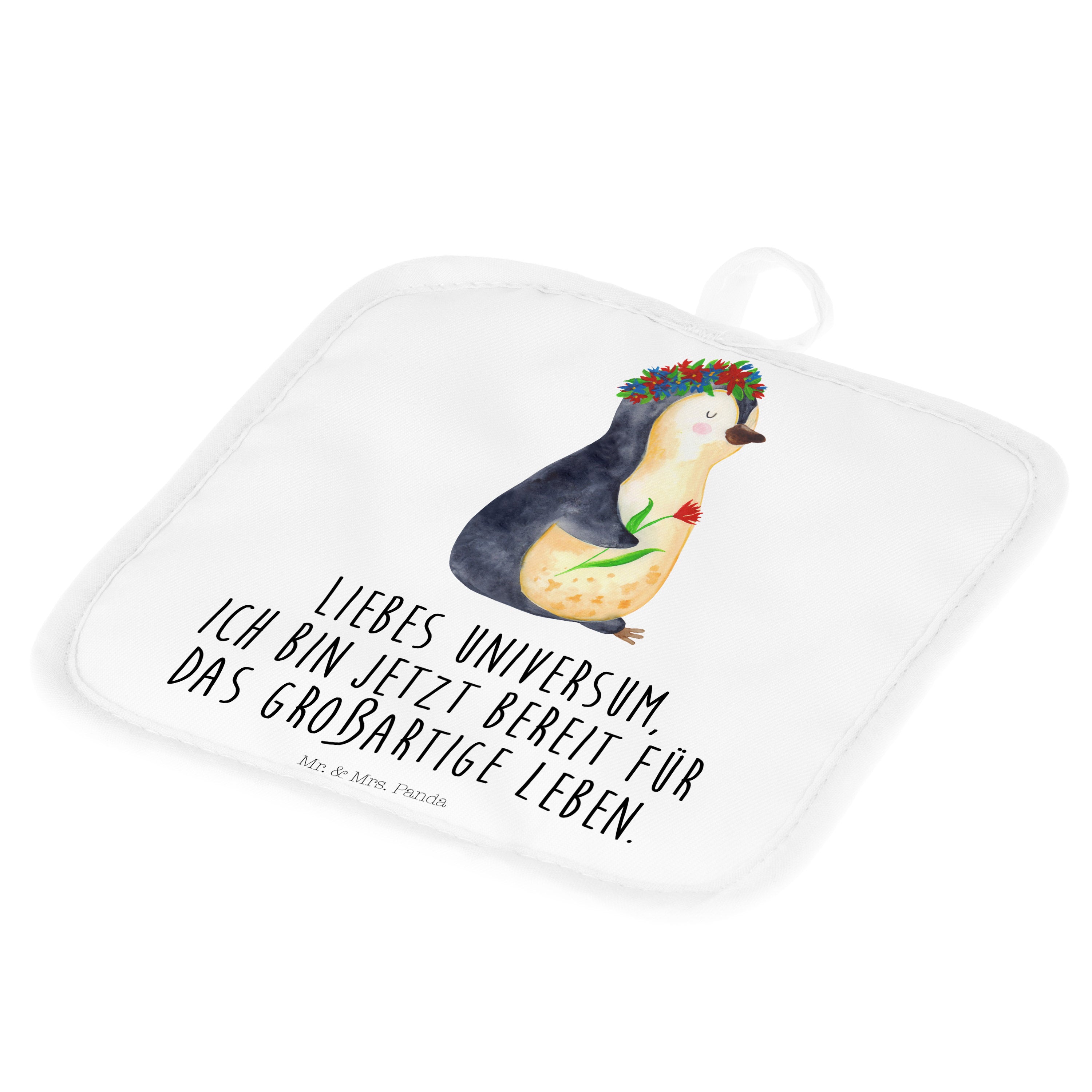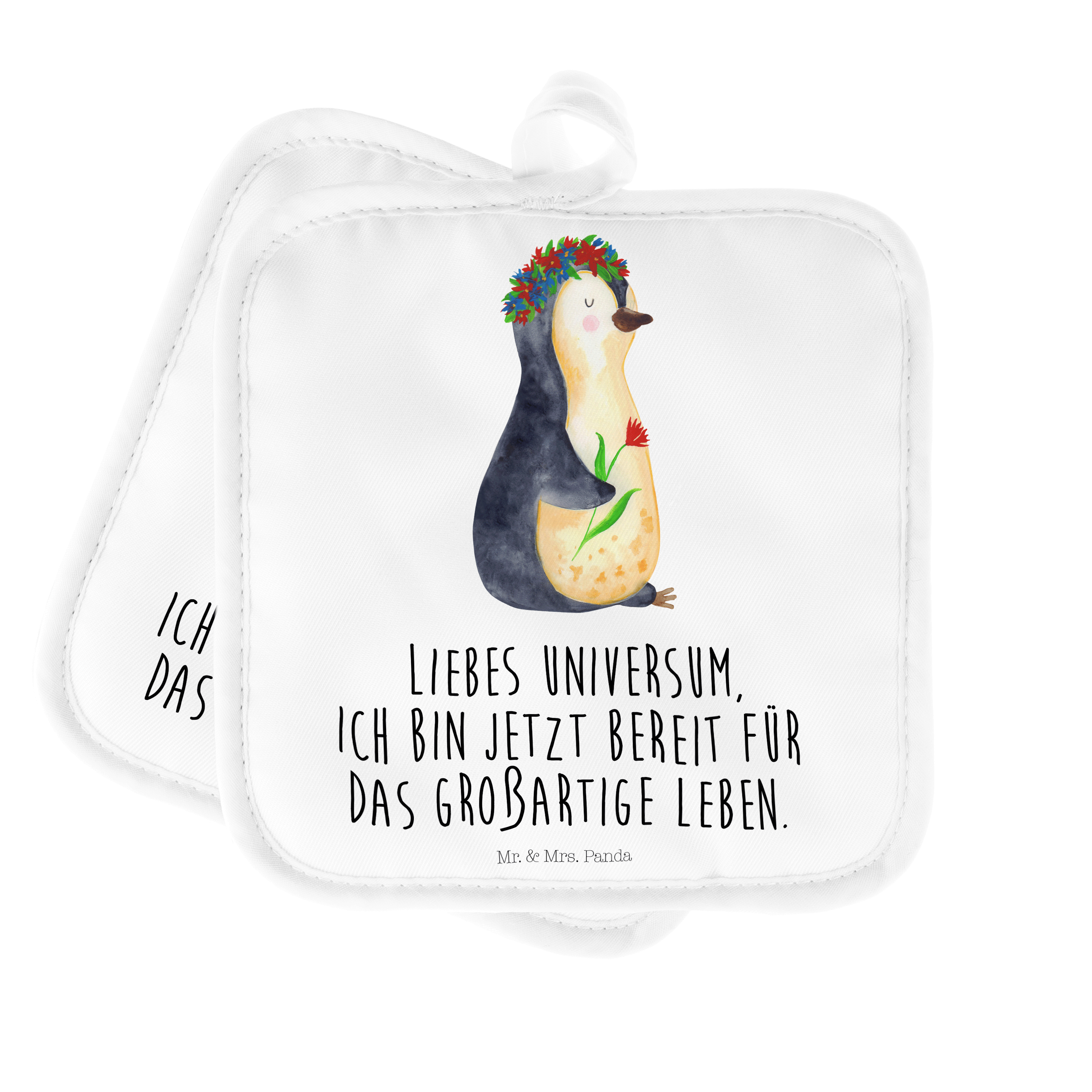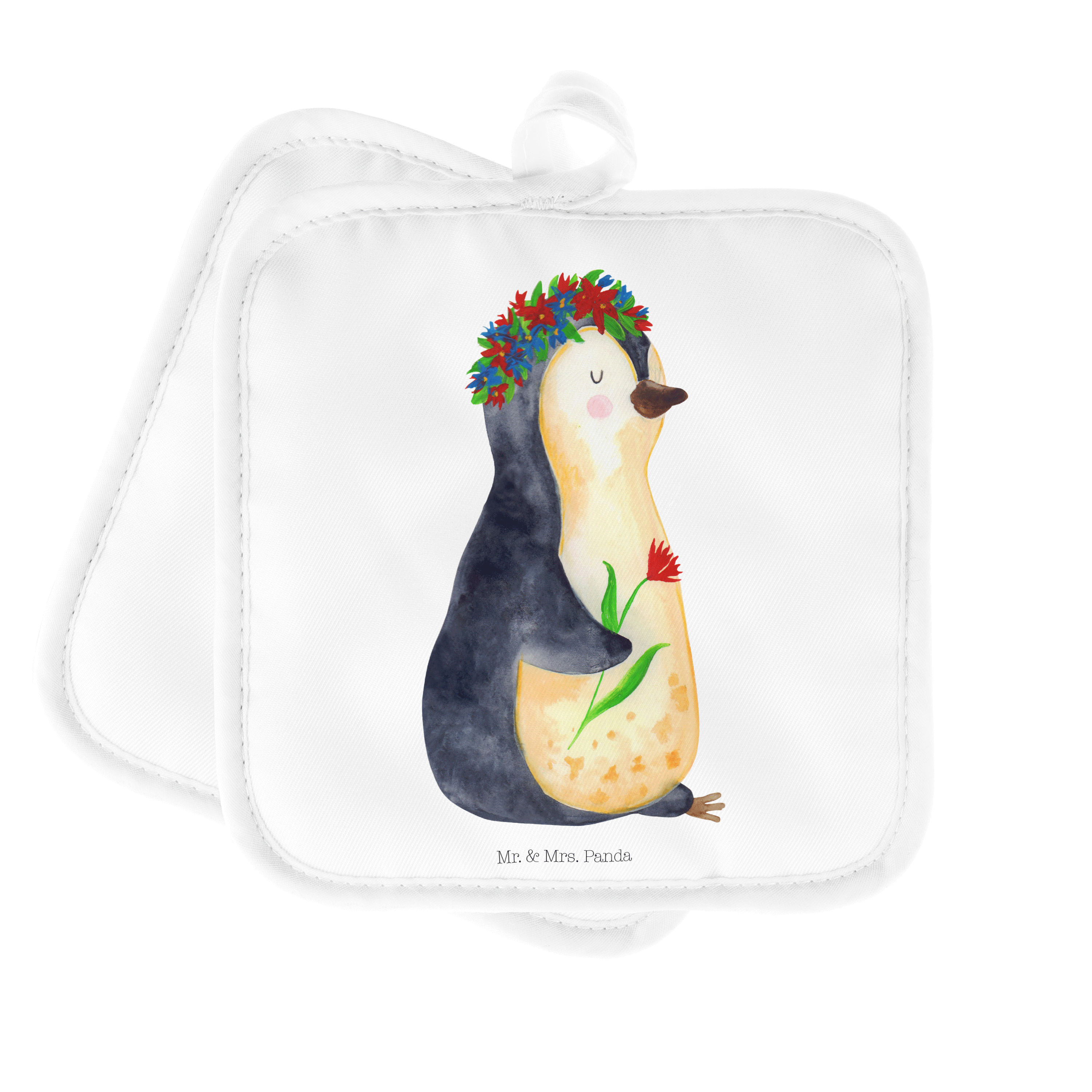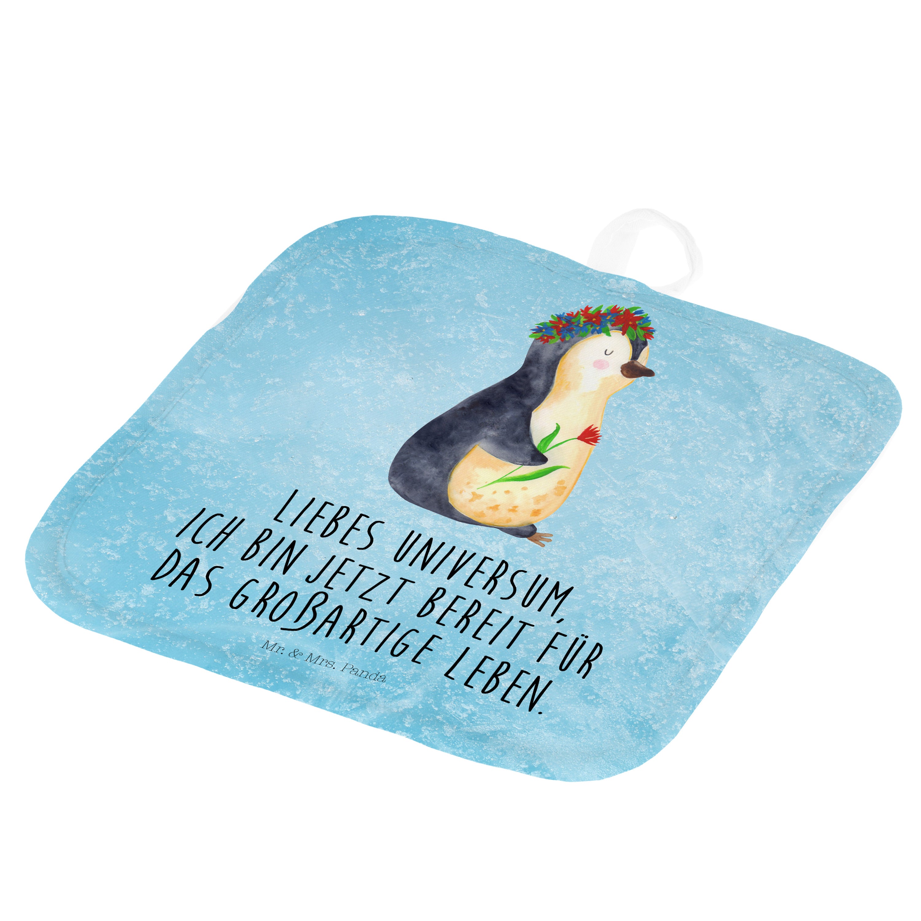 2er Set Topflappen Pinguin Blumenkranz - mit Spruch - Eisblau