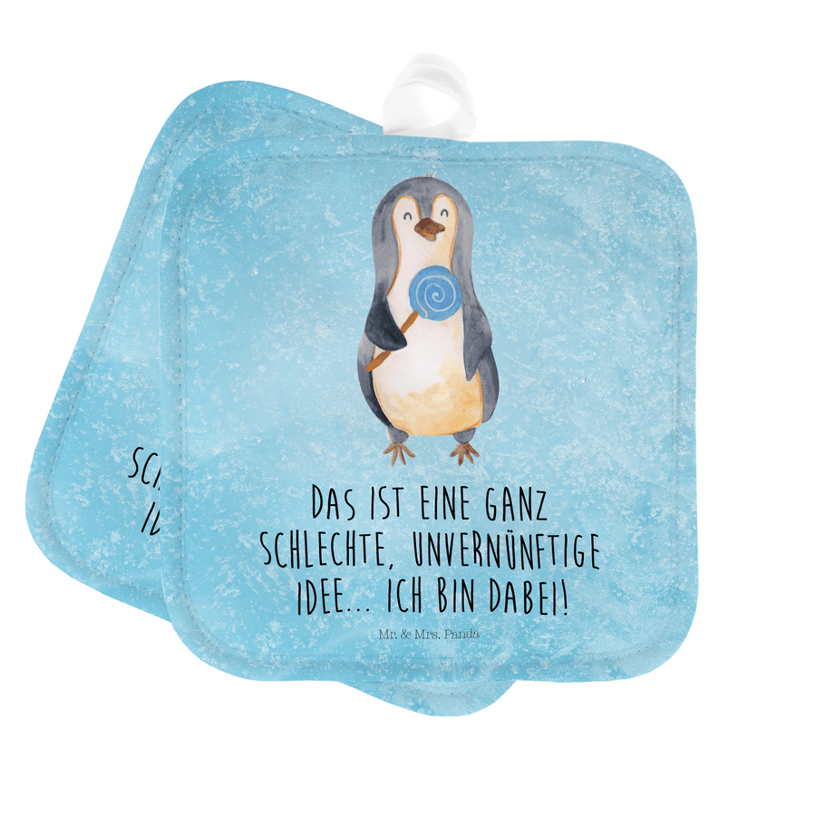 2er Set Topflappen Pinguin Lolli - mit Spruch - Eisblau