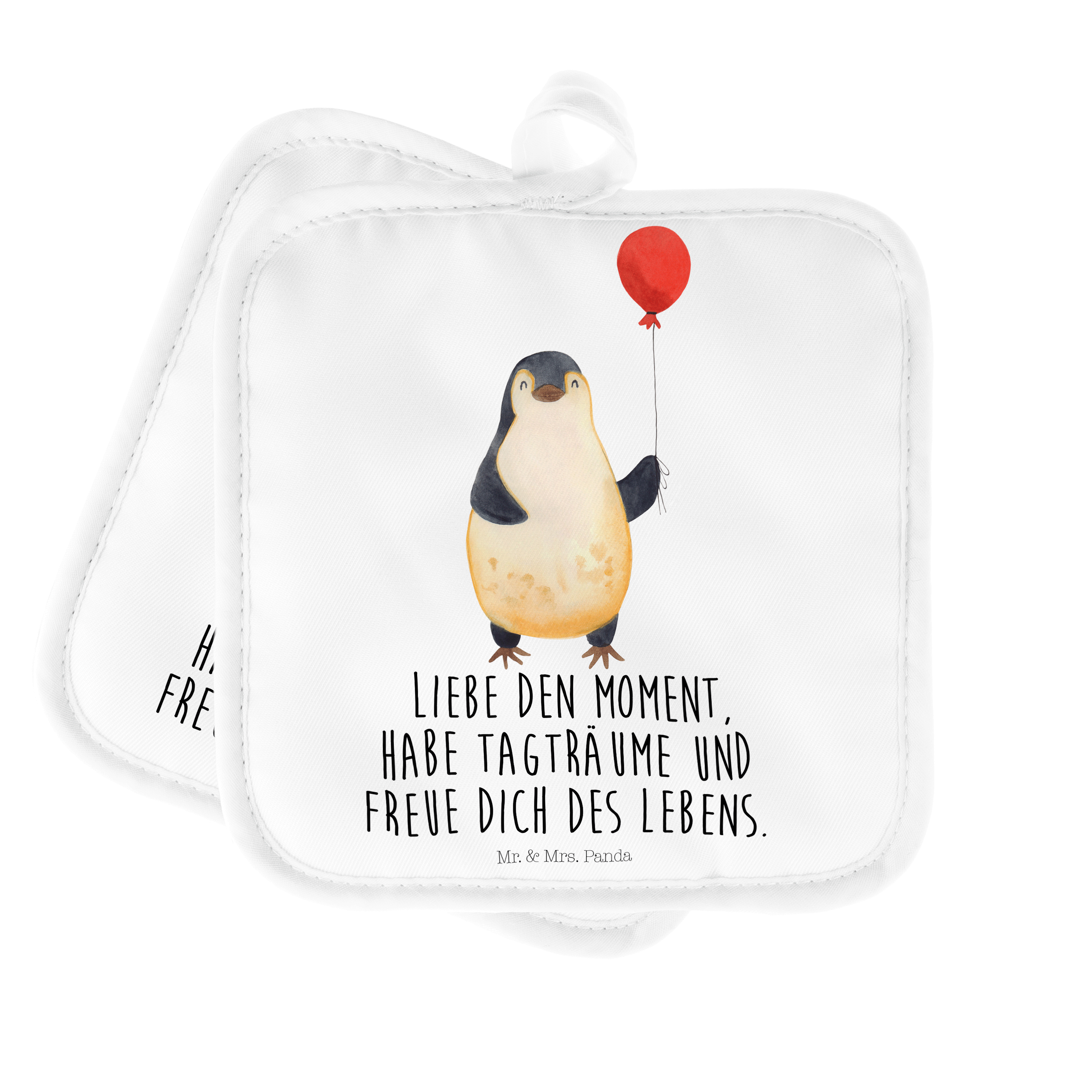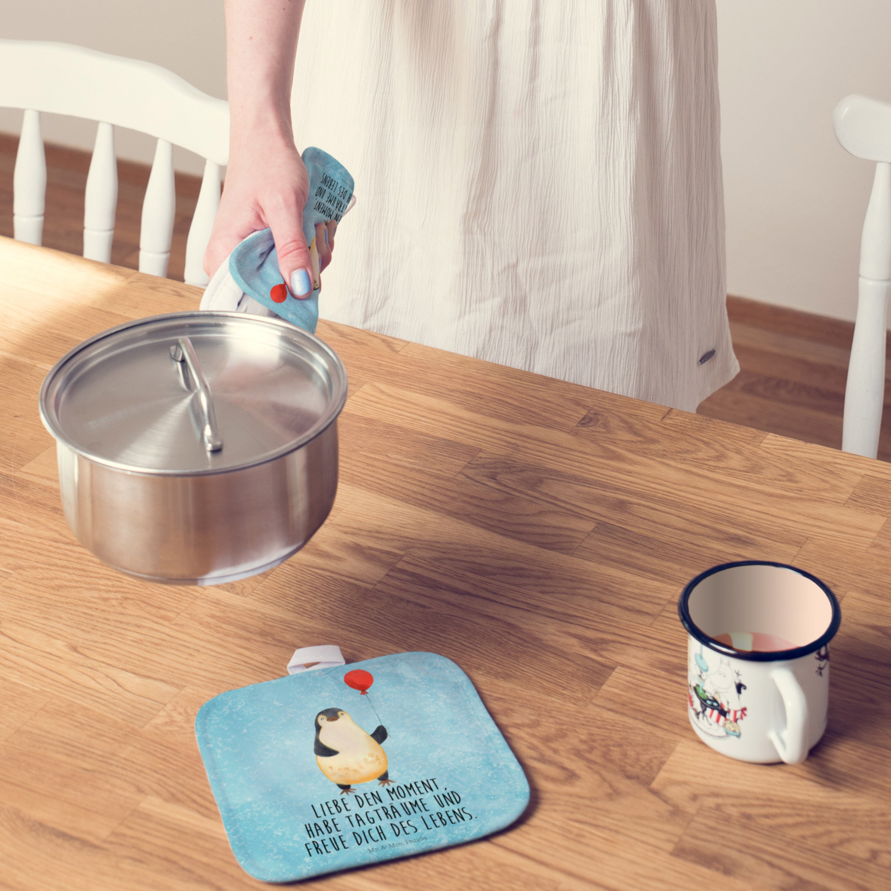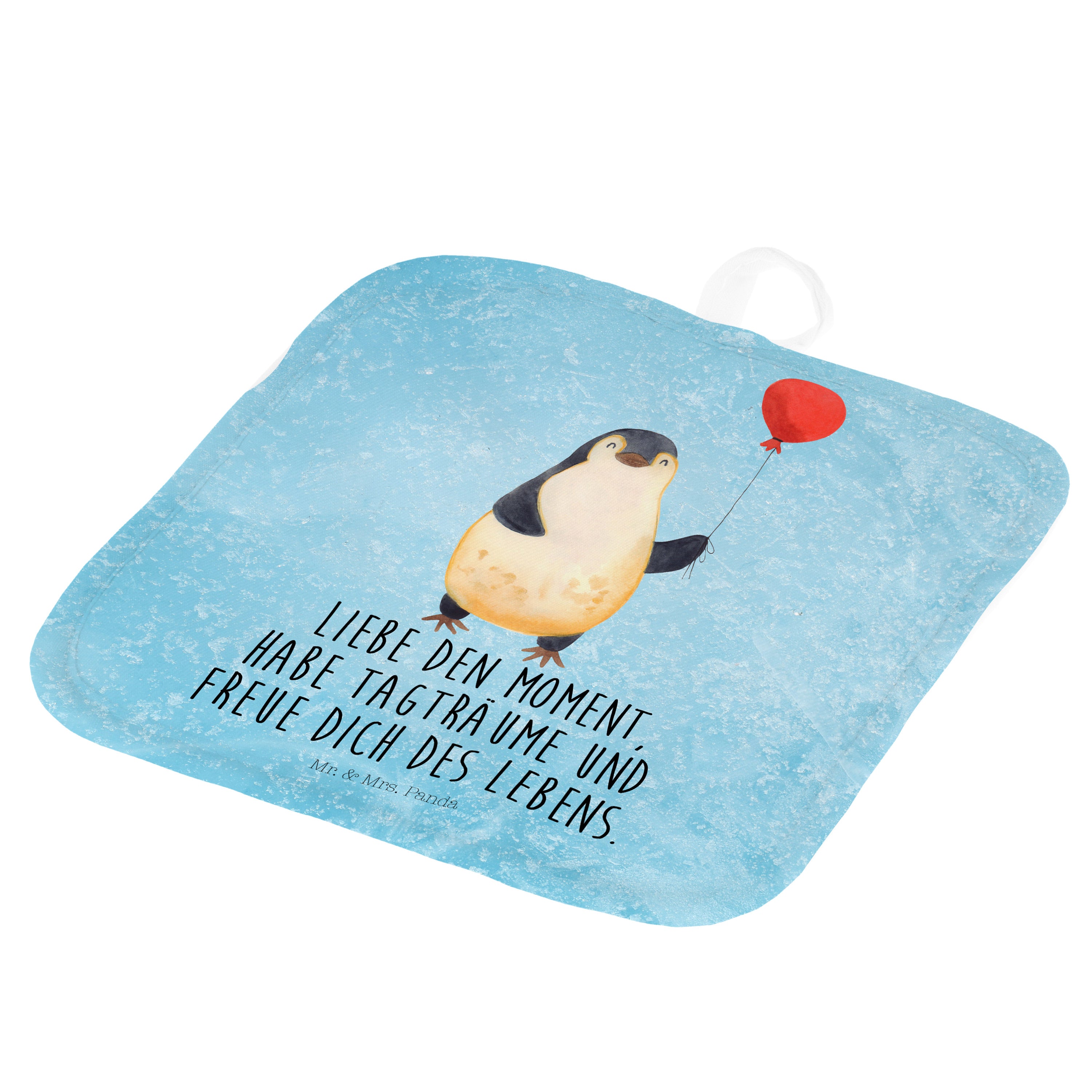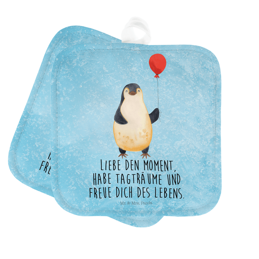 2er Set Topflappen Pinguin Luftballon - mit Spruch - Eisblau