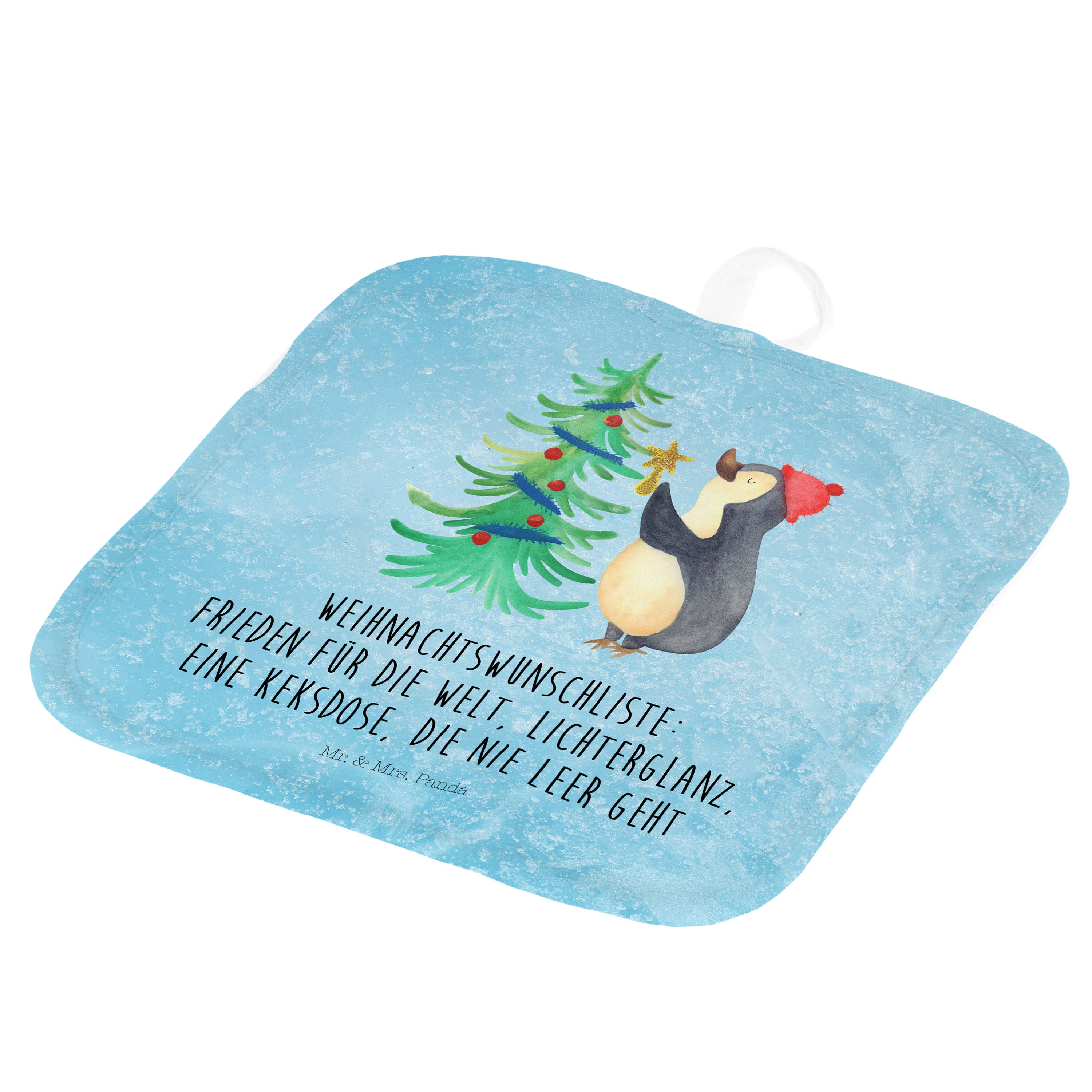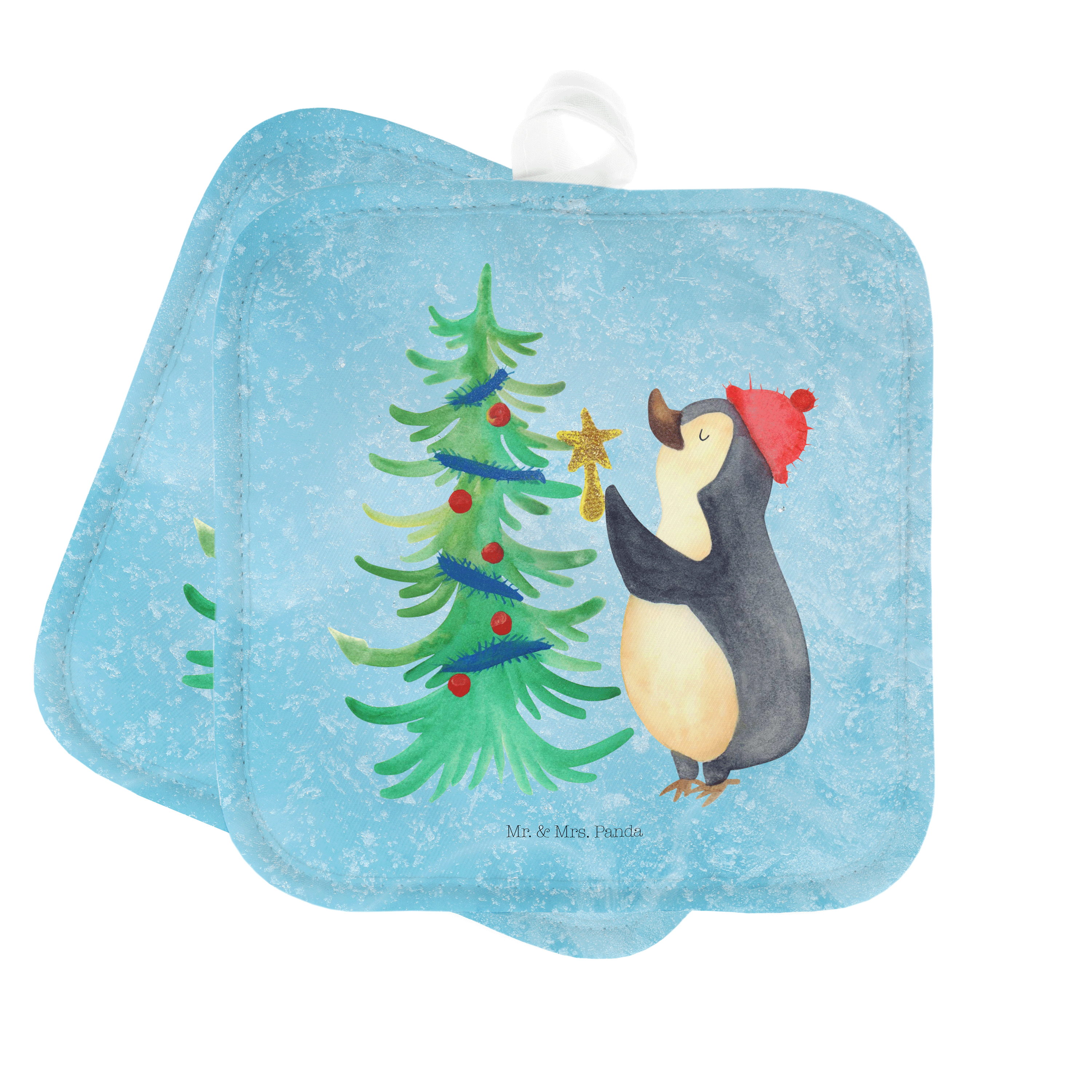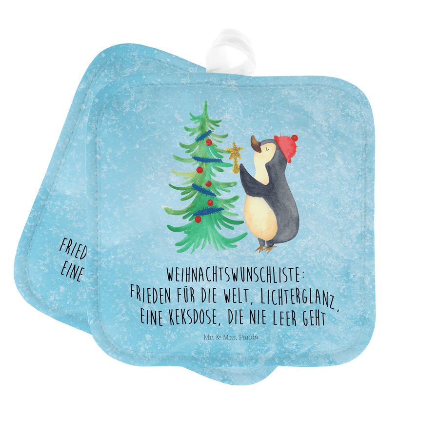 2er Set Topflappen Pinguin Weihnachtsbaum - mit Spruch - Eisblau