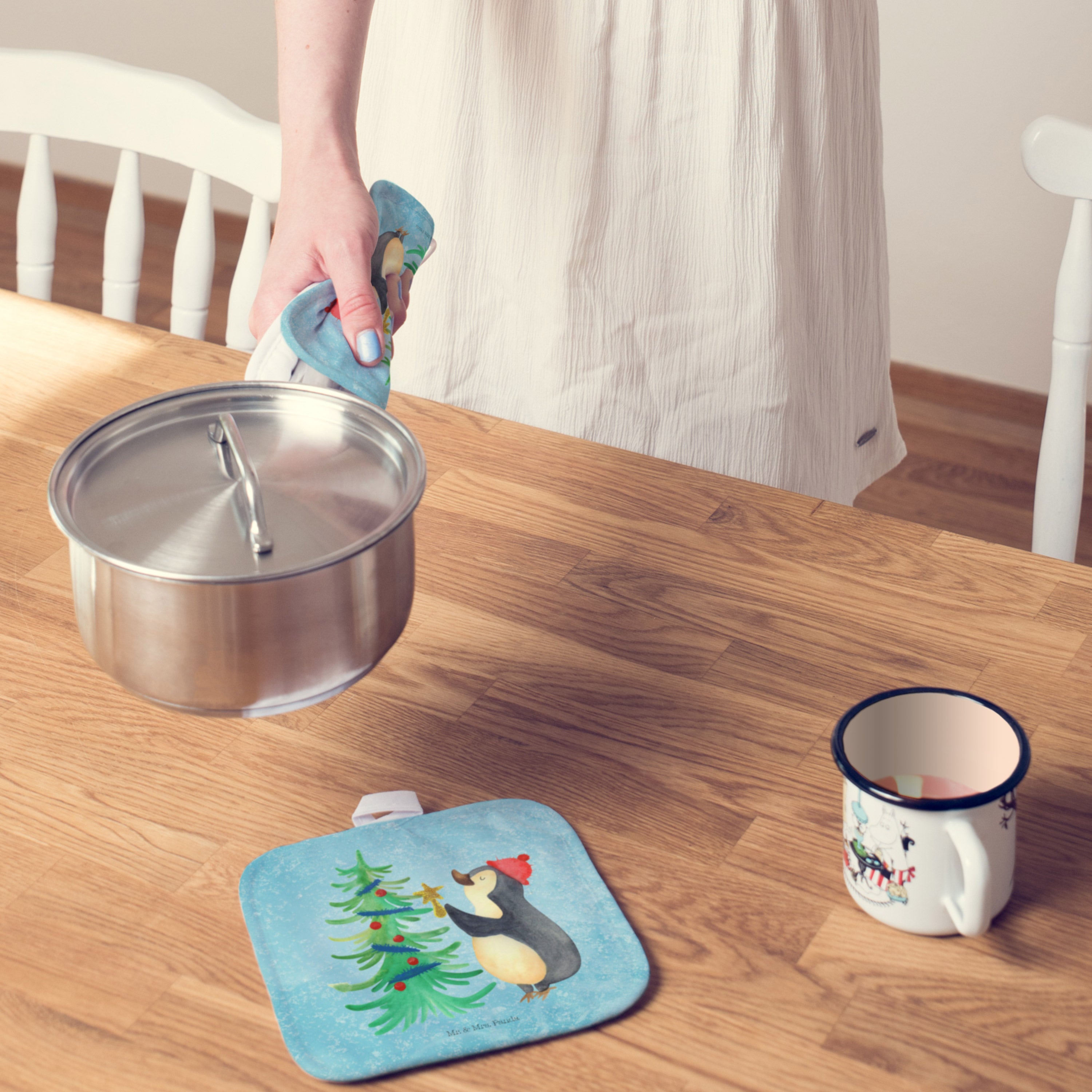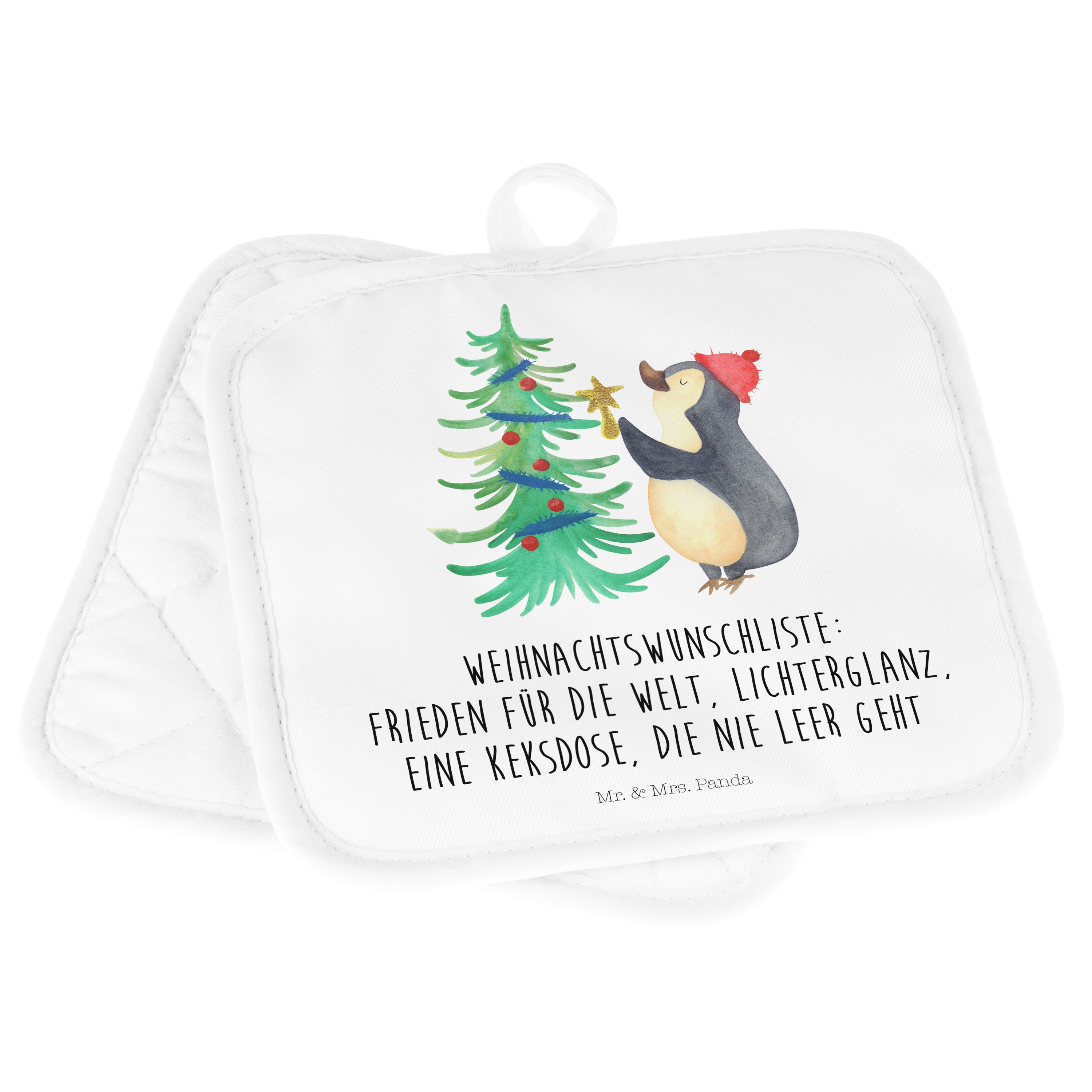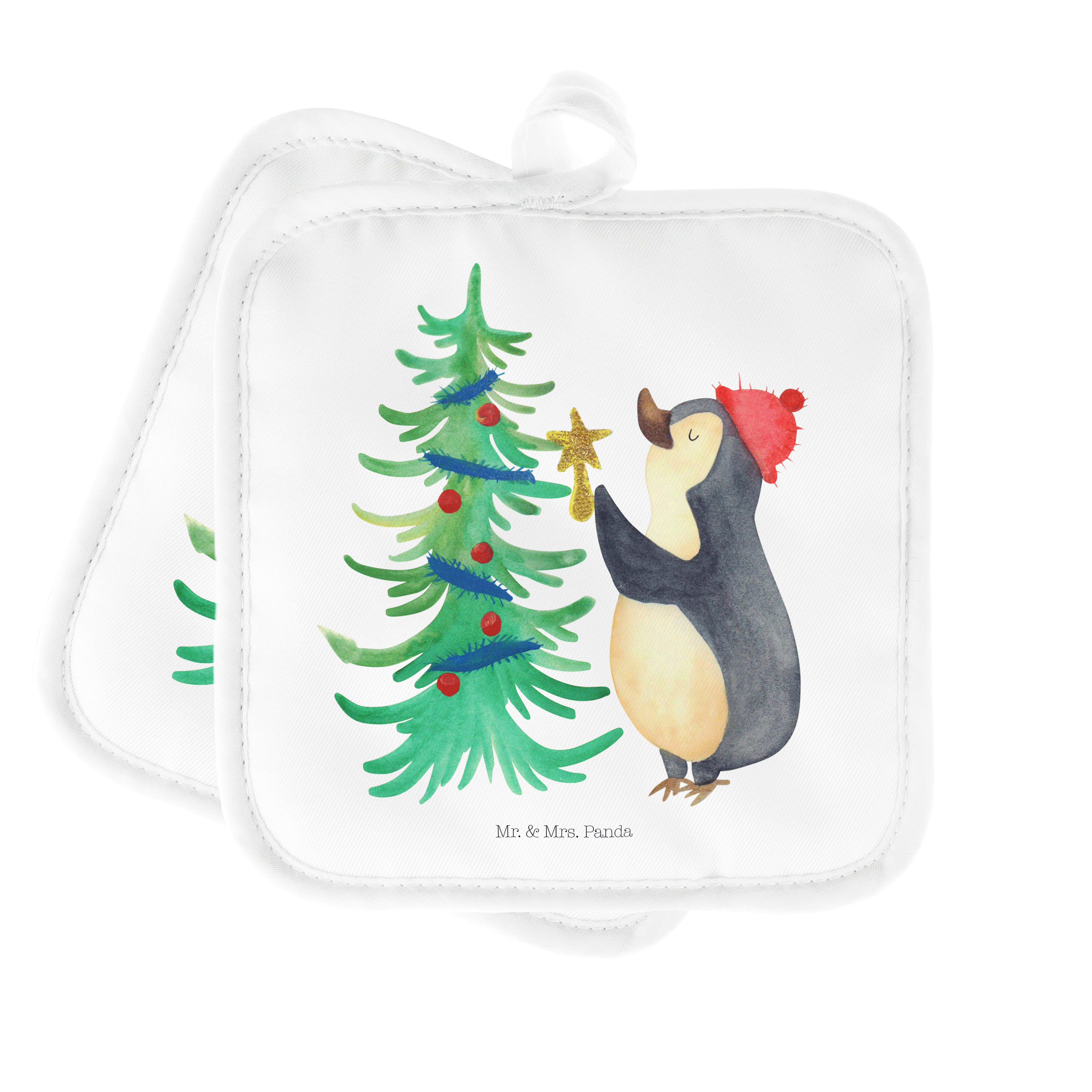 2er Set Topflappen Pinguin Weihnachtsbaum - mit Spruch - Eisblau