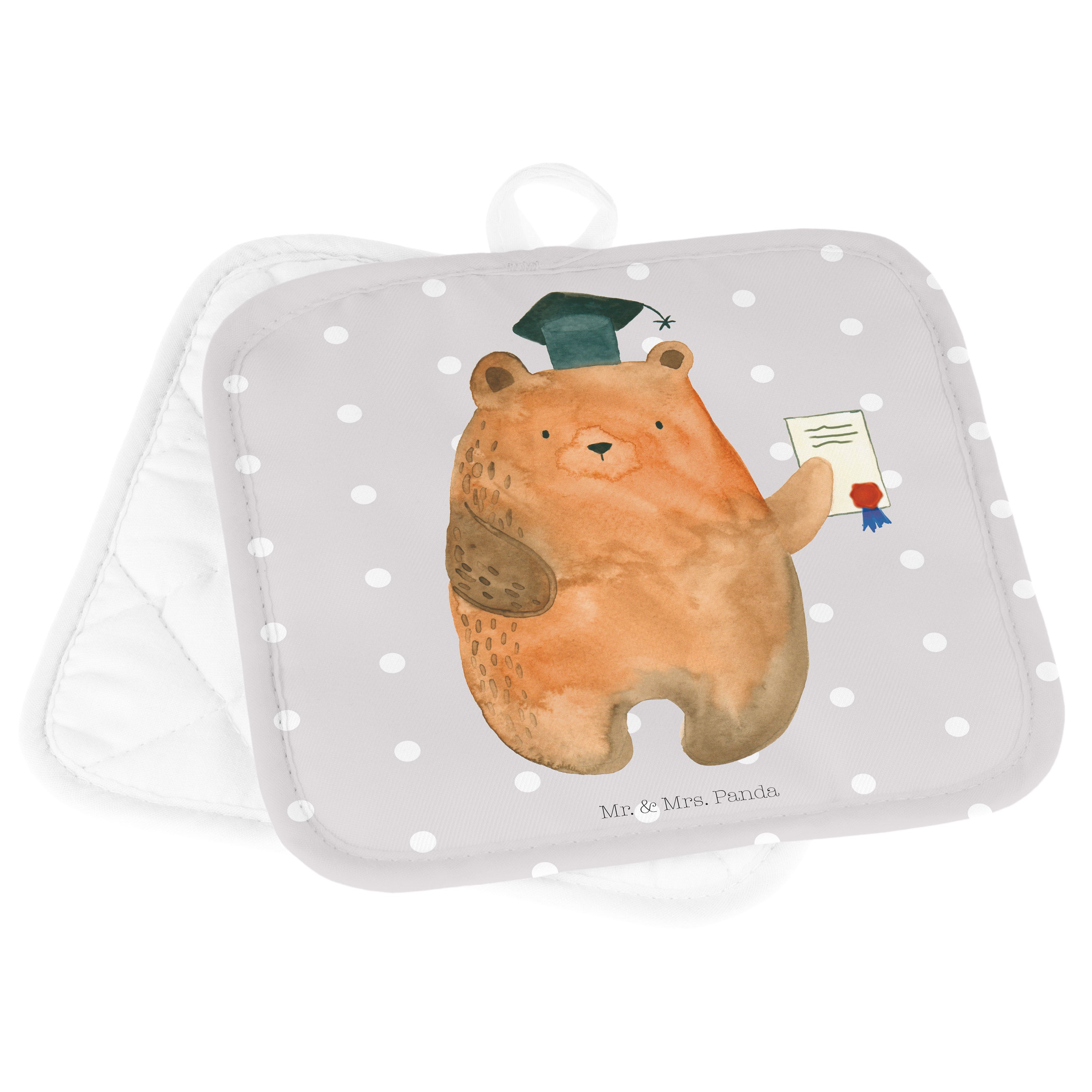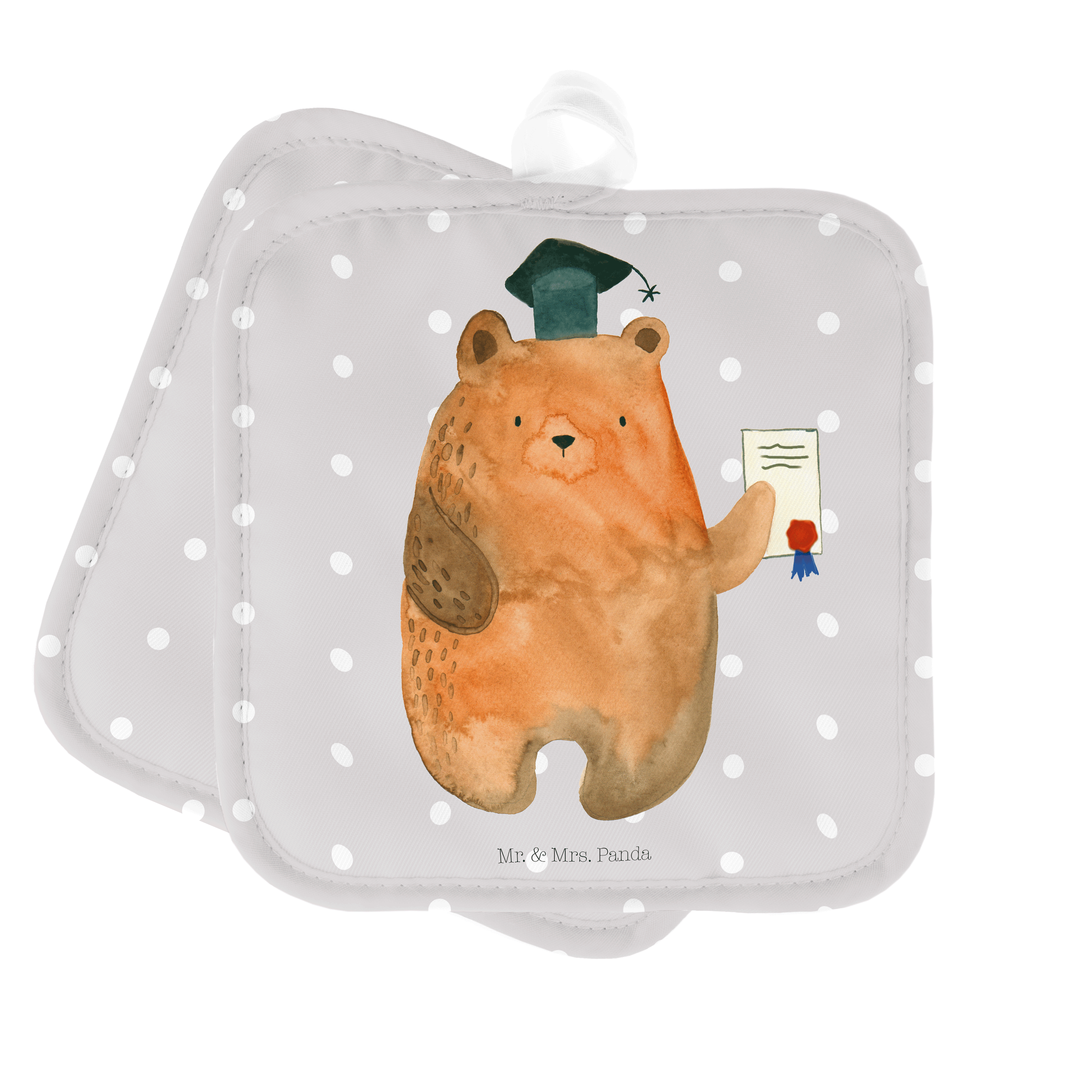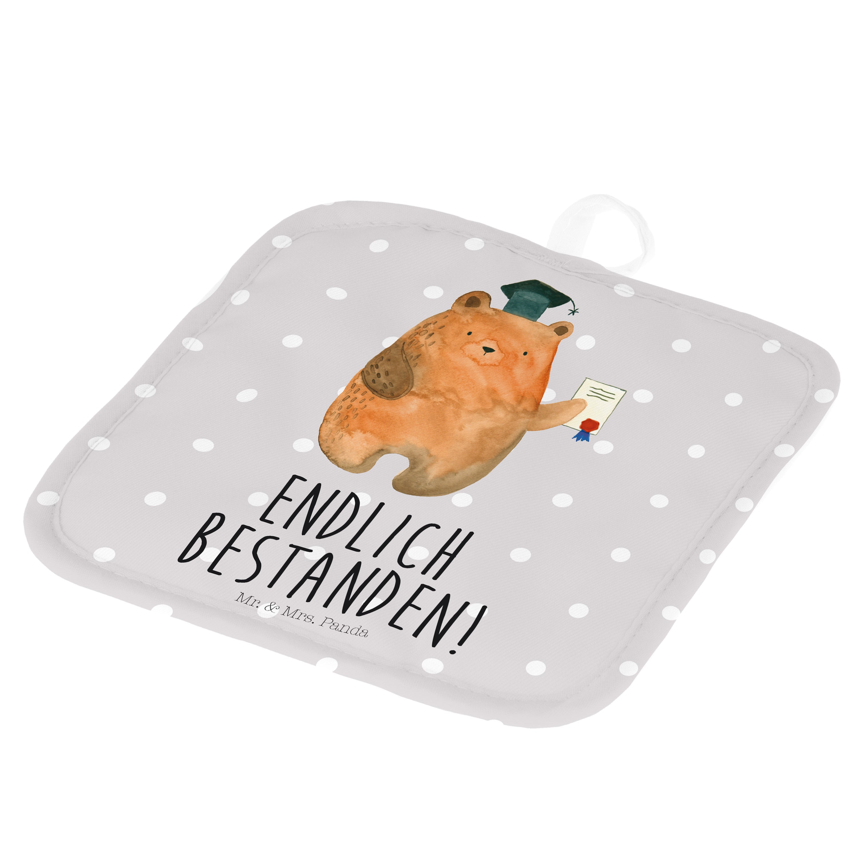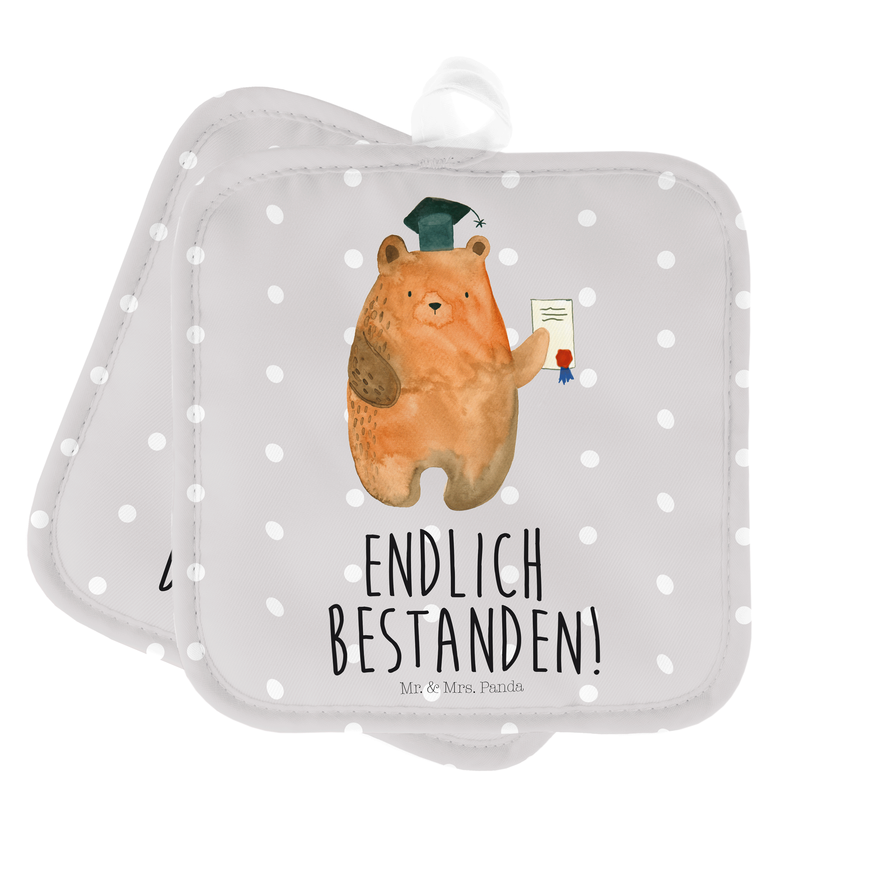 2er Set Topflappen Prüfungsbär - mit Spruch - Grau Pastell