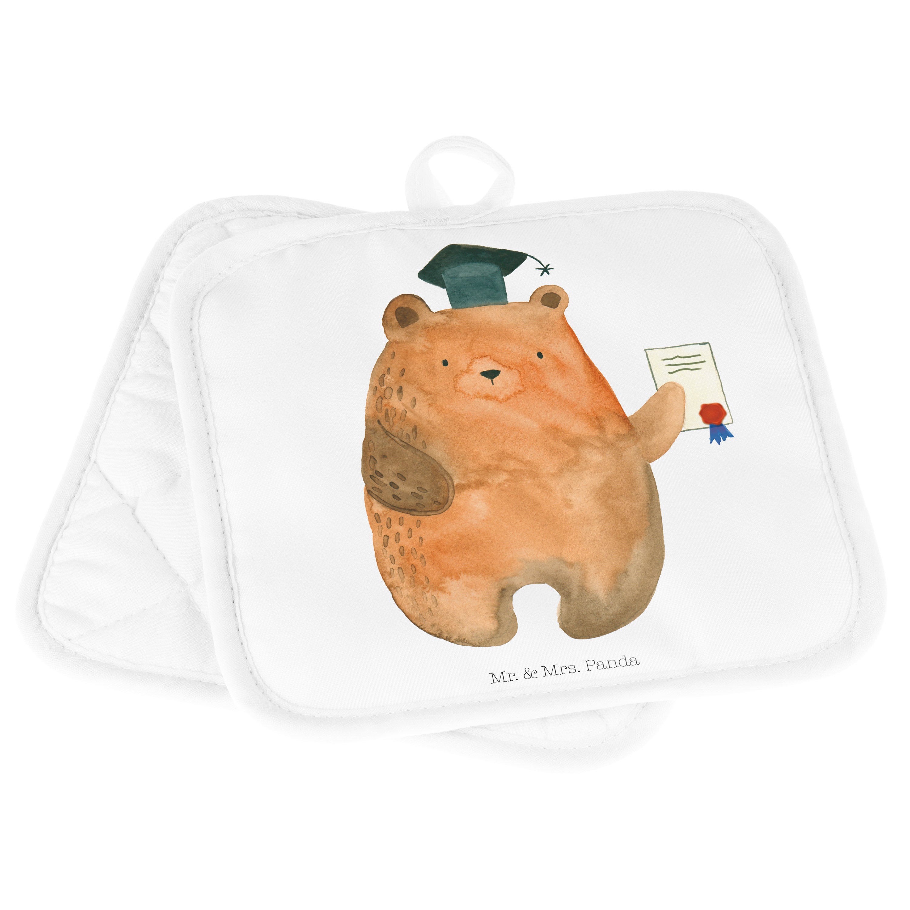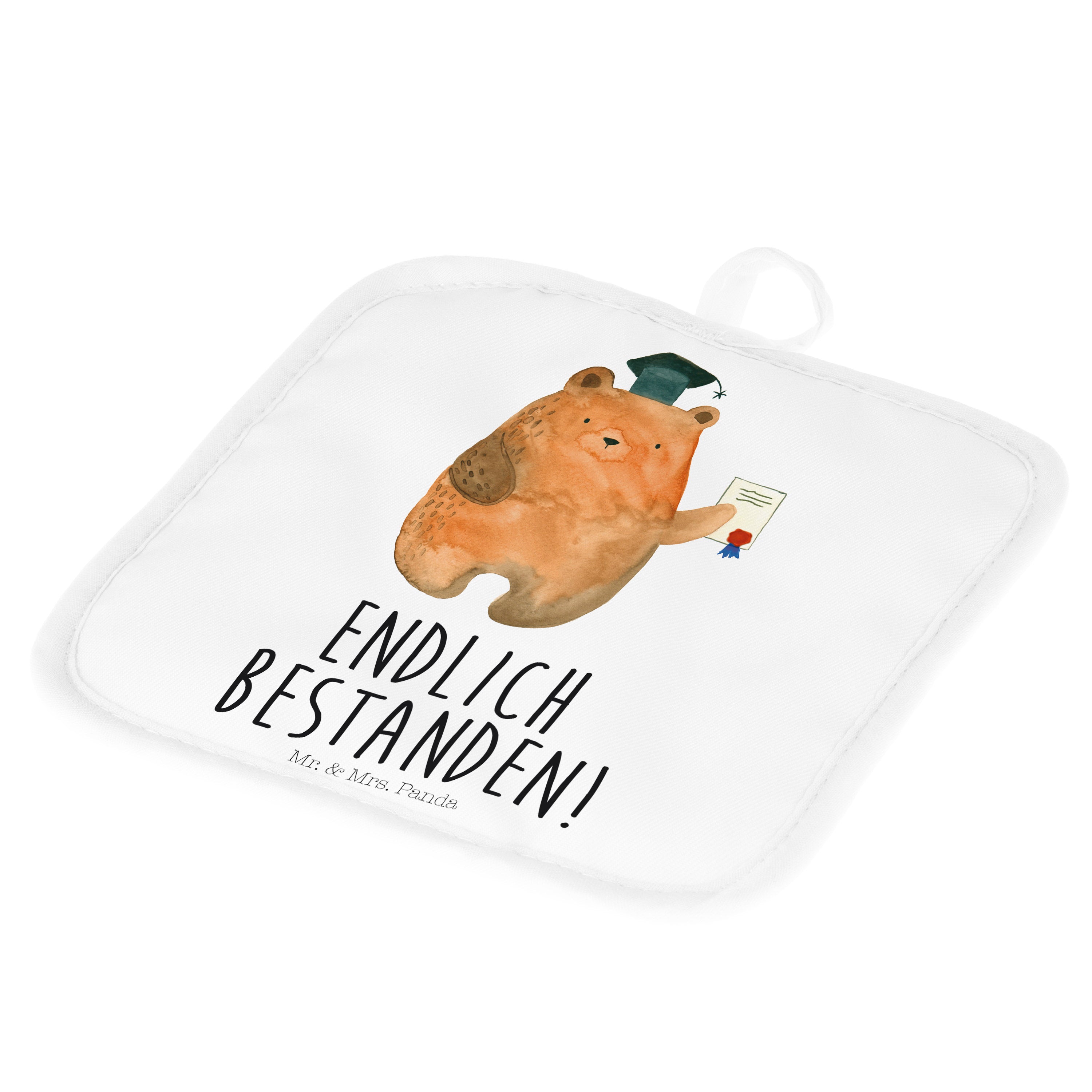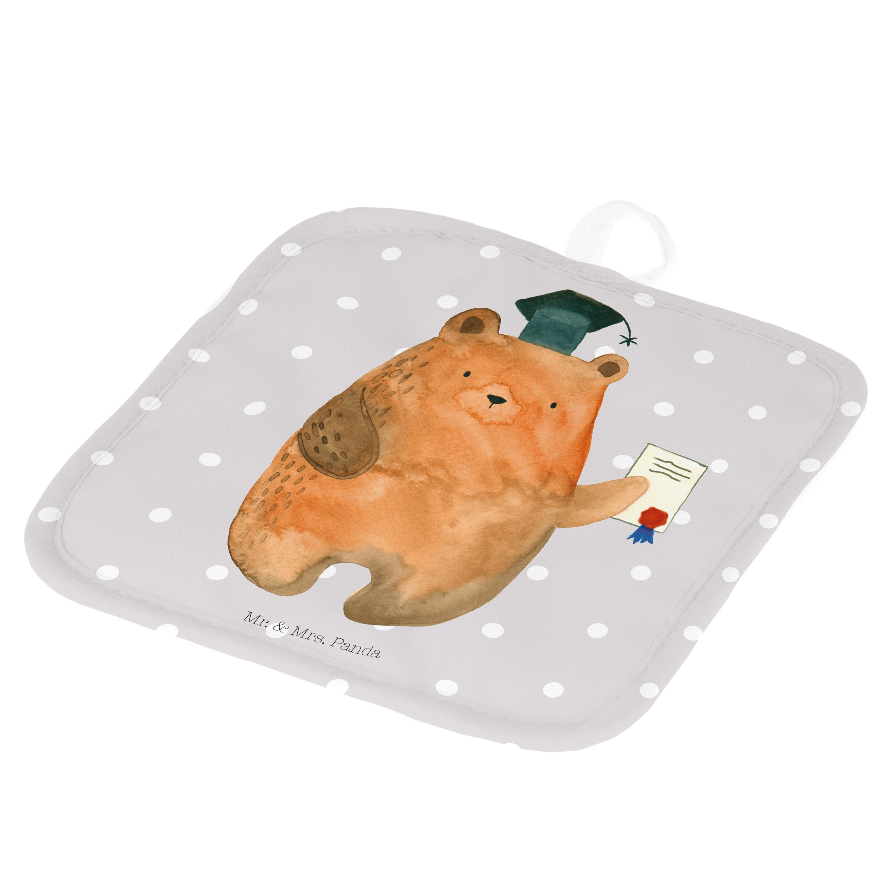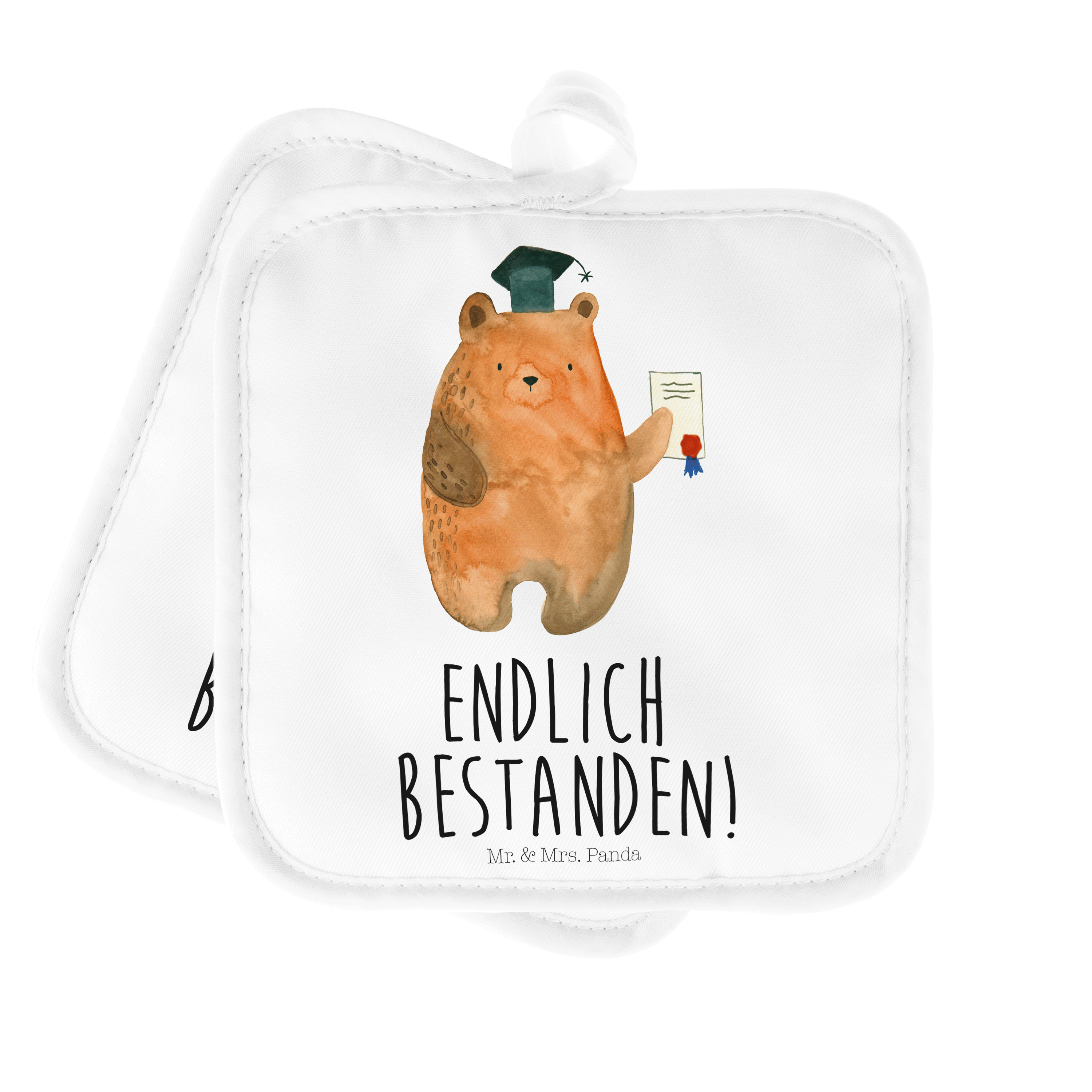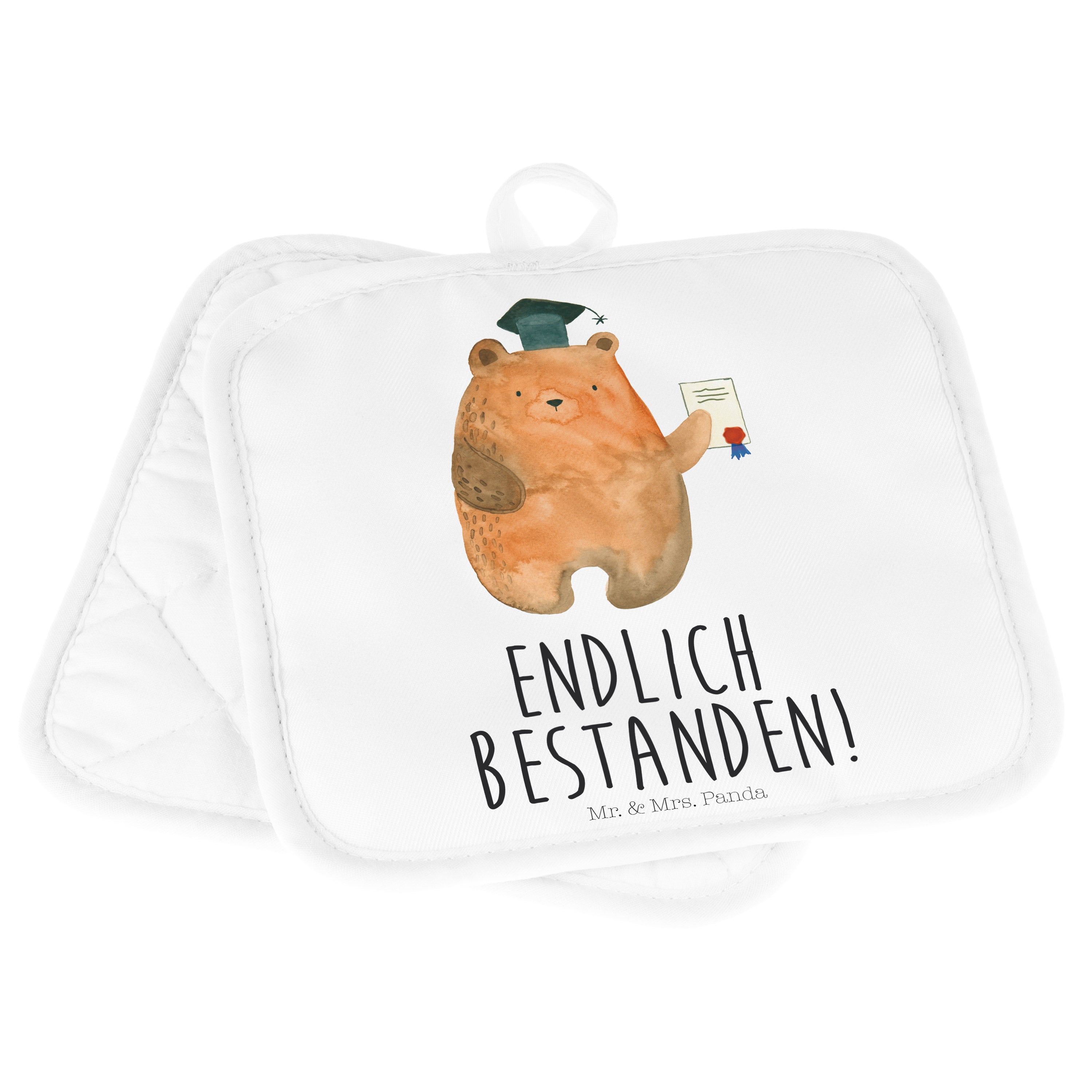 2er Set Topflappen Prüfungsbär - mit Spruch - Grau Pastell