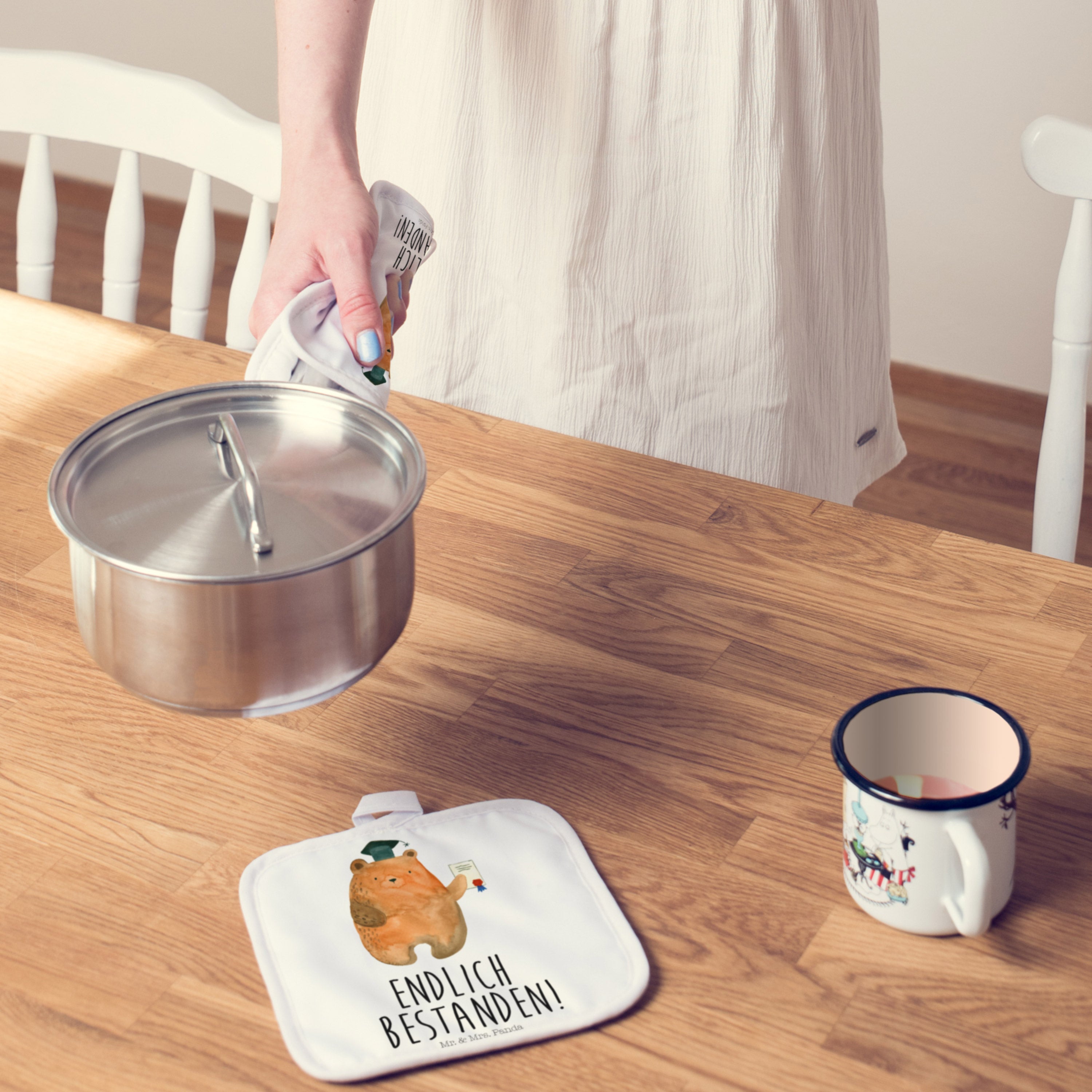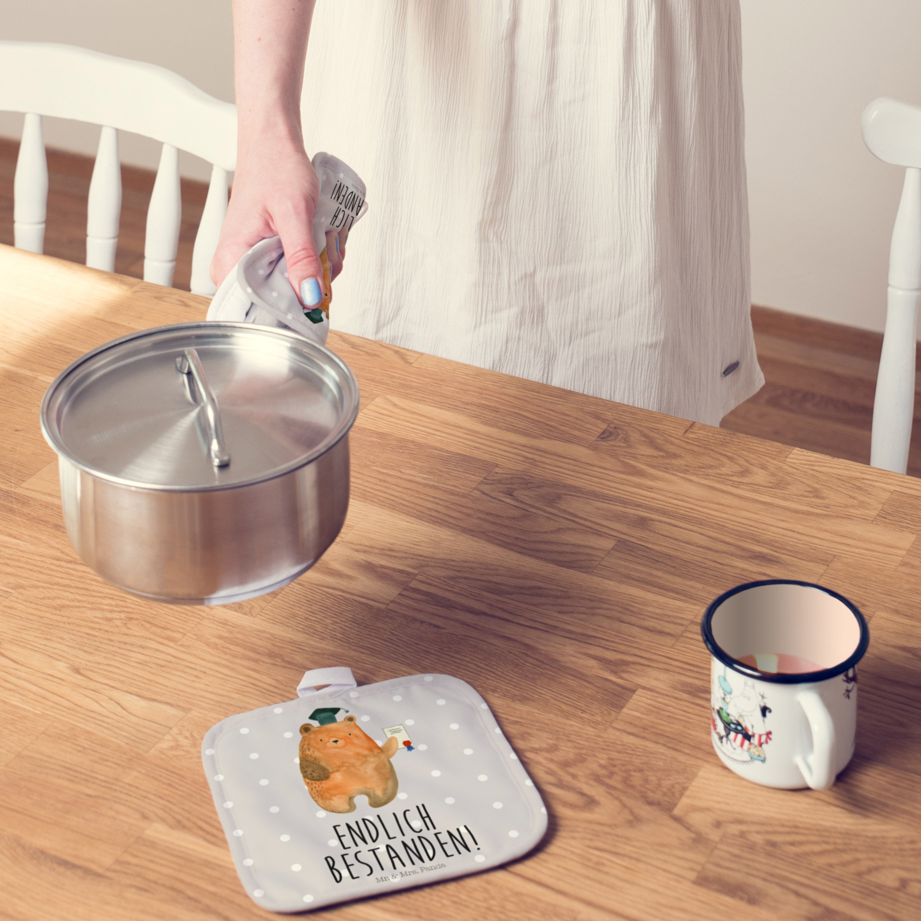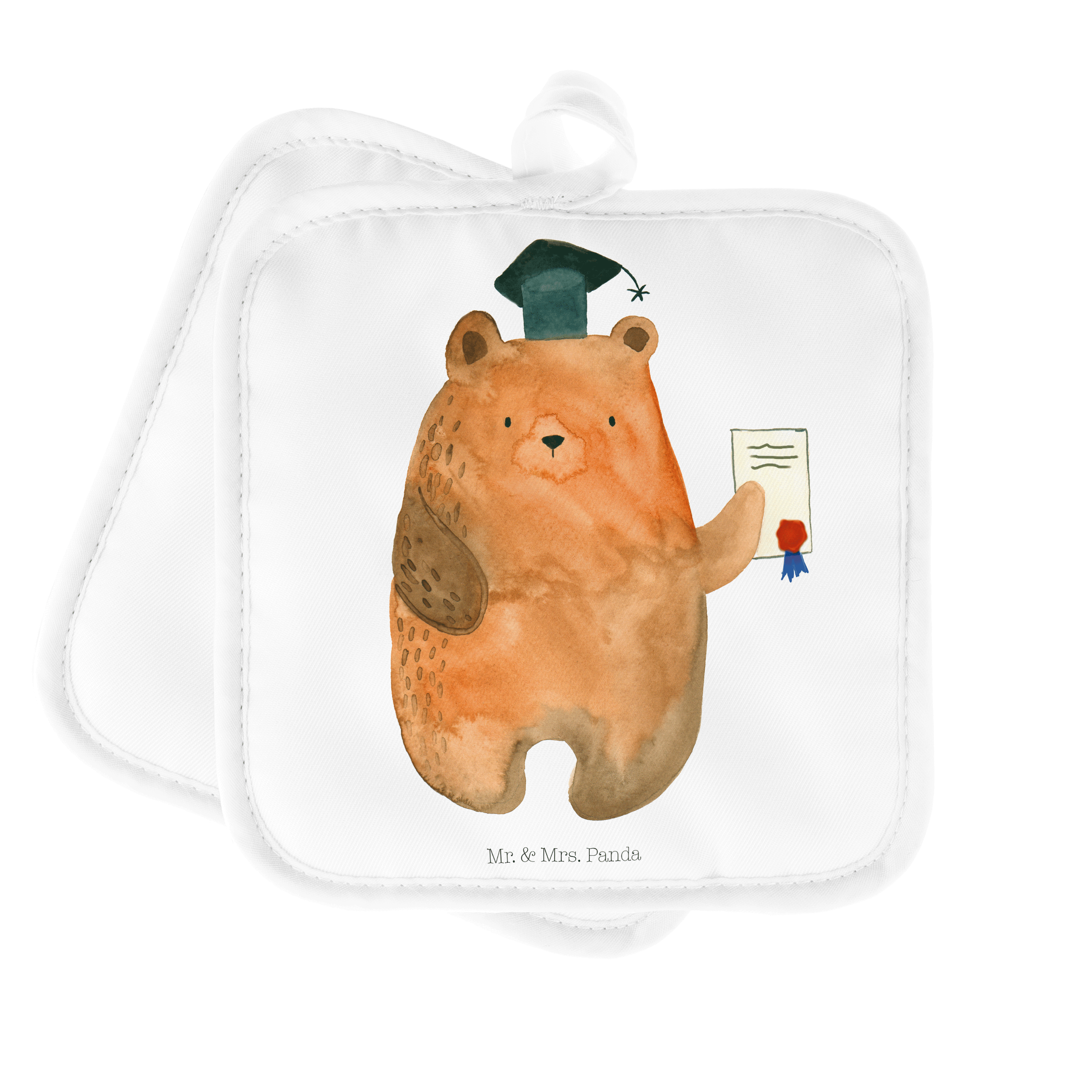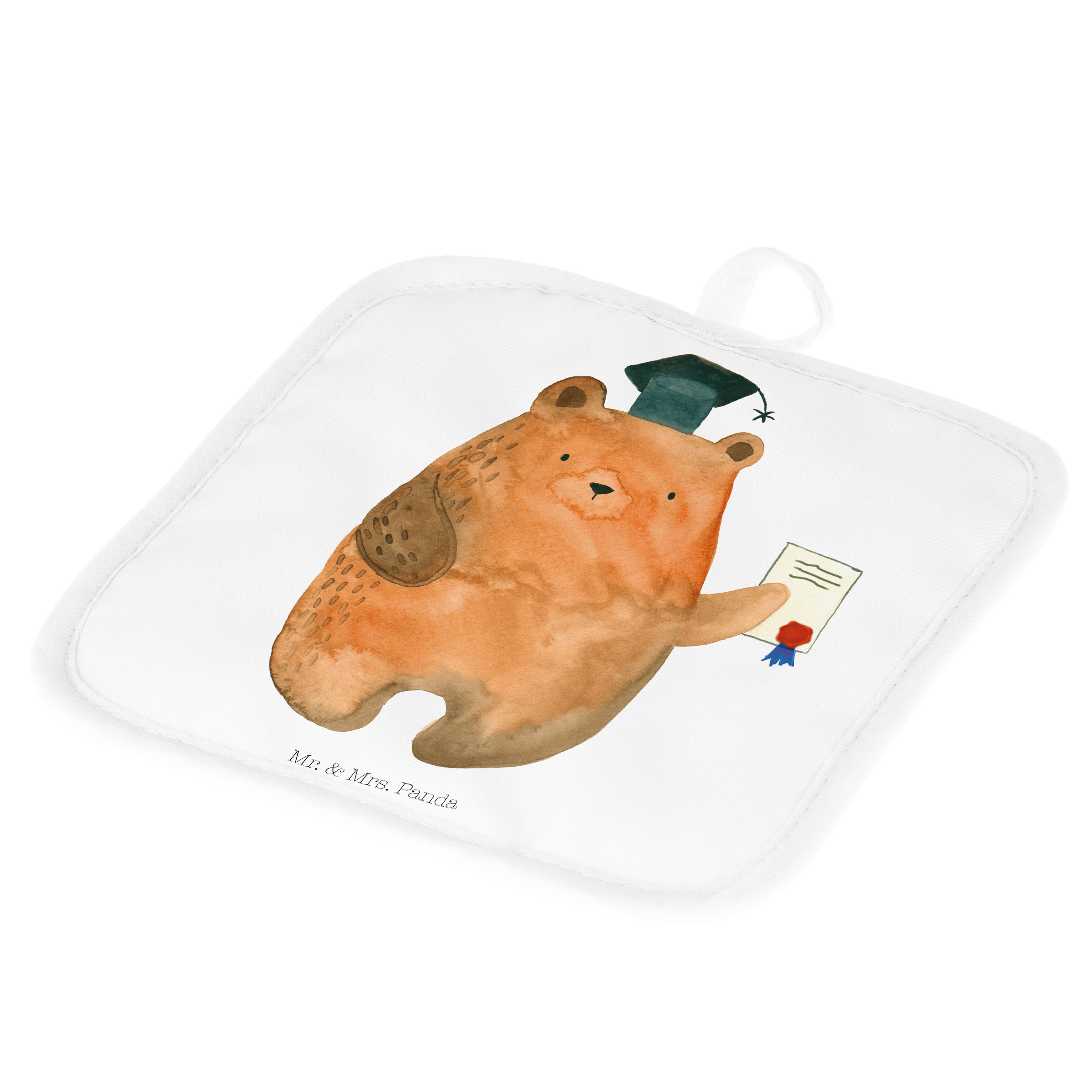 2er Set Topflappen Prüfungsbär - mit Spruch - Grau Pastell