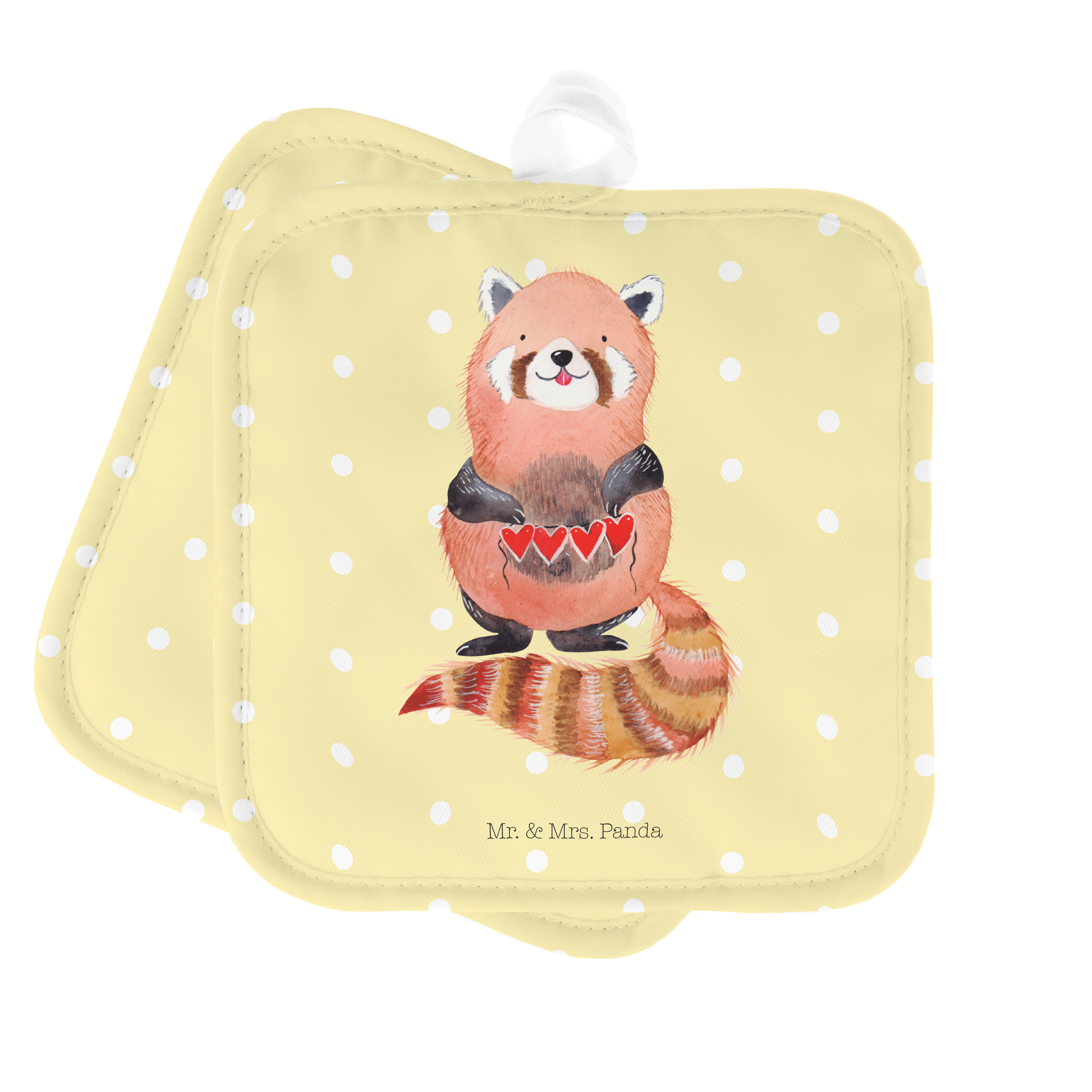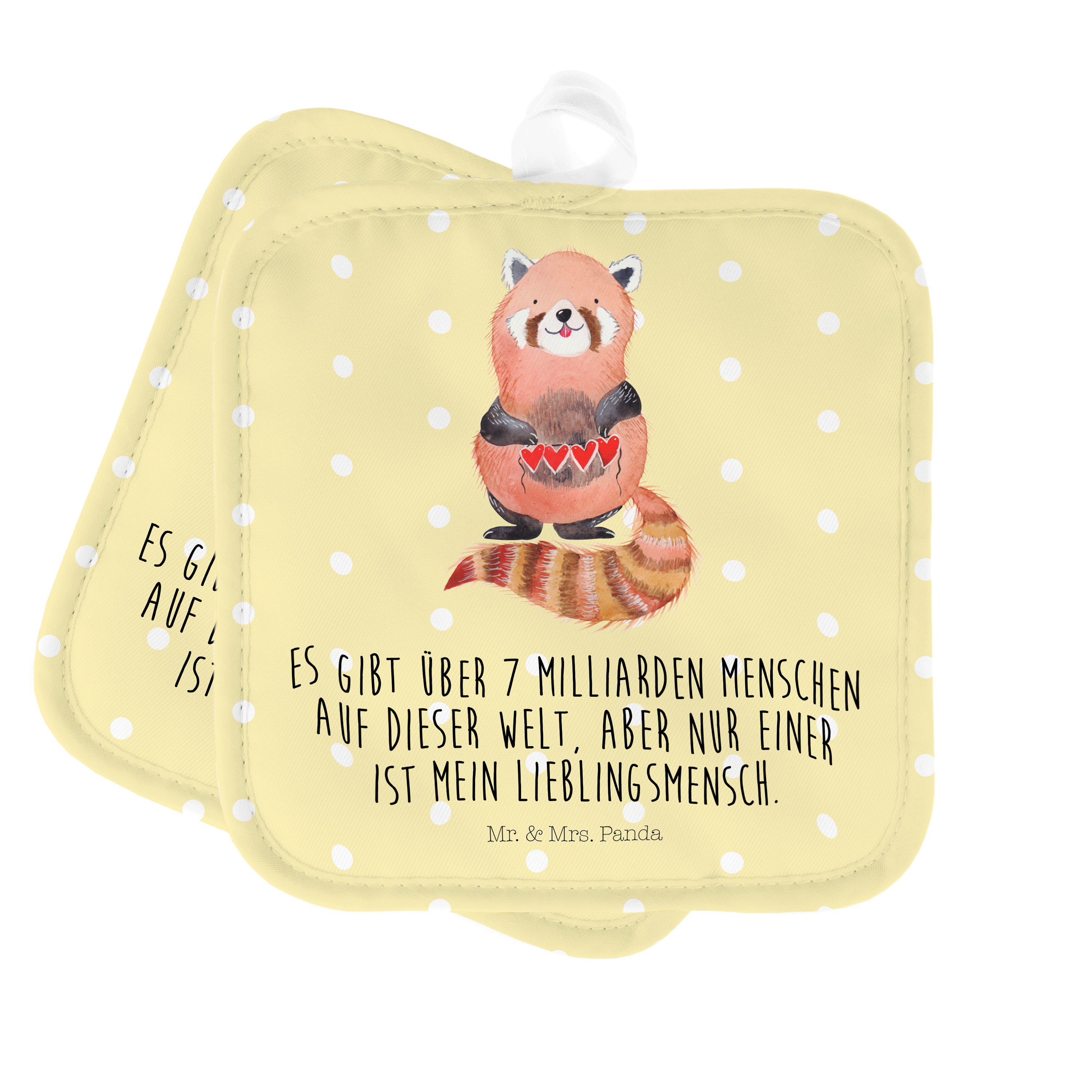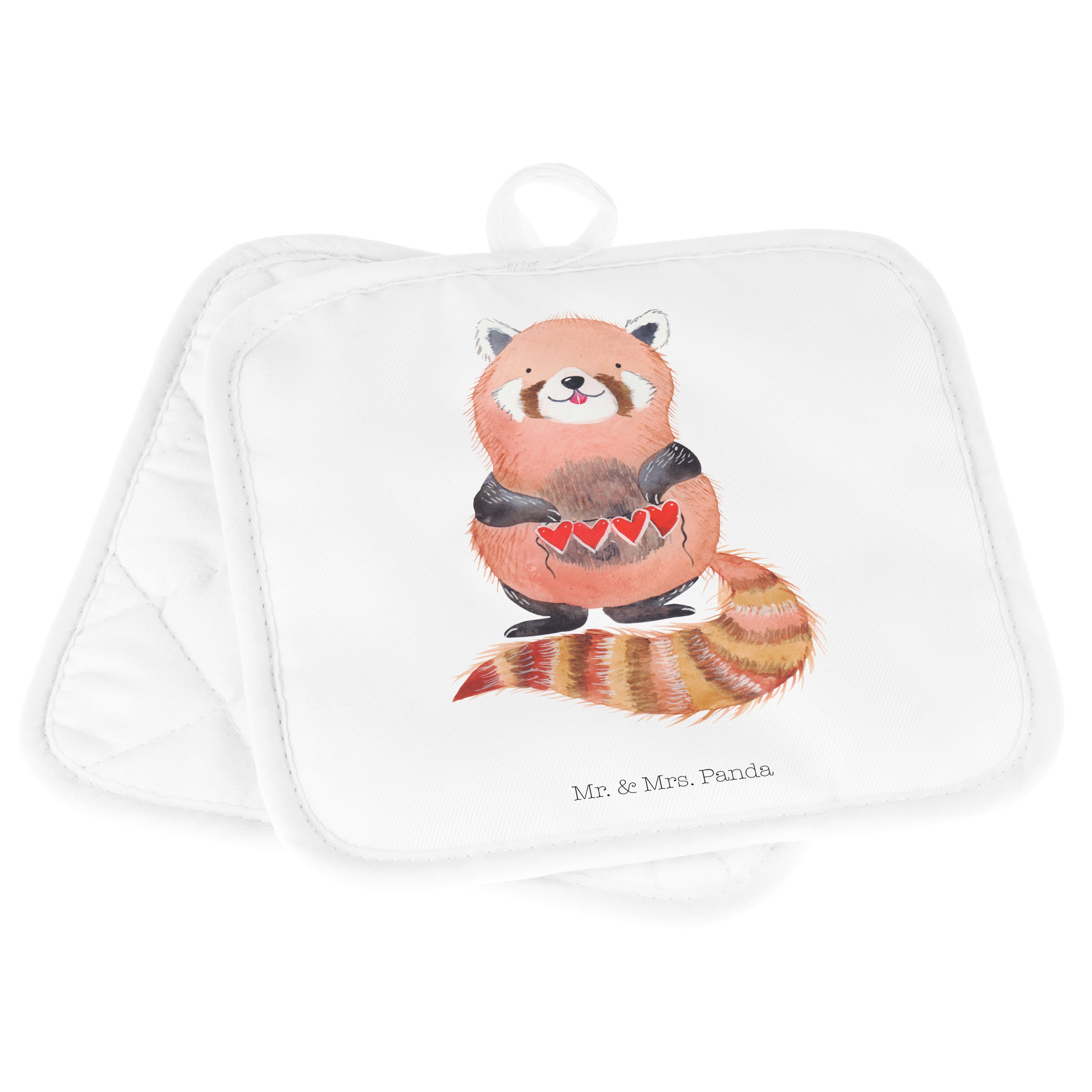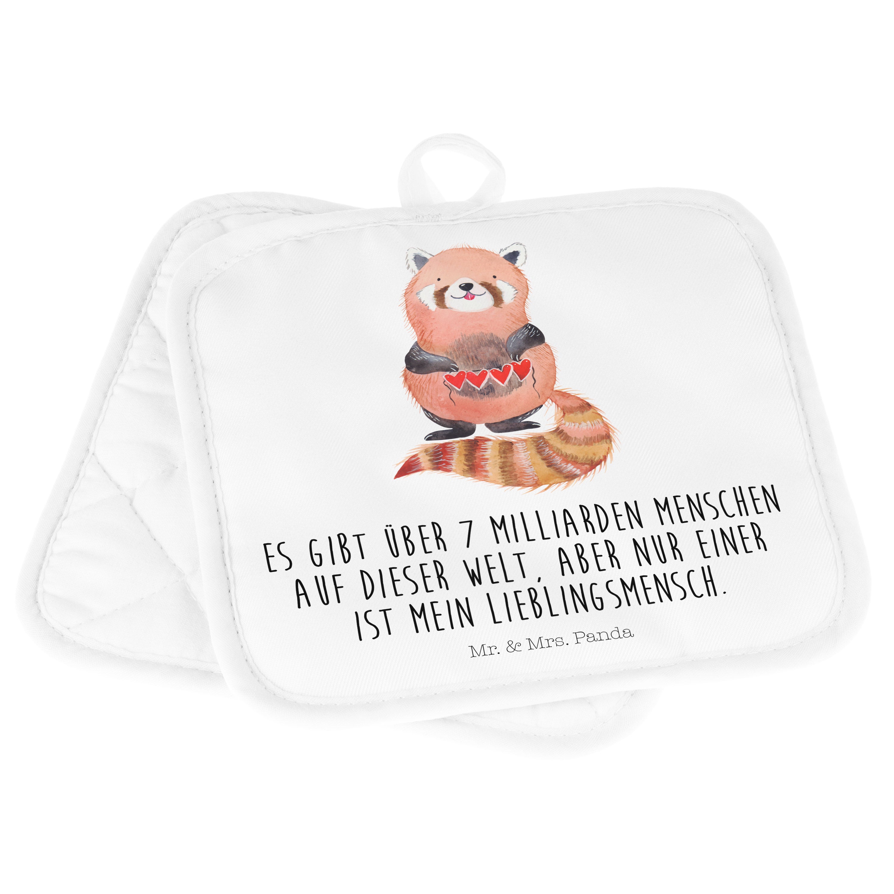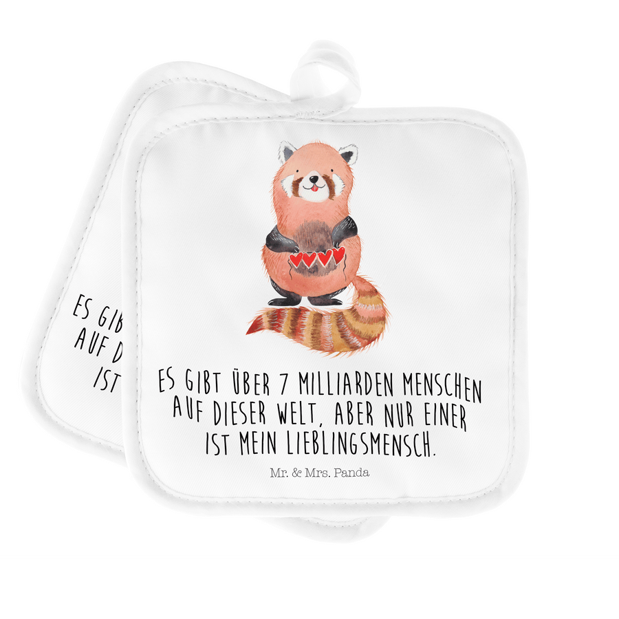 2er Set Topflappen Roter Panda - mit Spruch - Weiß