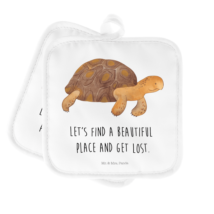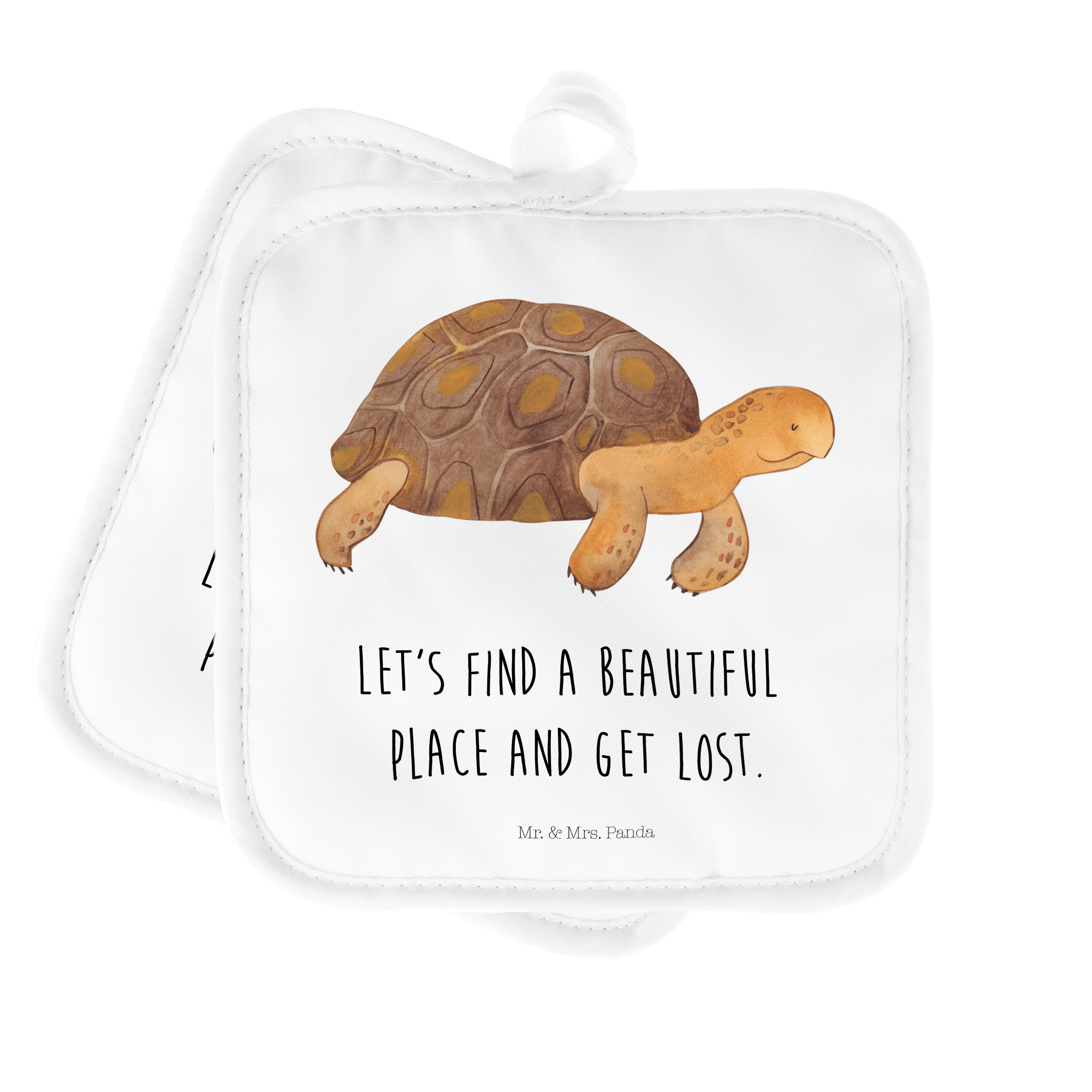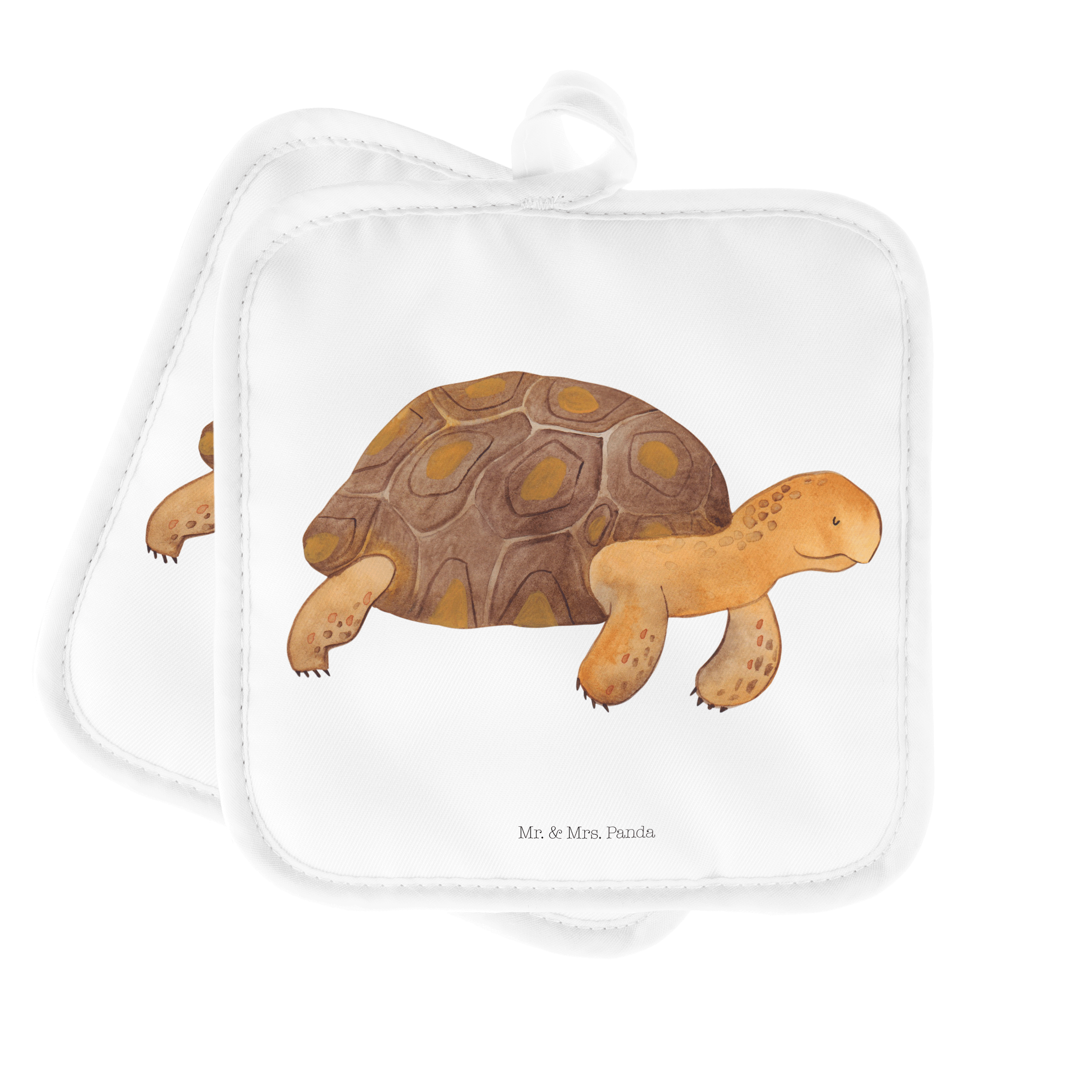 2er Set Topflappen Schildkröte marschiert - mit Spruch - Weiß