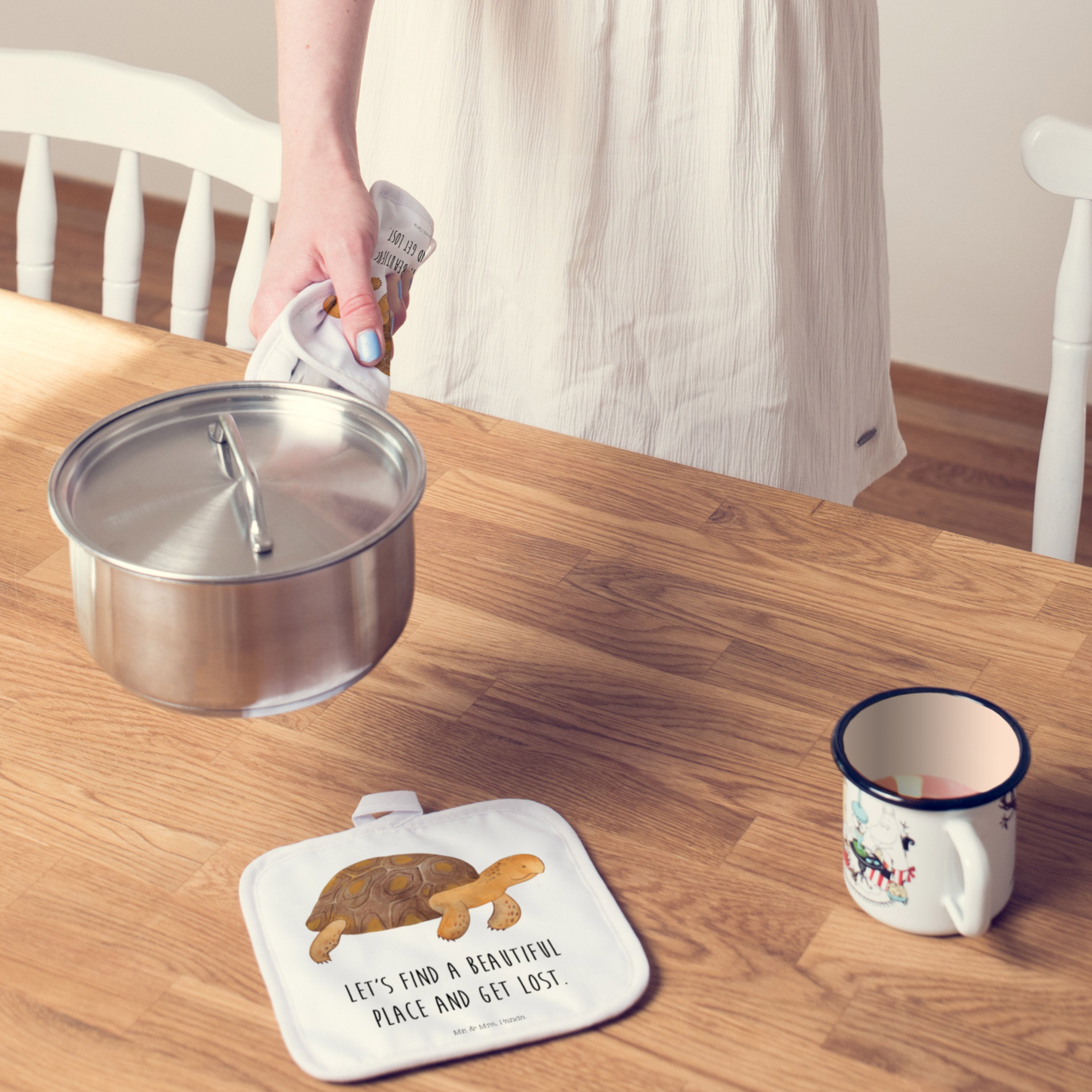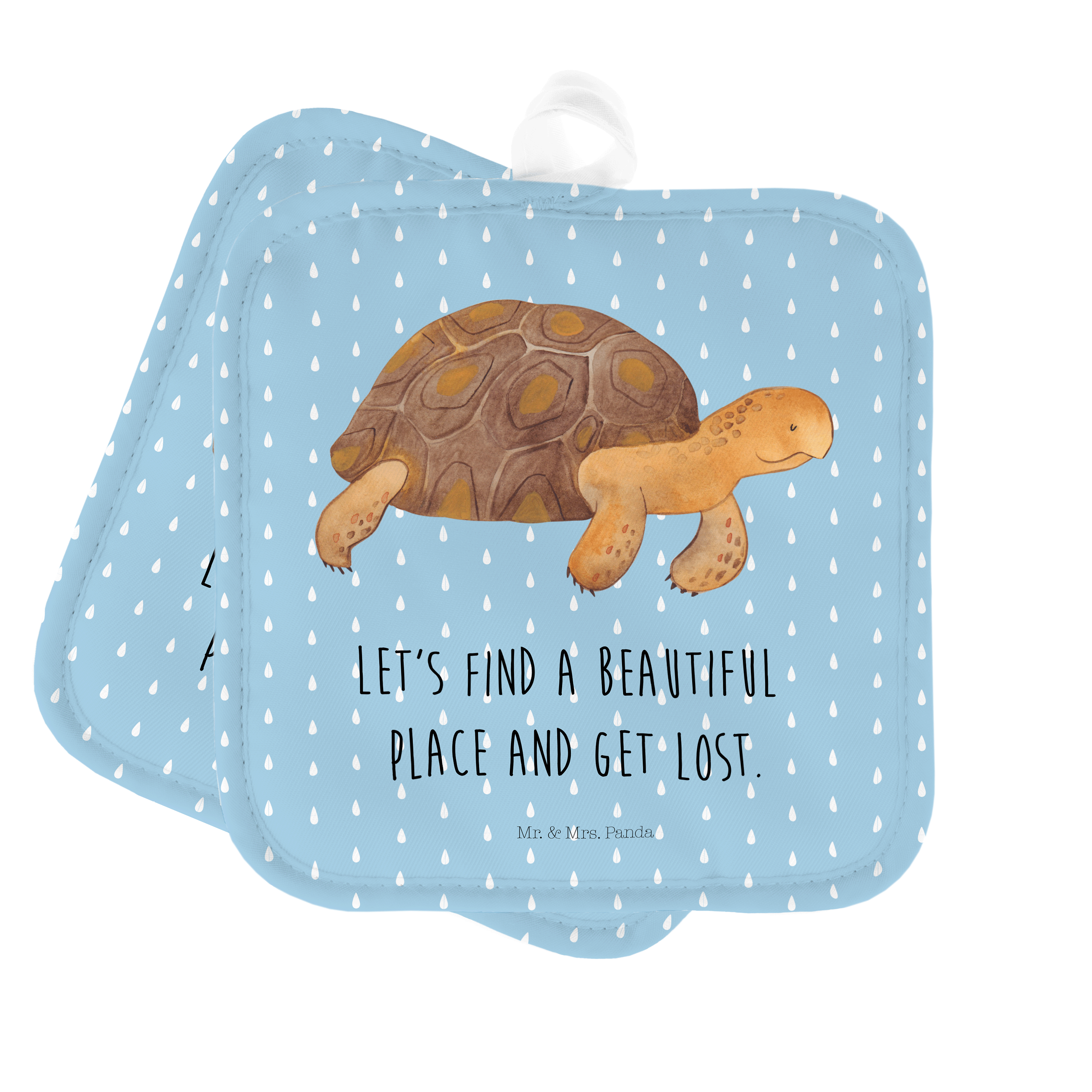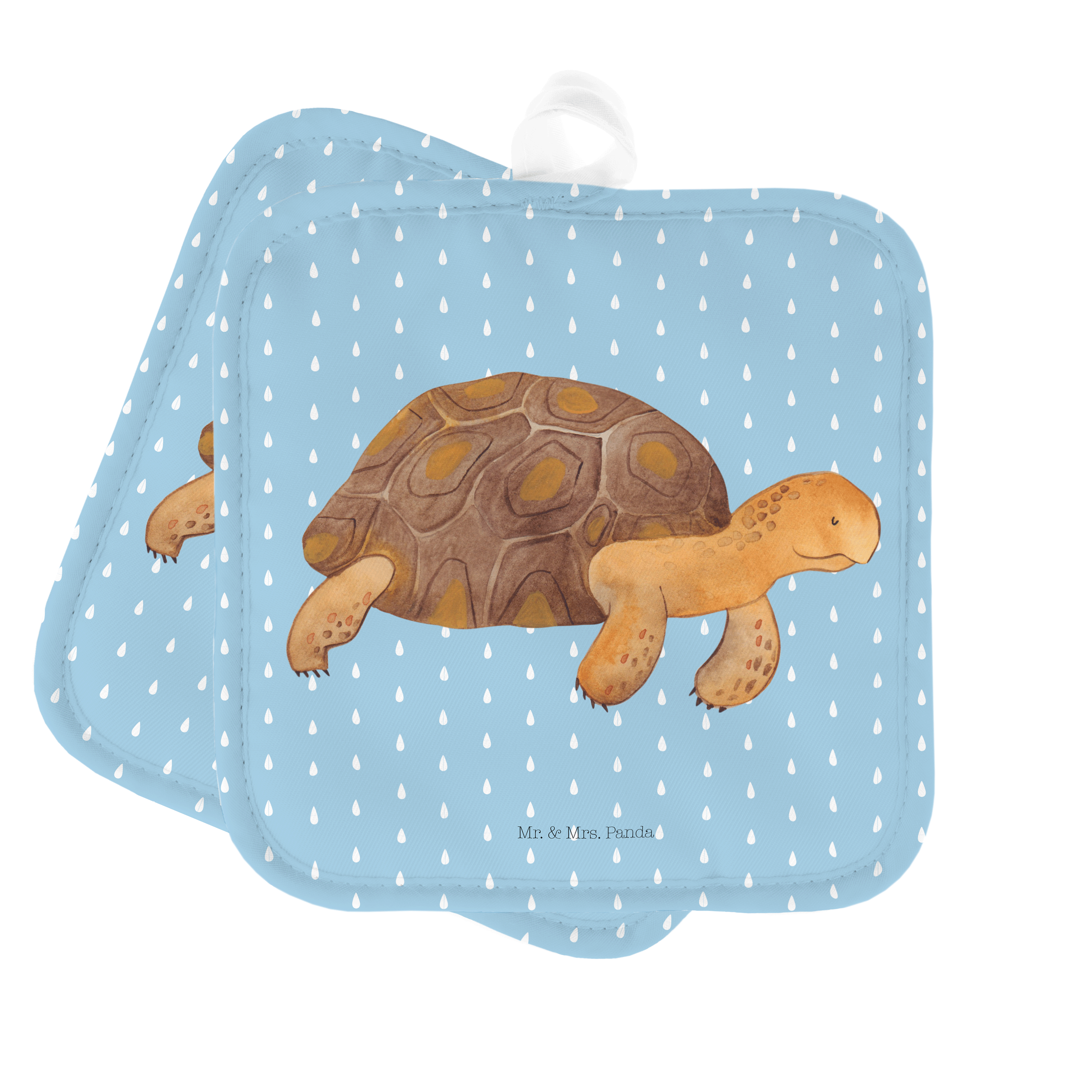 2er Set Topflappen Schildkröte marschiert - mit Spruch - Weiß