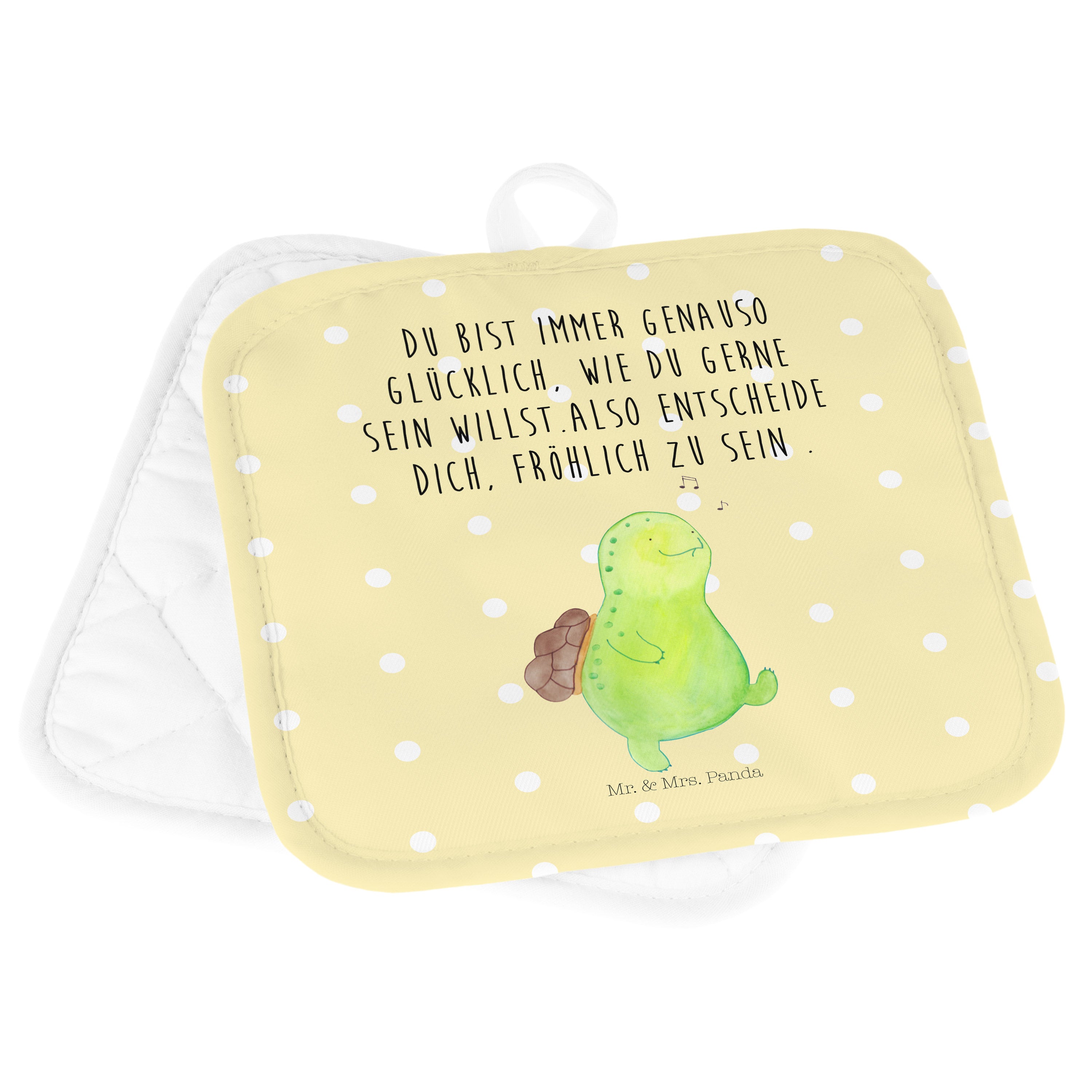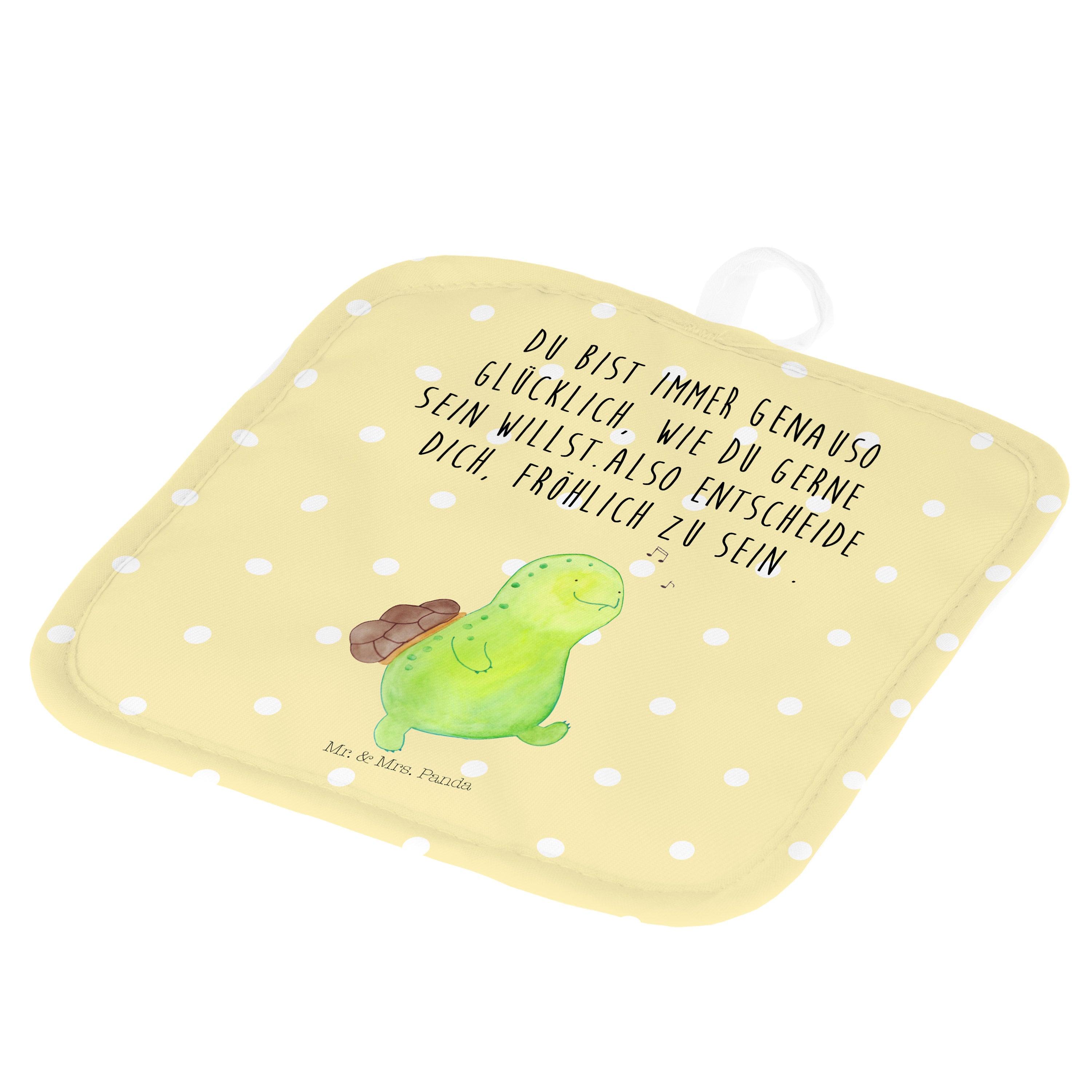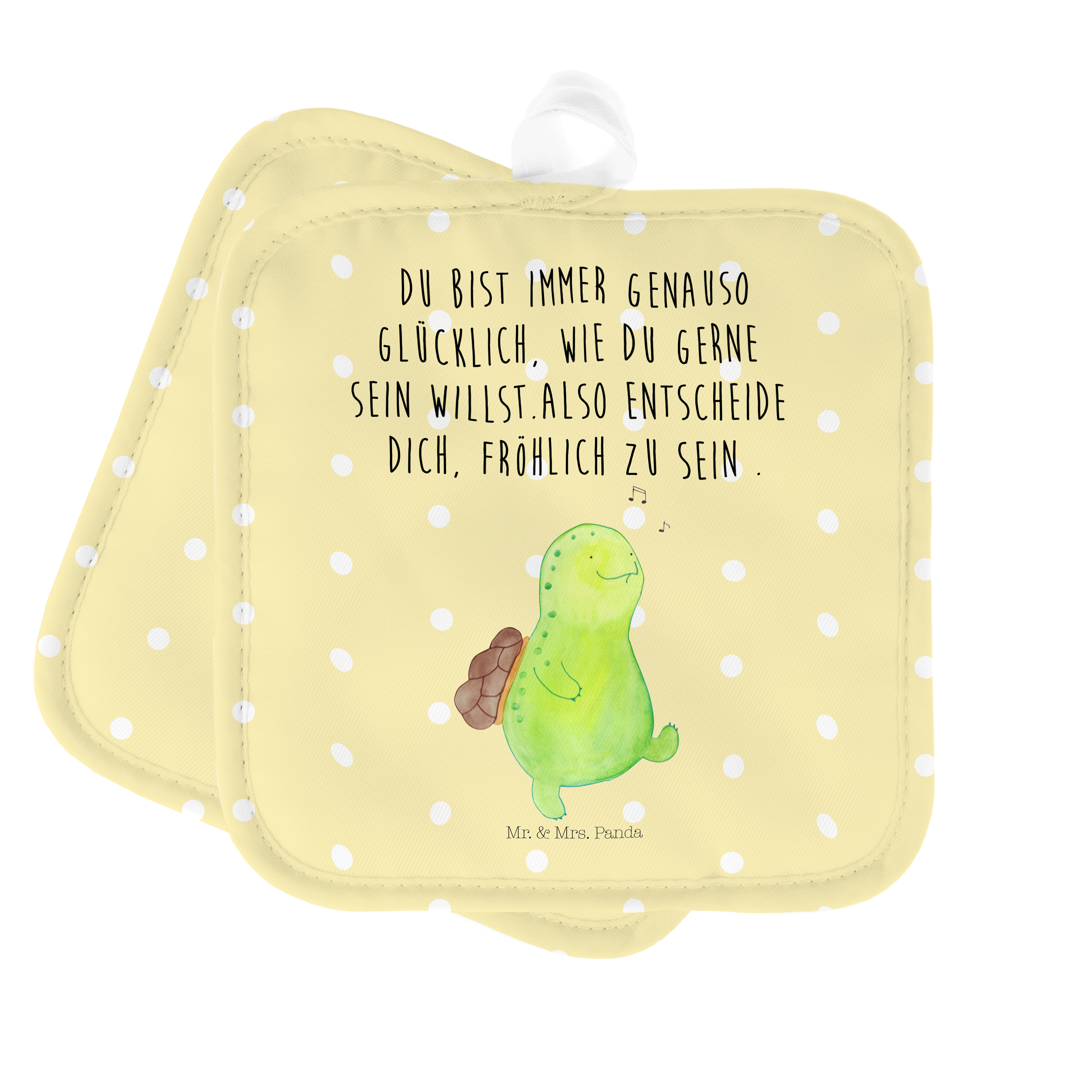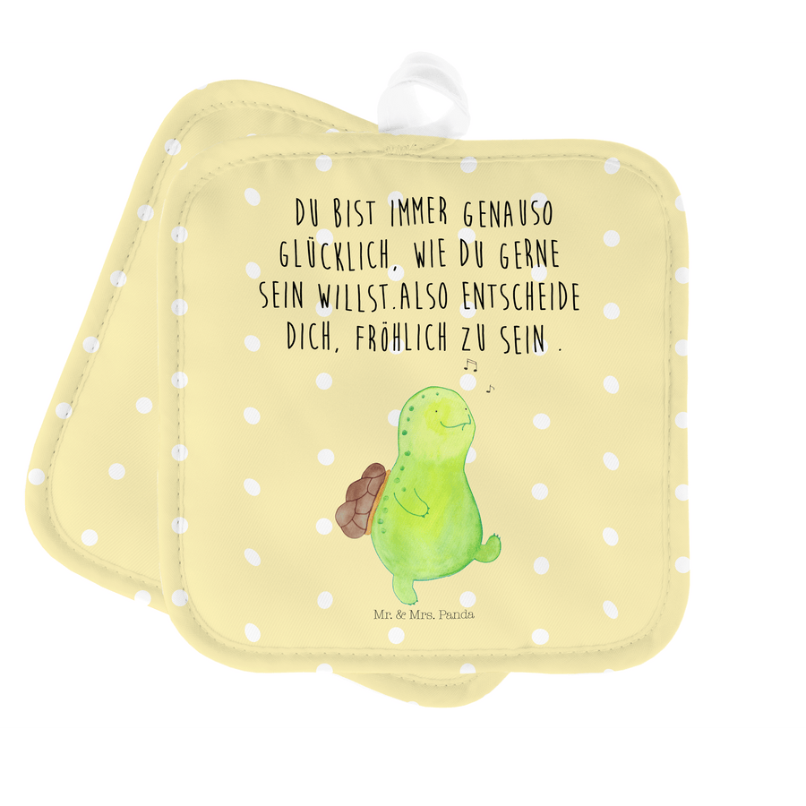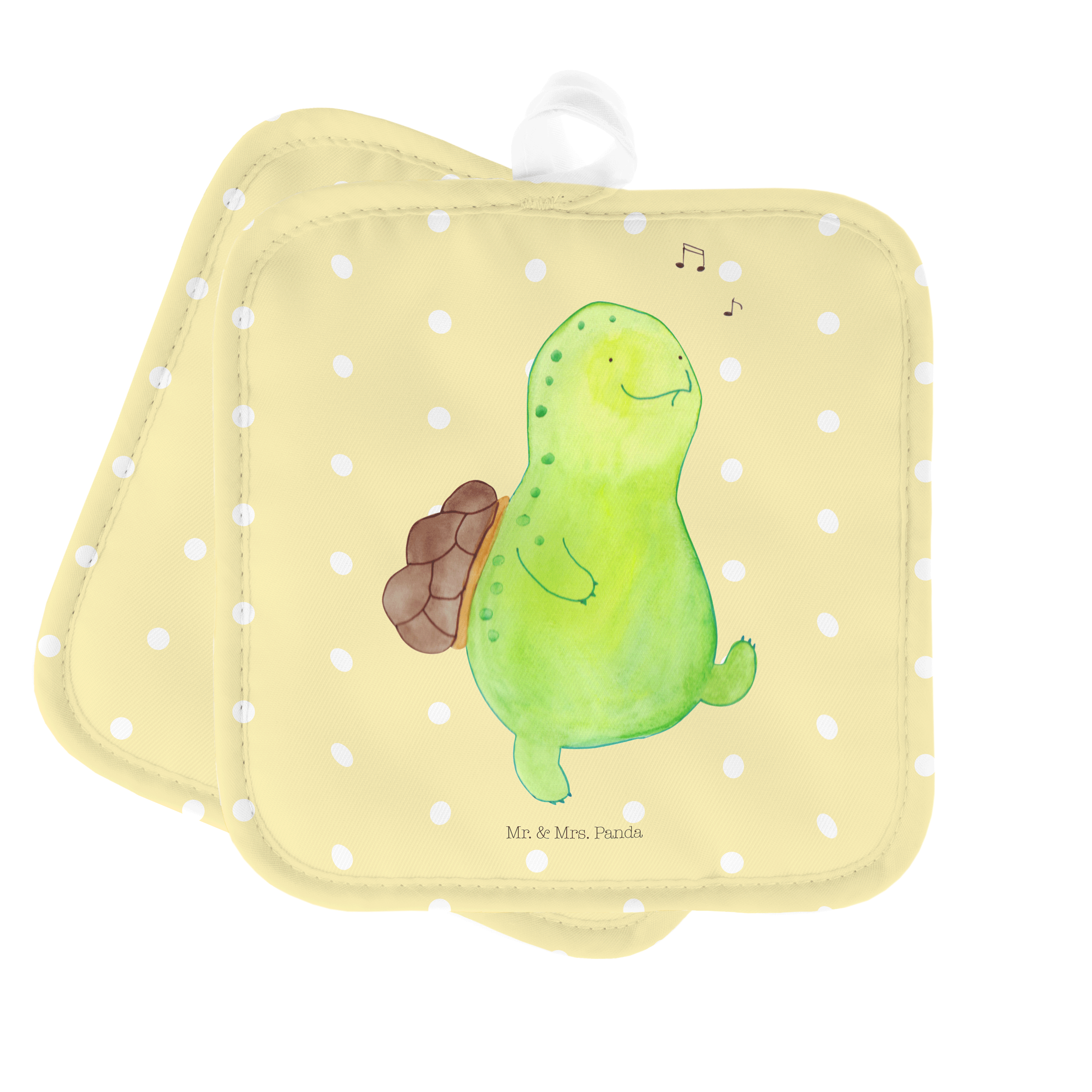 2er Set Topflappen Schildkröte pfeift - mit Spruch - Gelb Pastell
