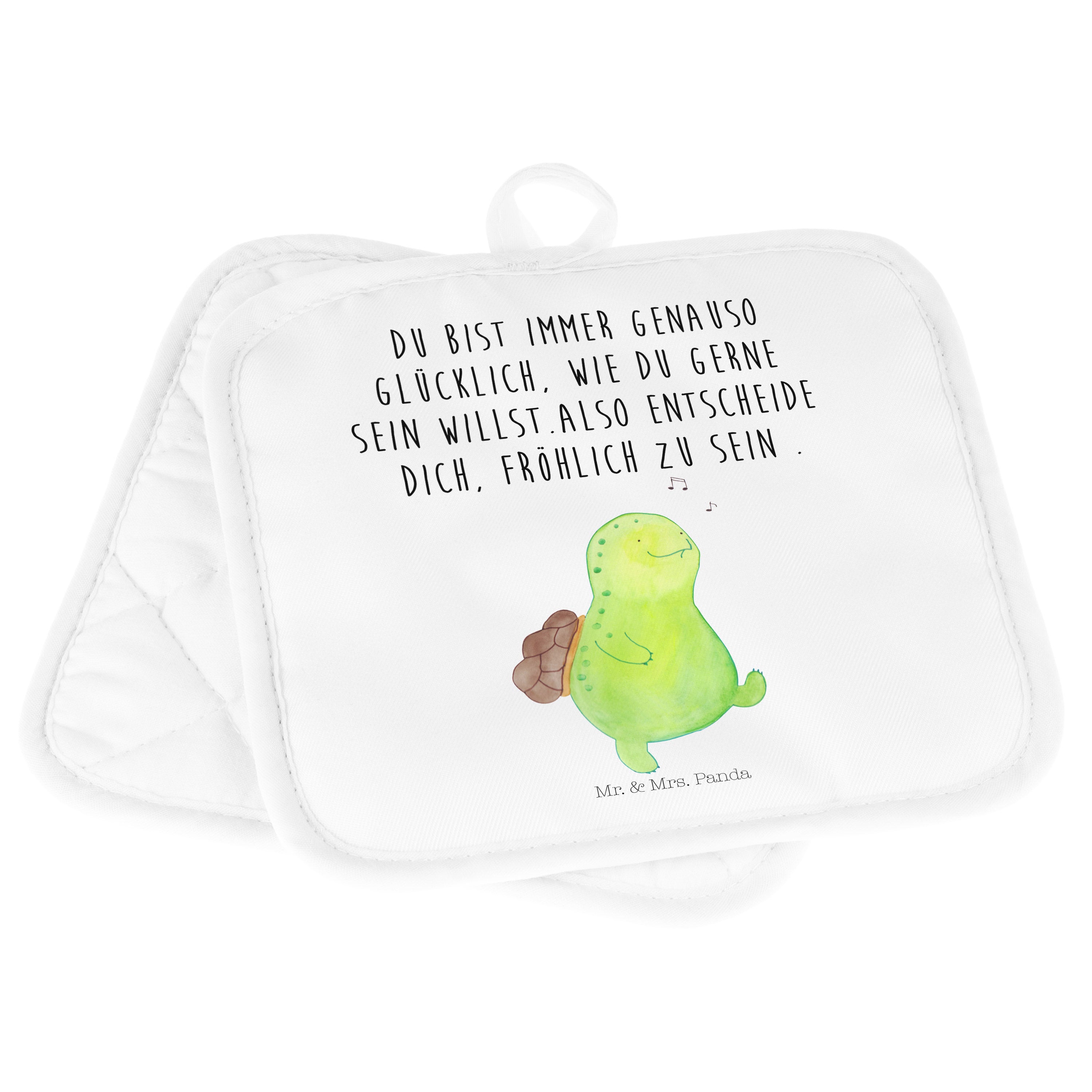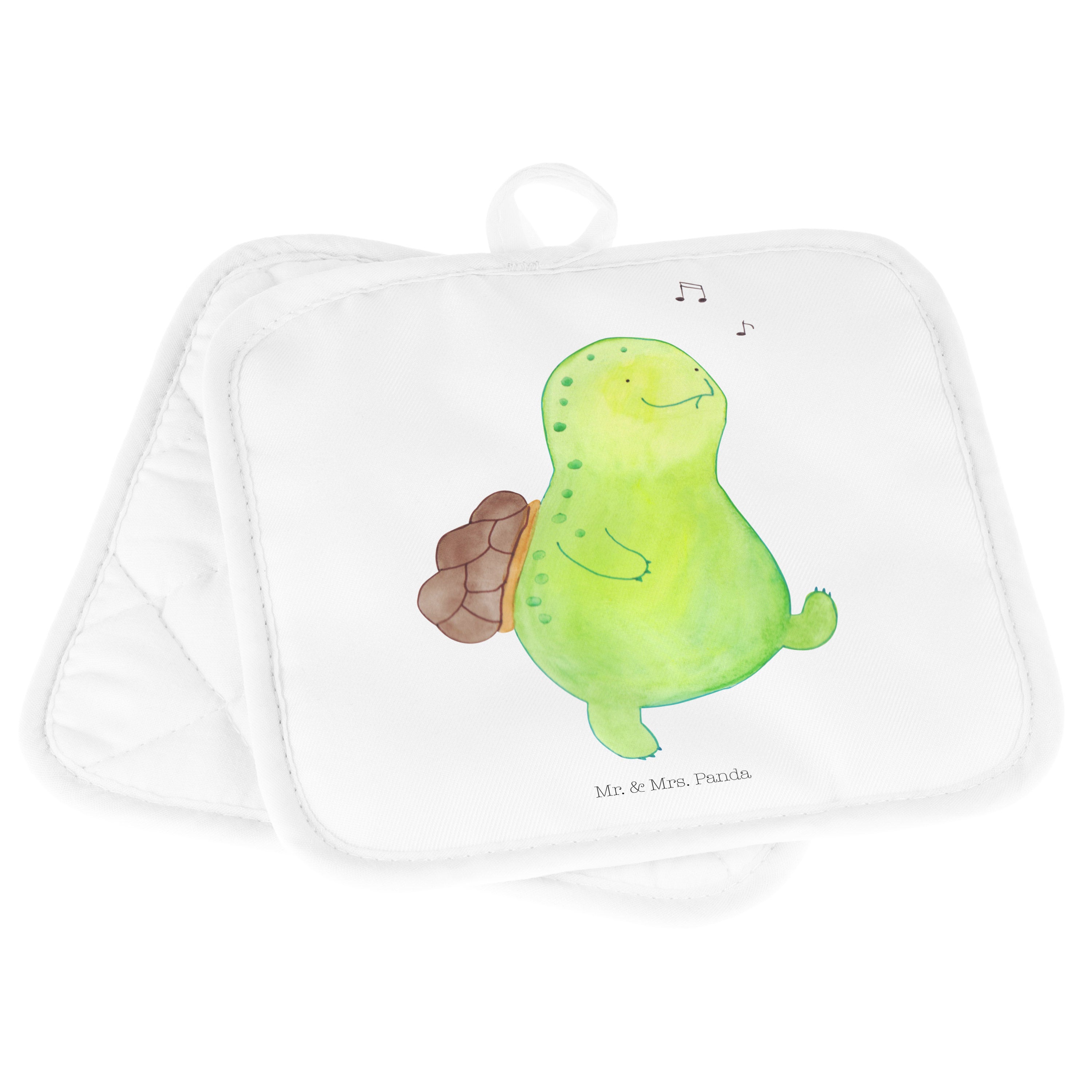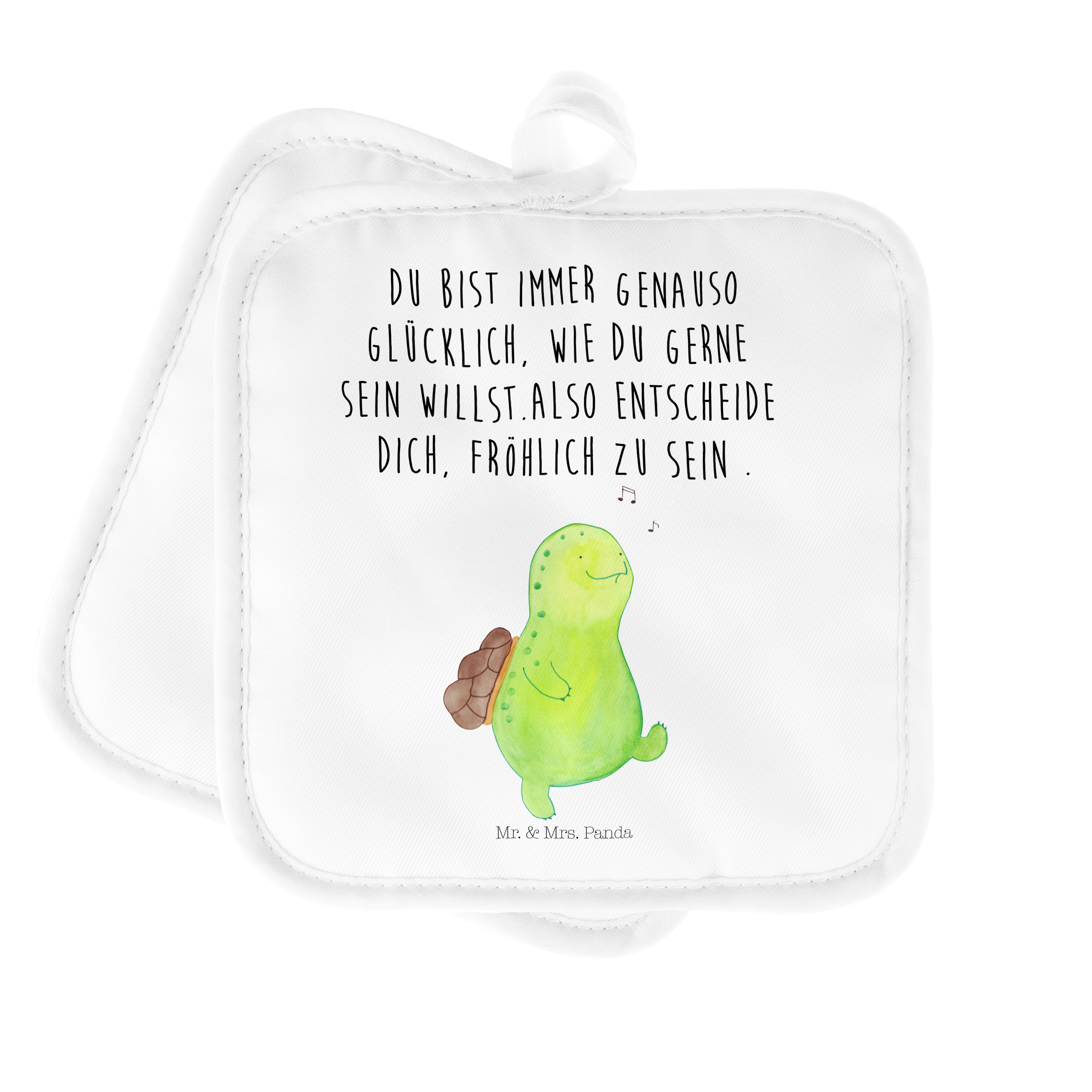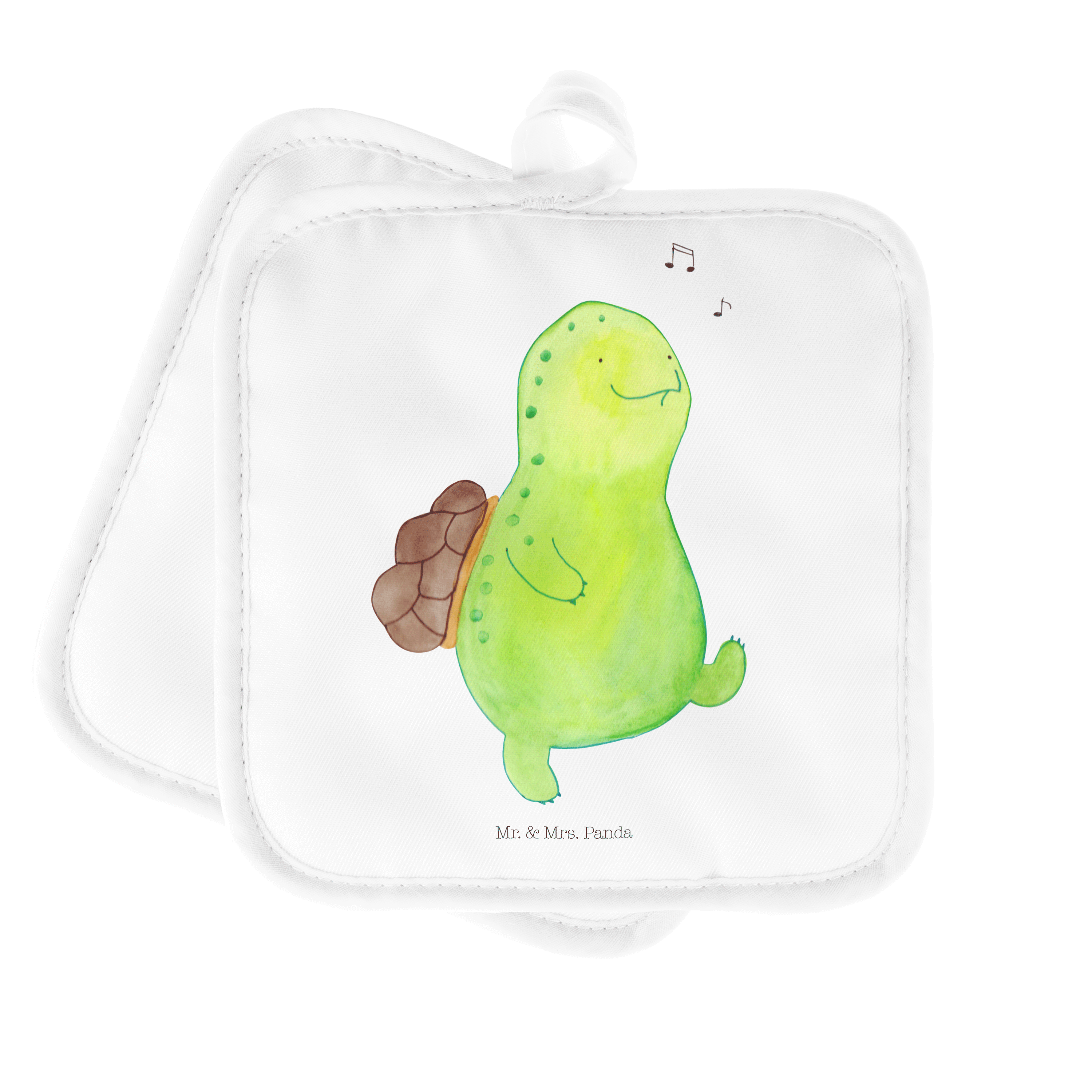 2er Set Topflappen Schildkröte pfeift - mit Spruch - Gelb Pastell