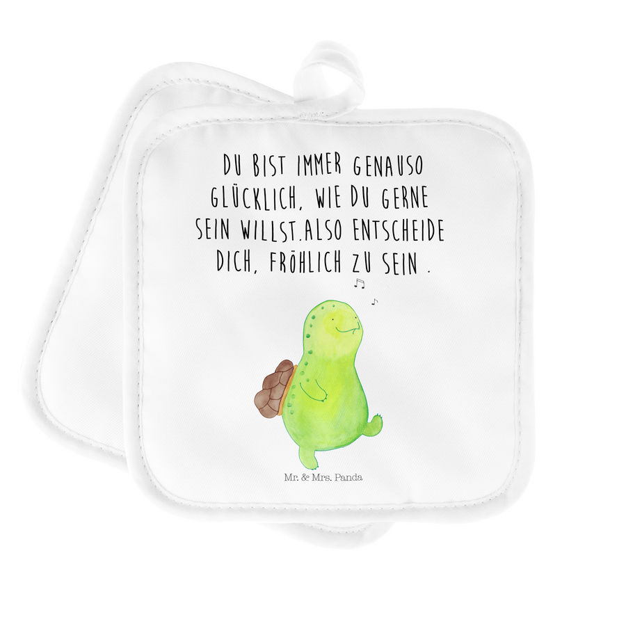 2er Set Topflappen Schildkröte pfeift - mit Spruch - Weiß