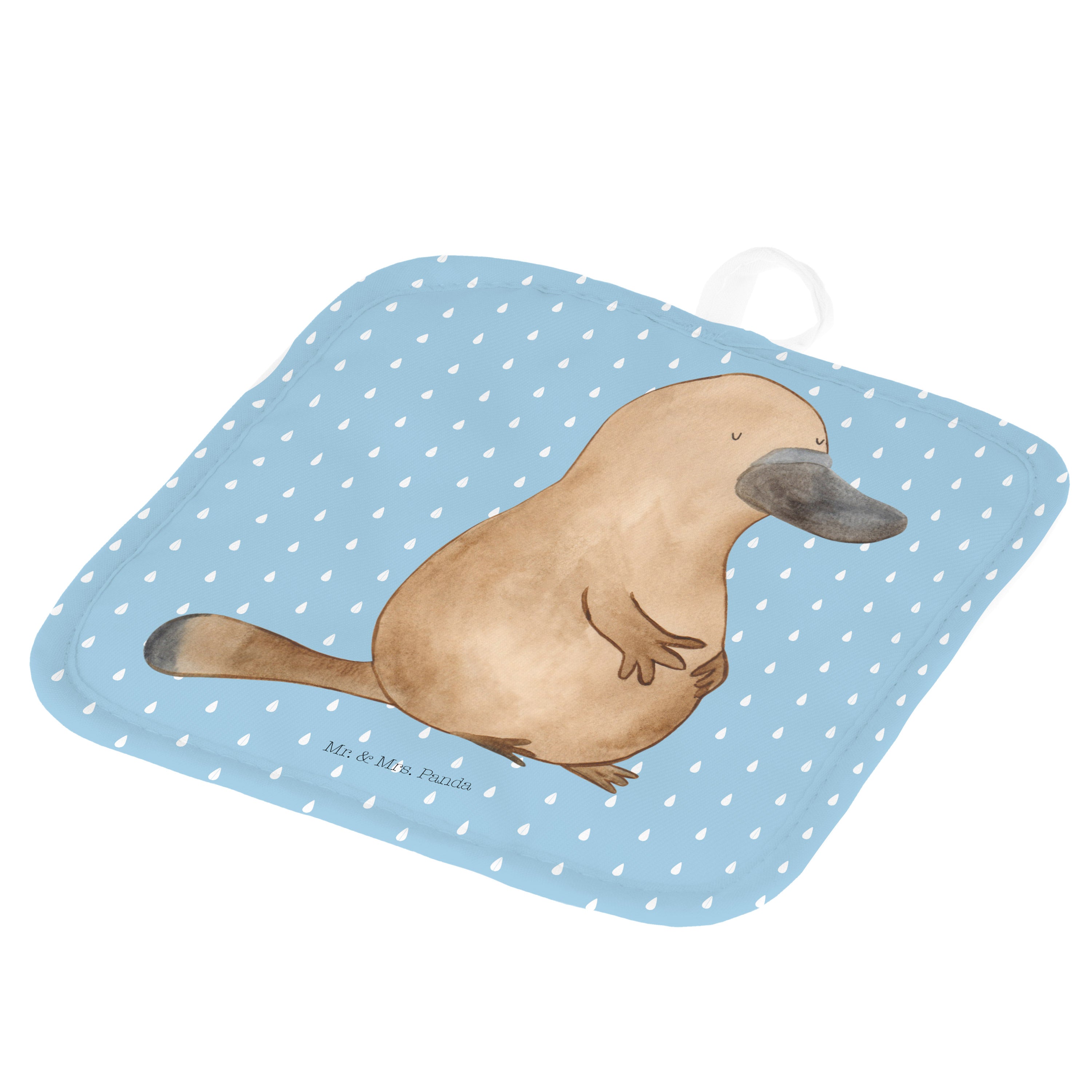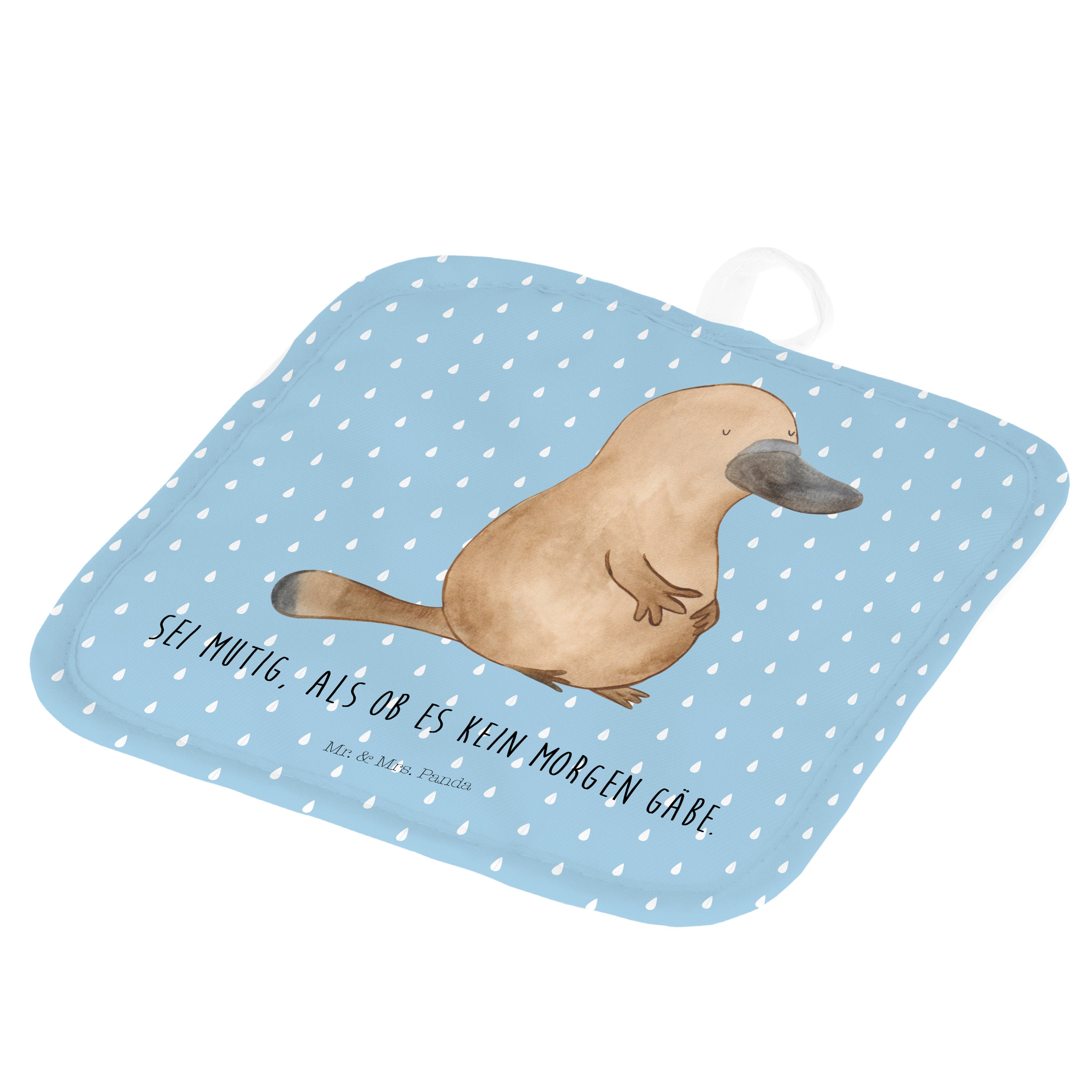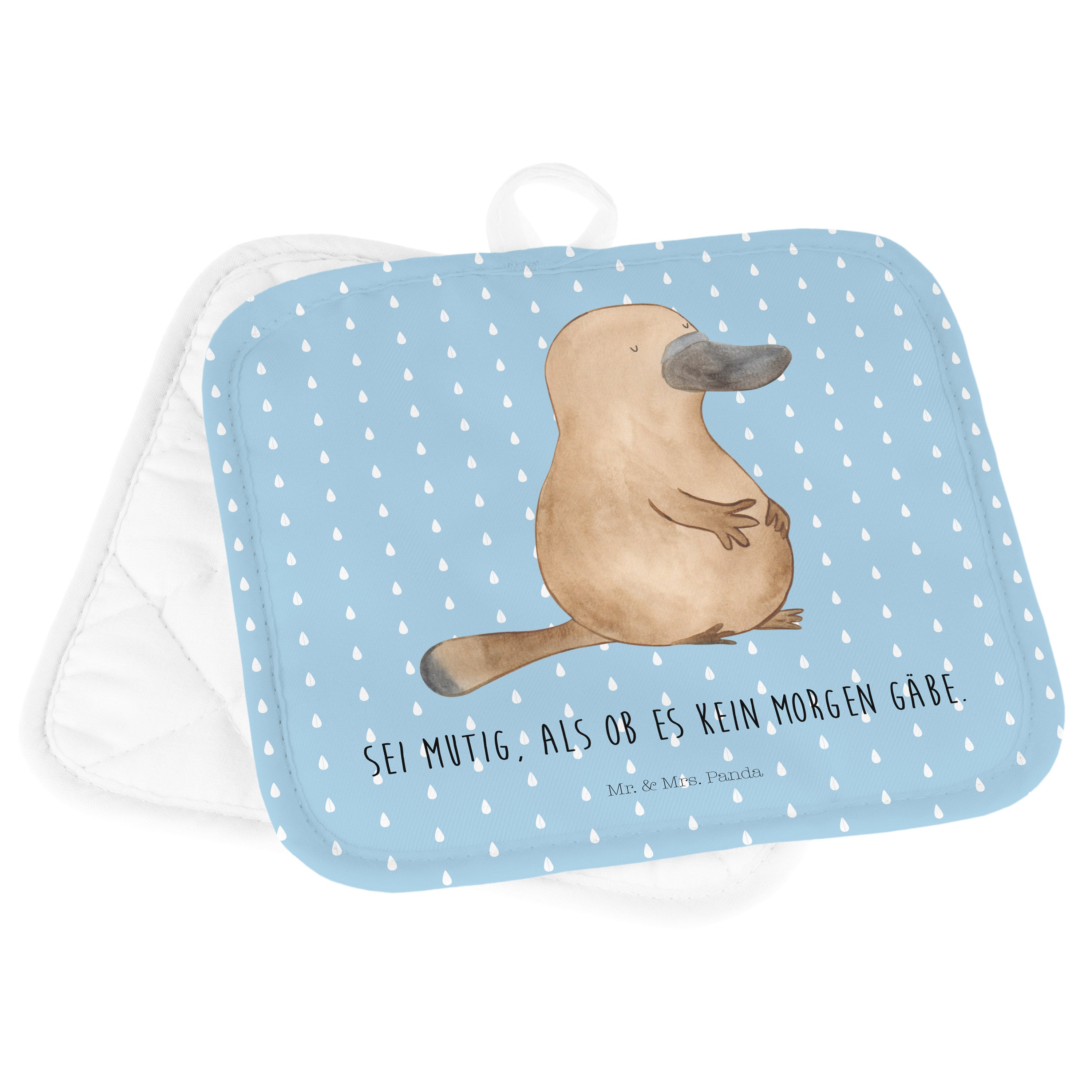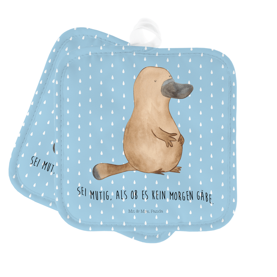 2er Set Topflappen Schnabeltier mutig - mit Spruch - Blau Pastell