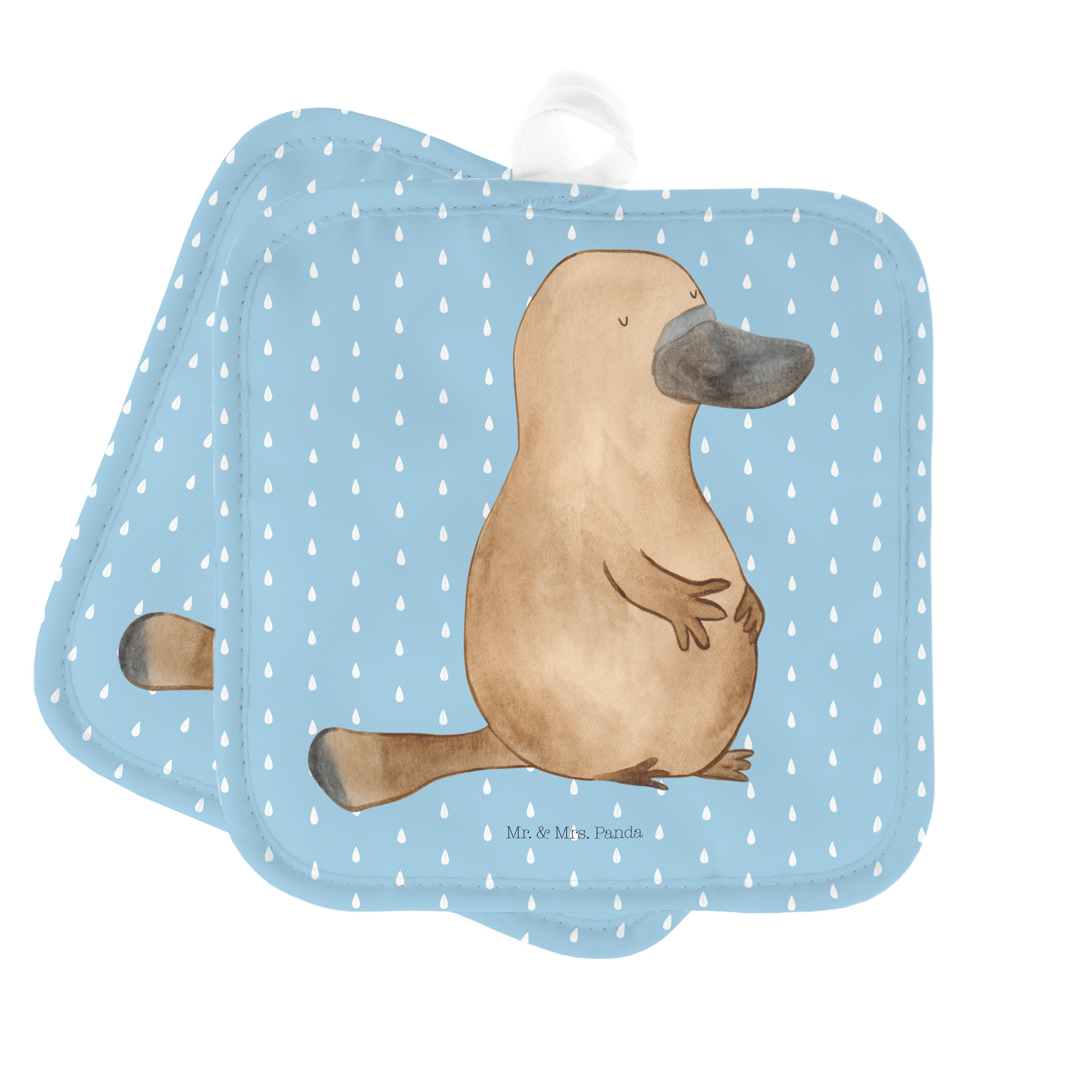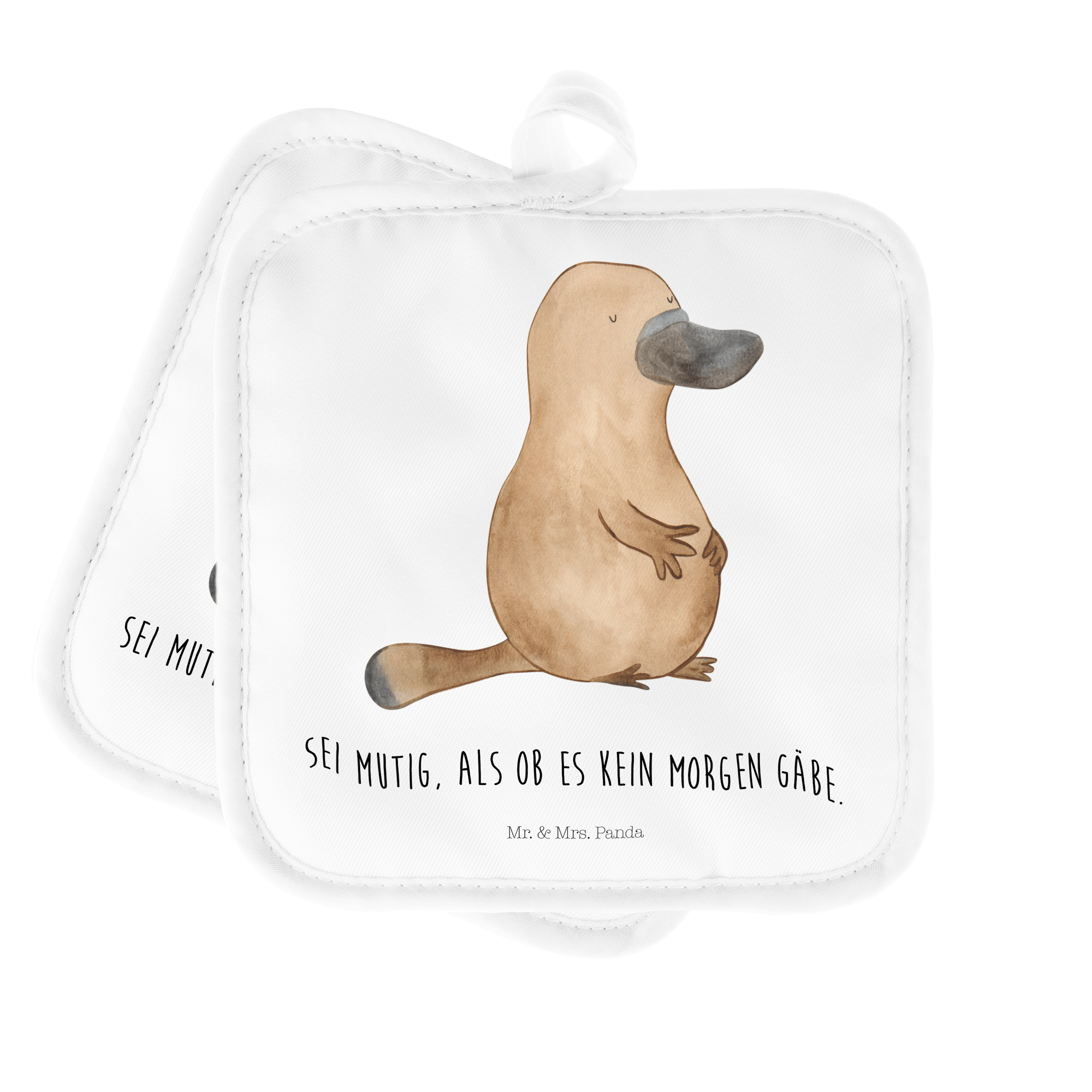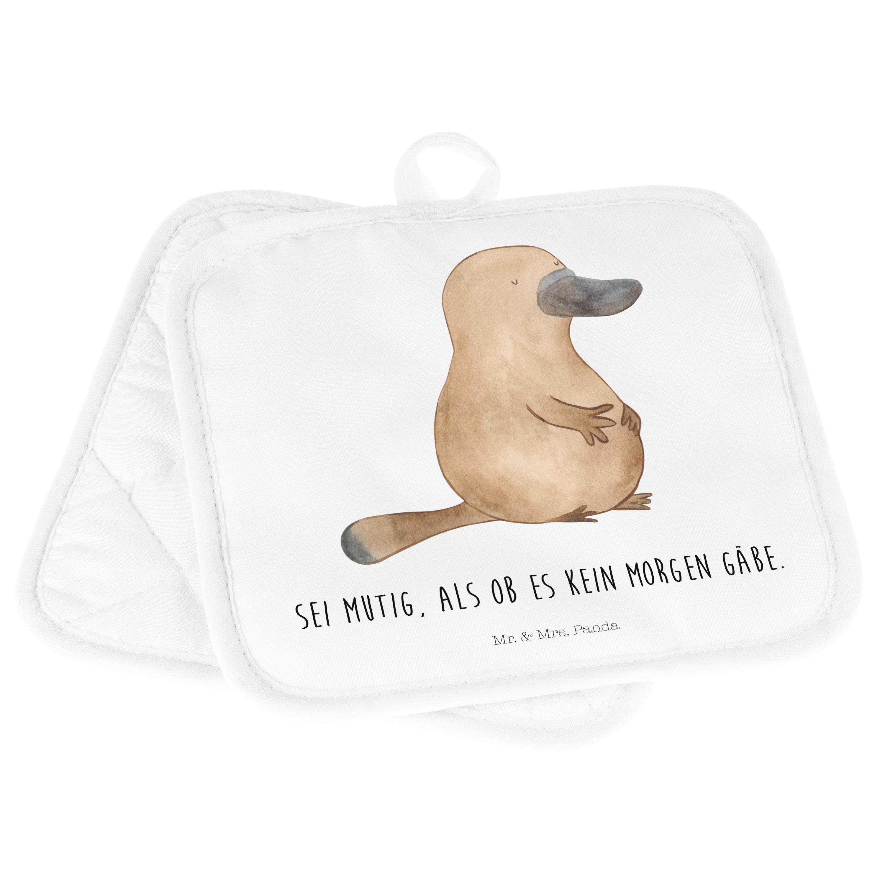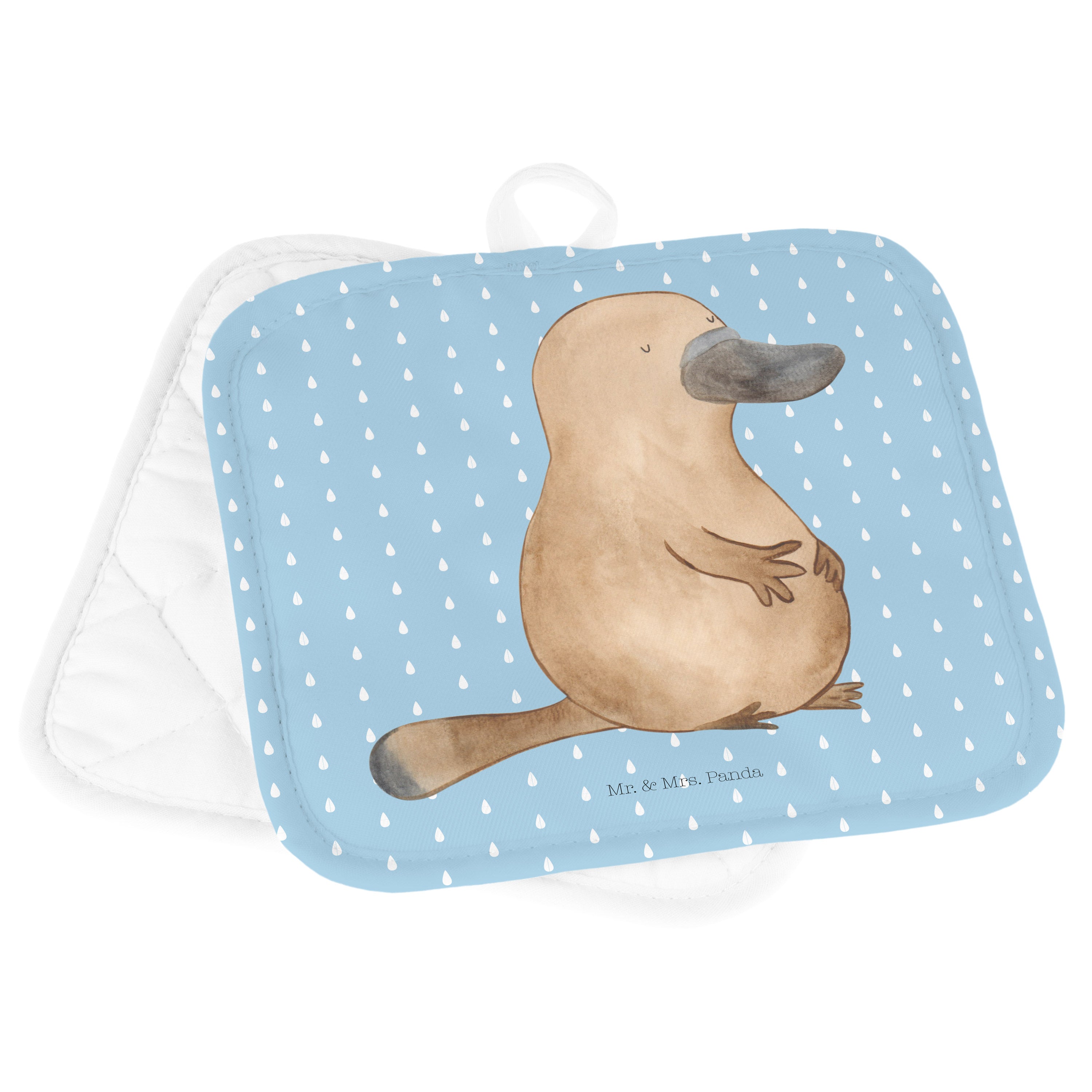 2er Set Topflappen Schnabeltier mutig - mit Spruch - Blau Pastell