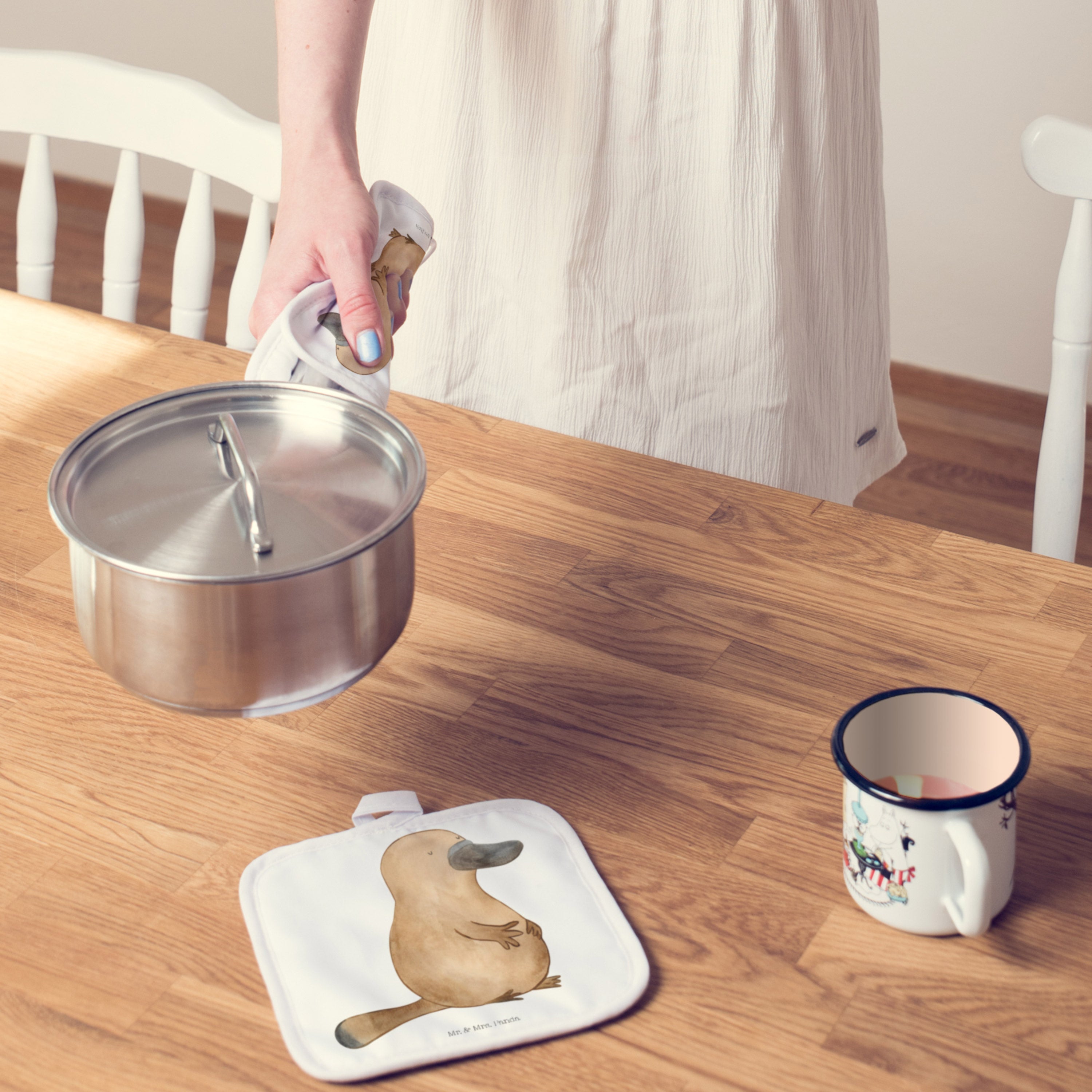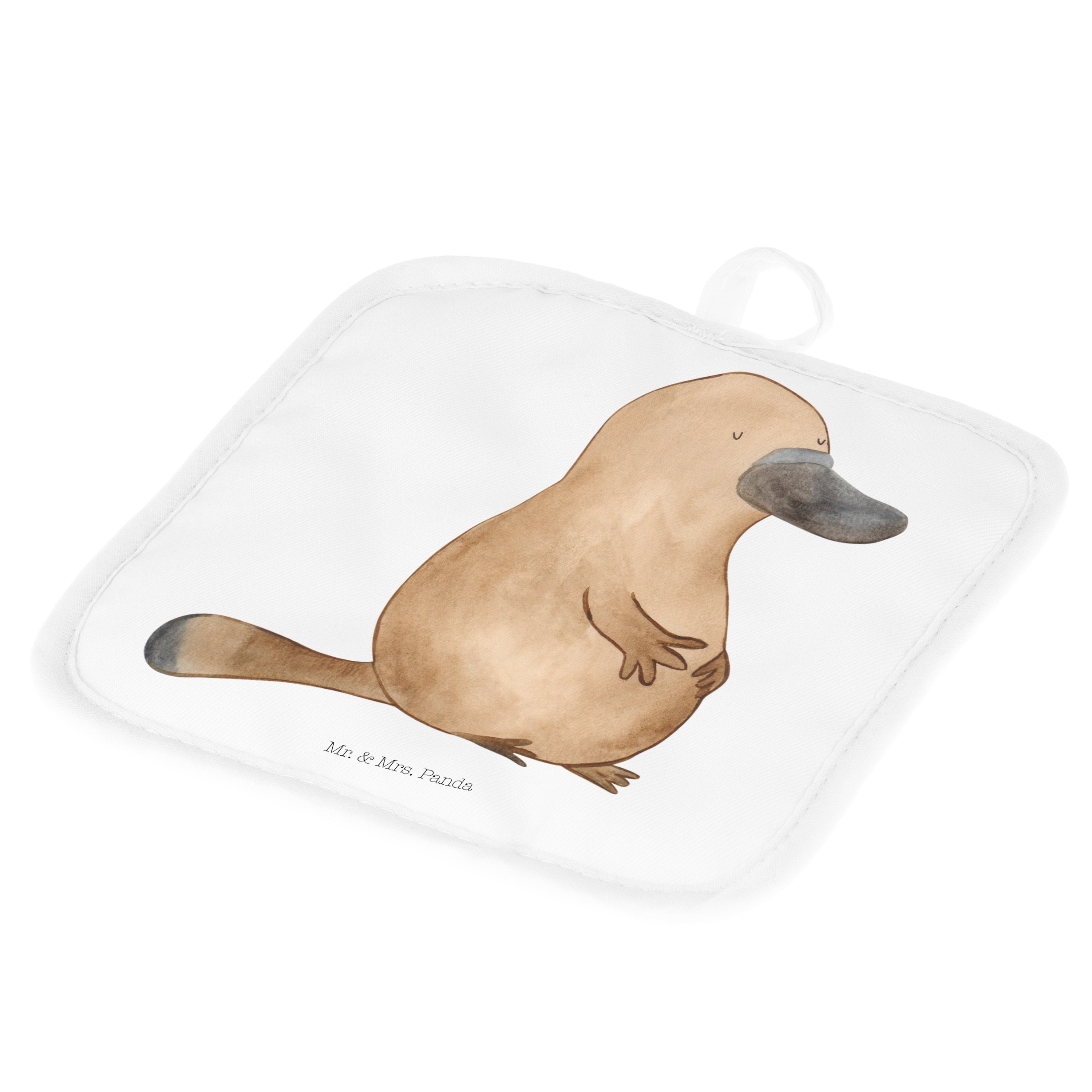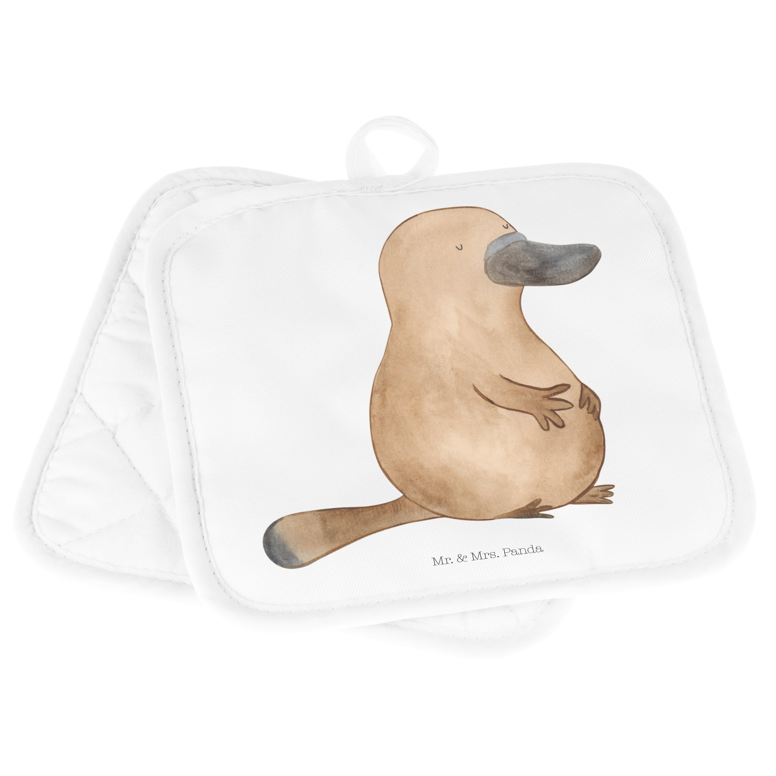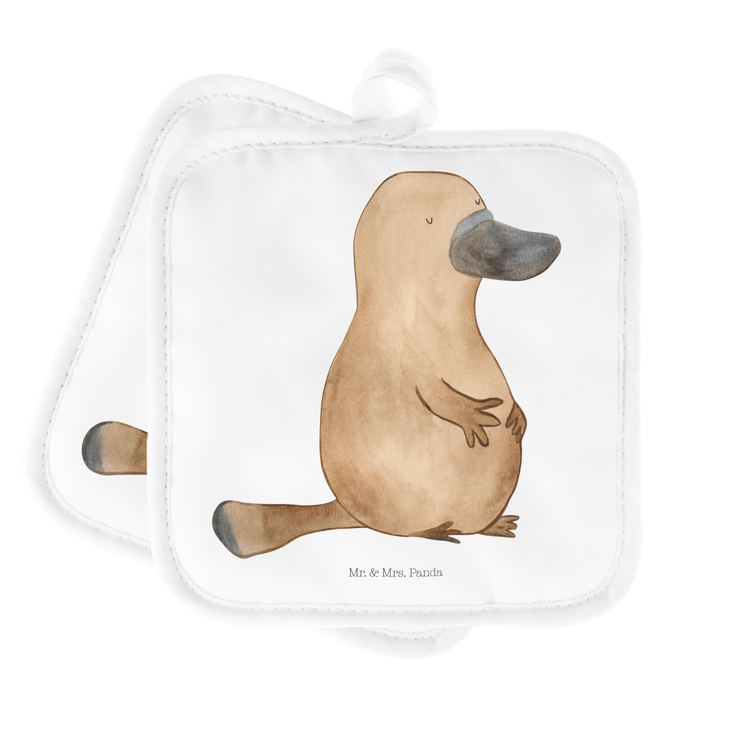 2er Set Topflappen Schnabeltier mutig - mit Spruch - Blau Pastell