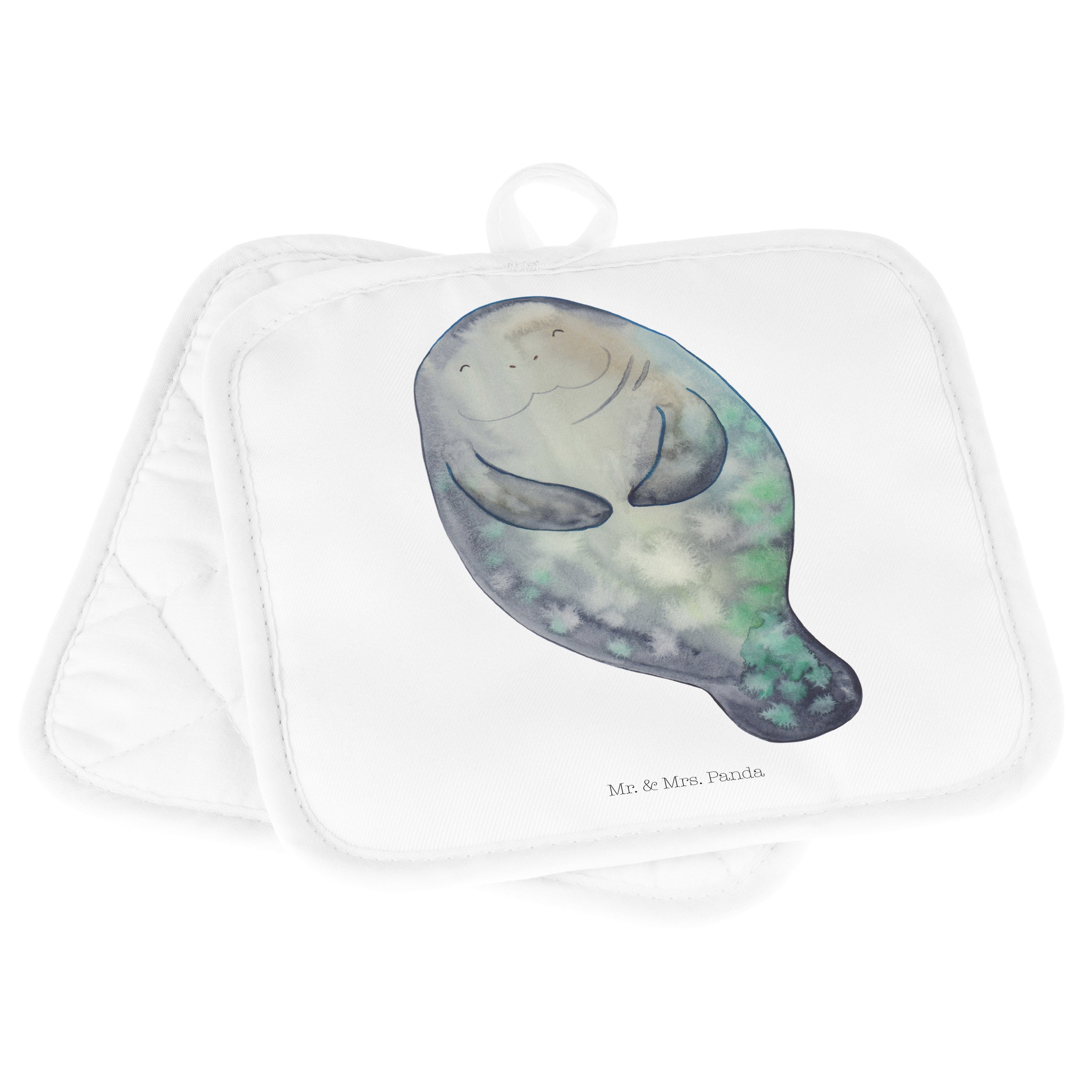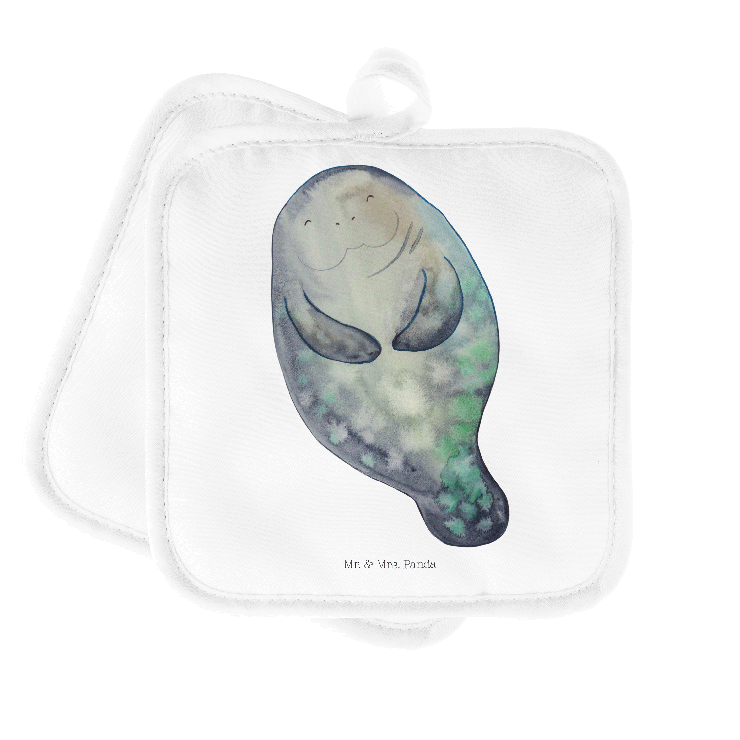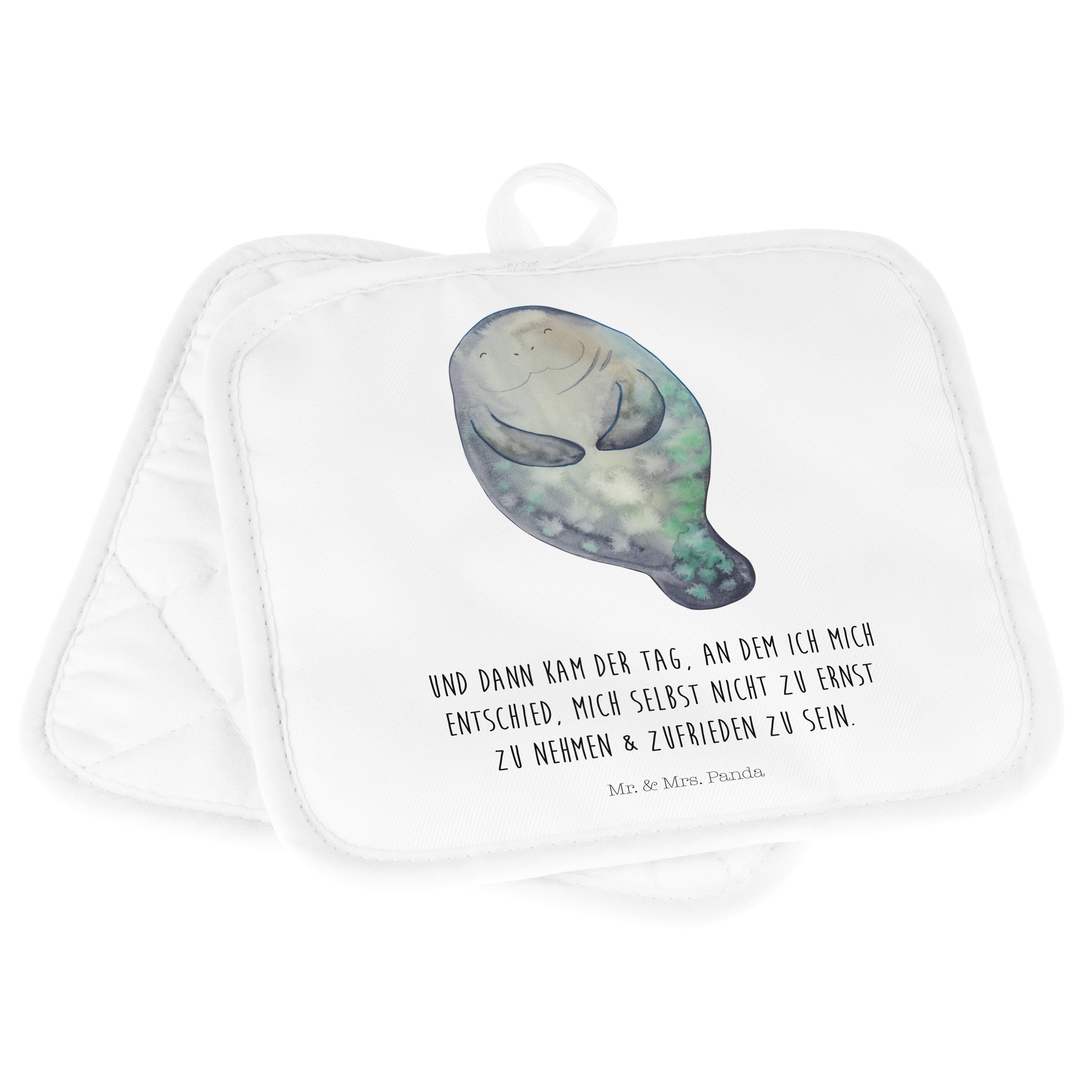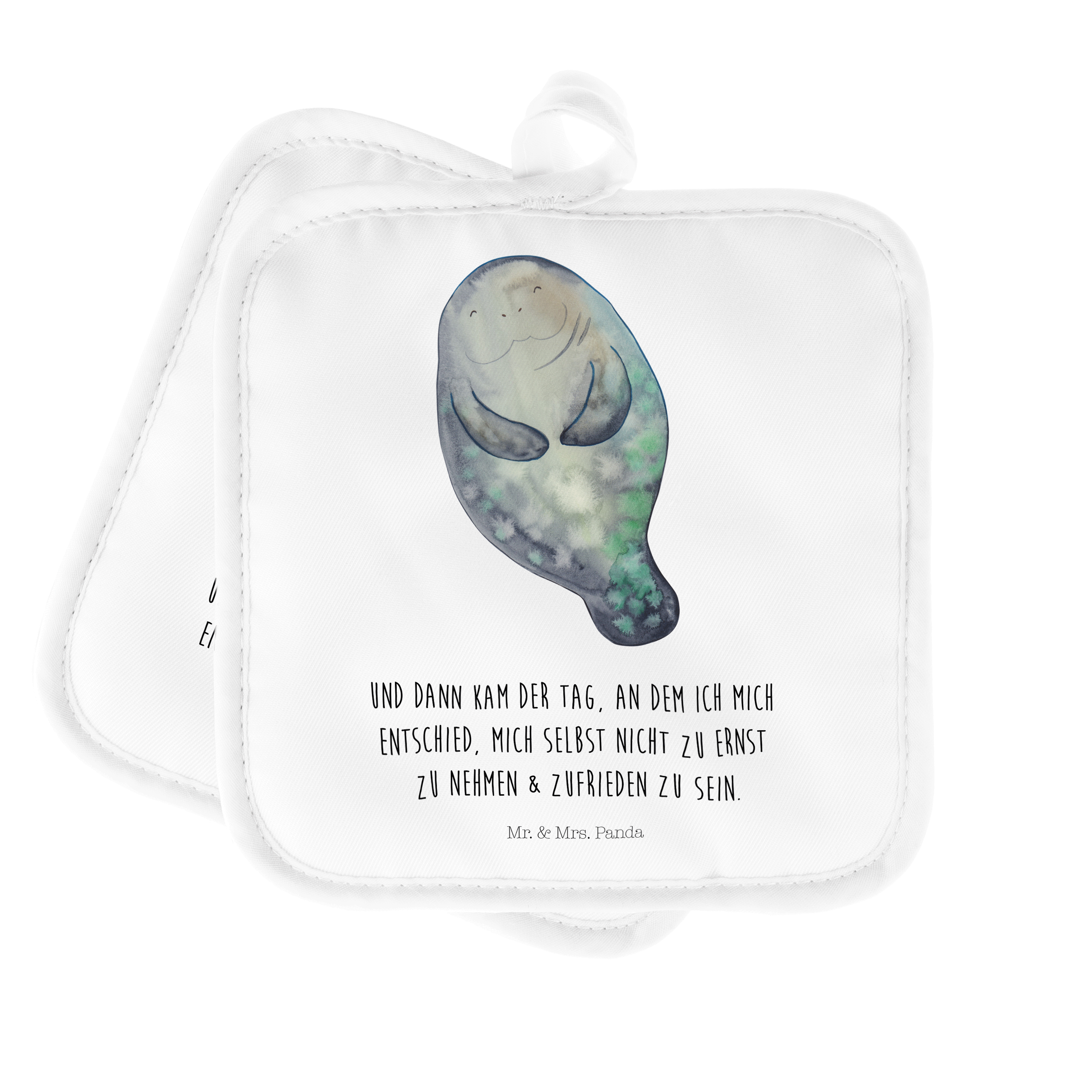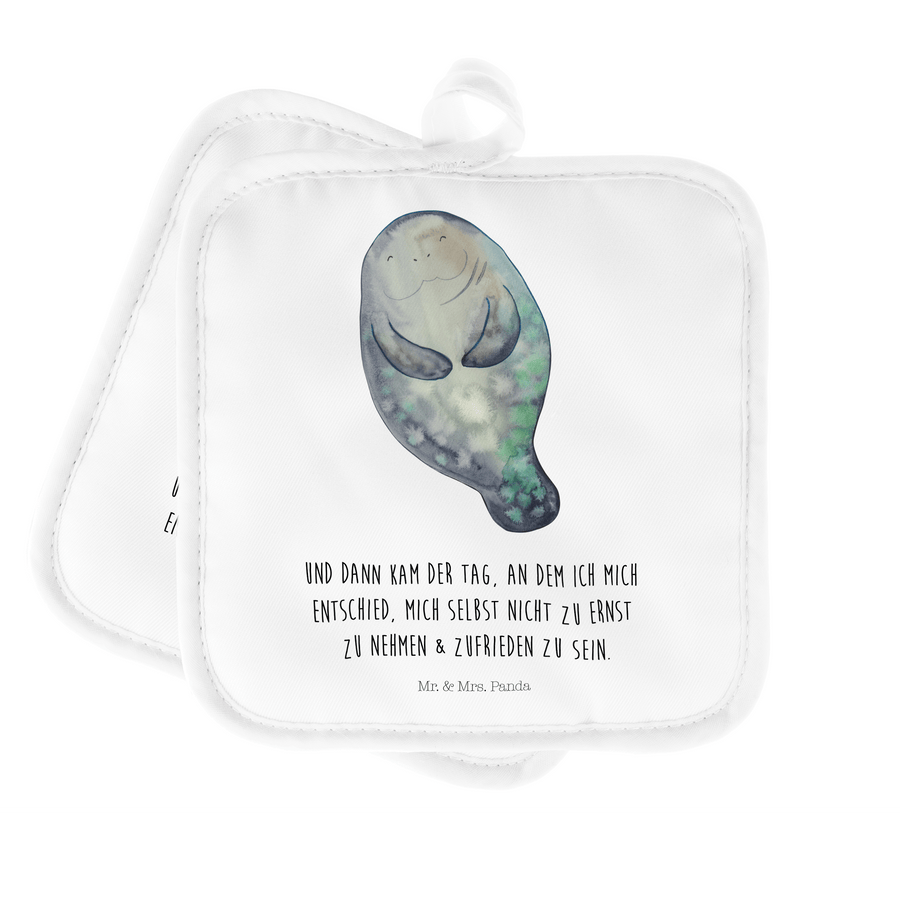 2er Set Topflappen Seekuh happy - mit Spruch - Weiß