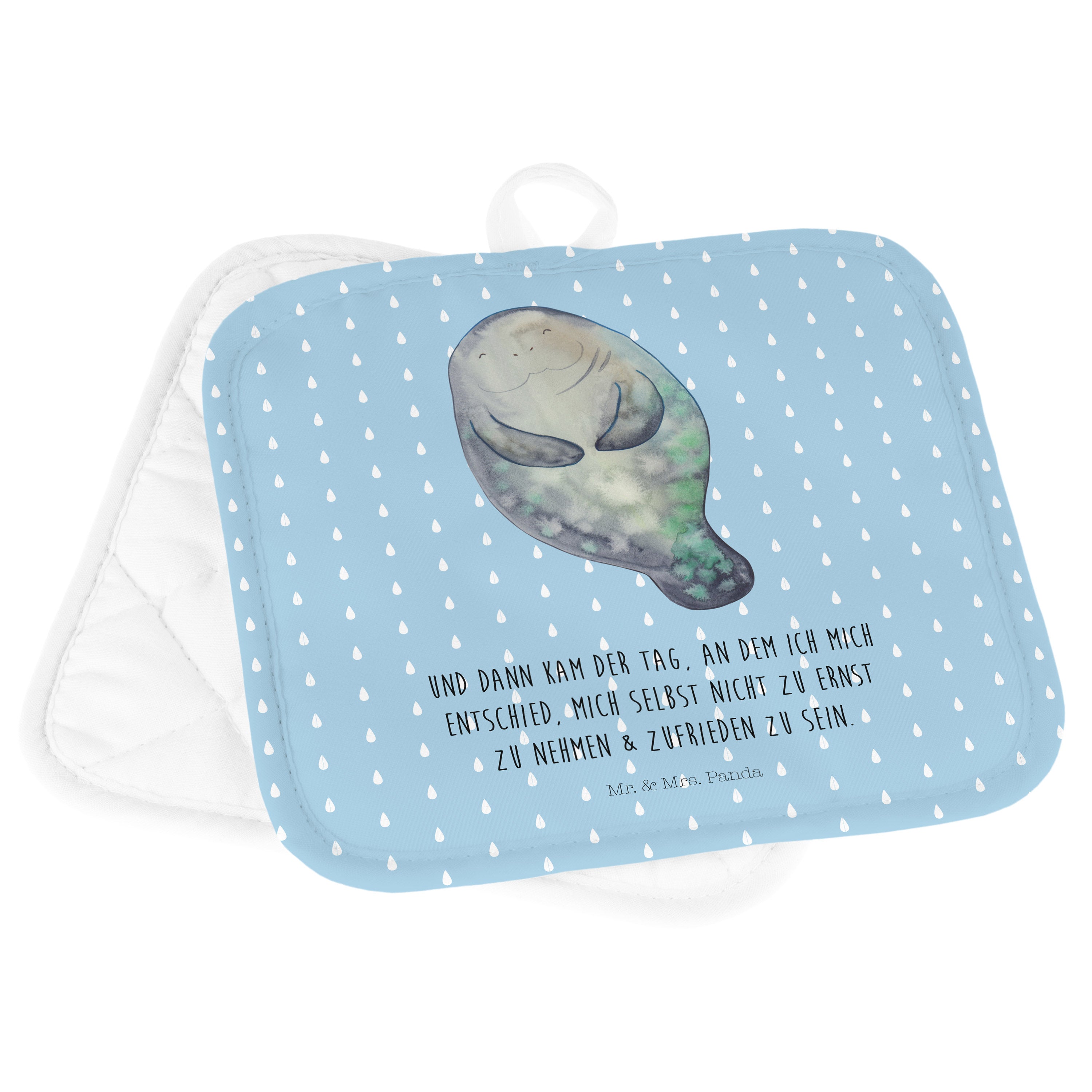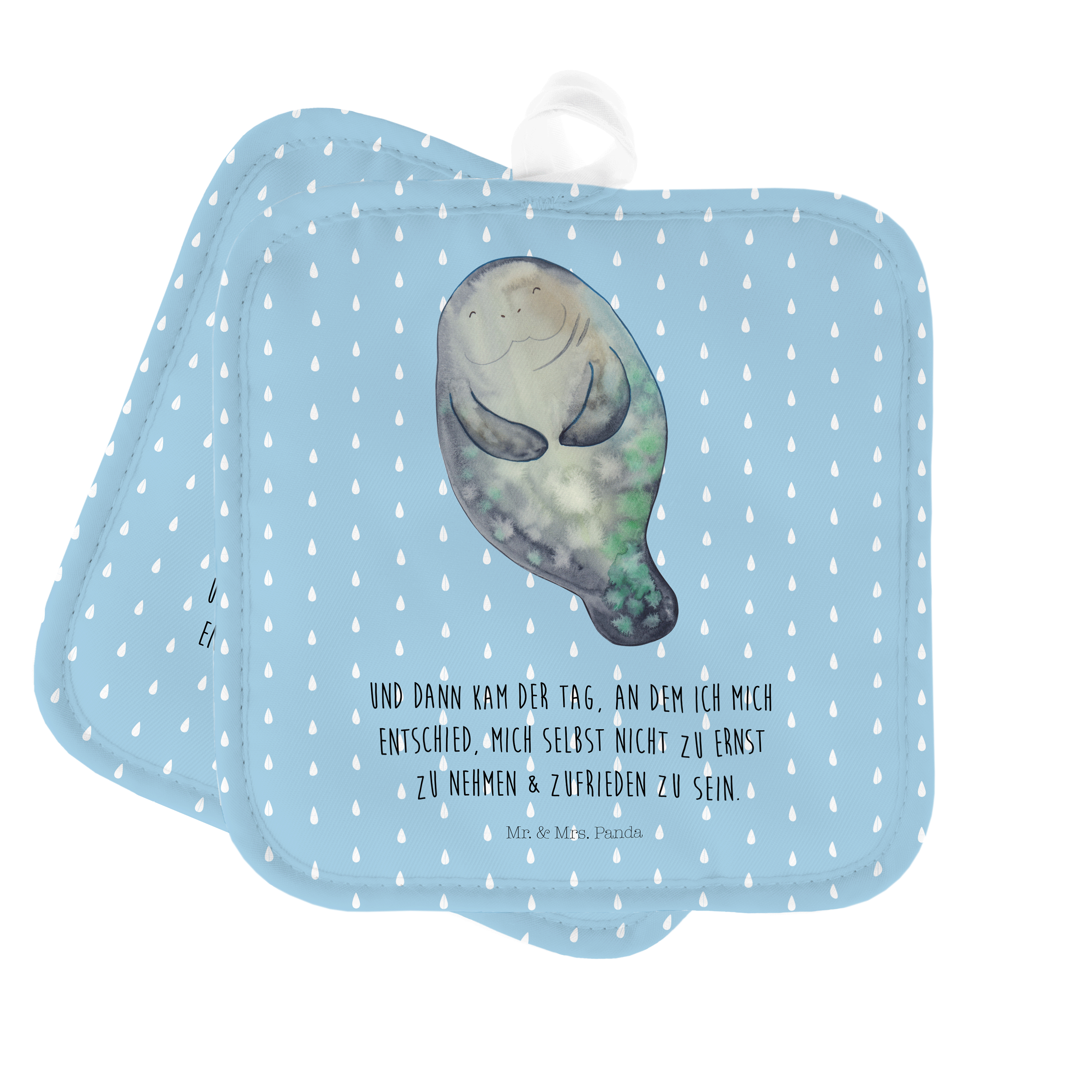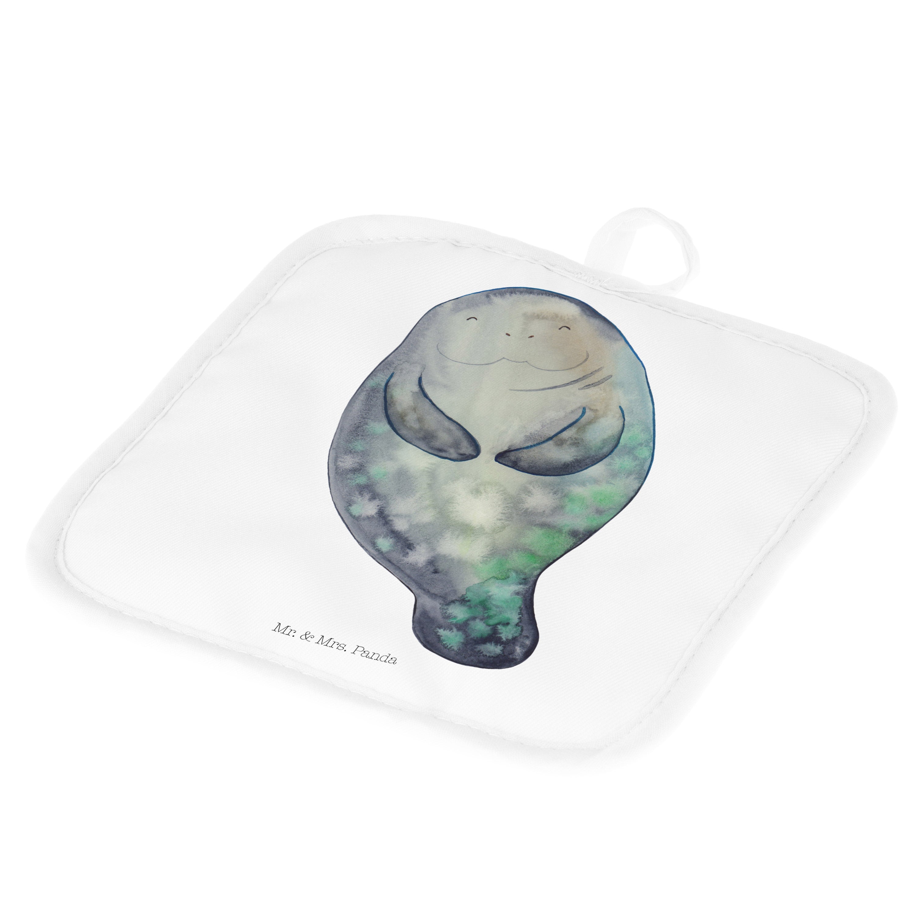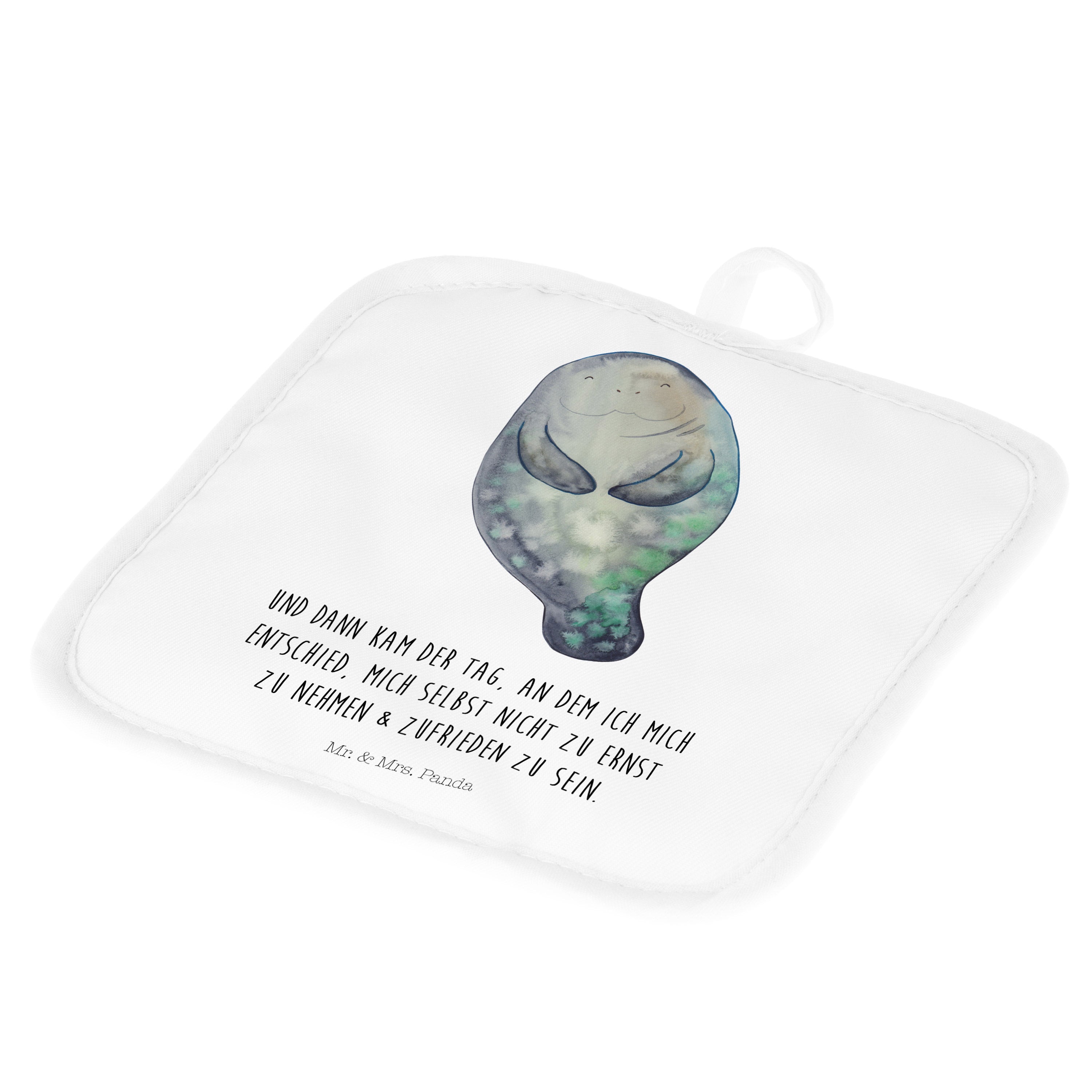 2er Set Topflappen Seekuh happy - mit Spruch - Weiß