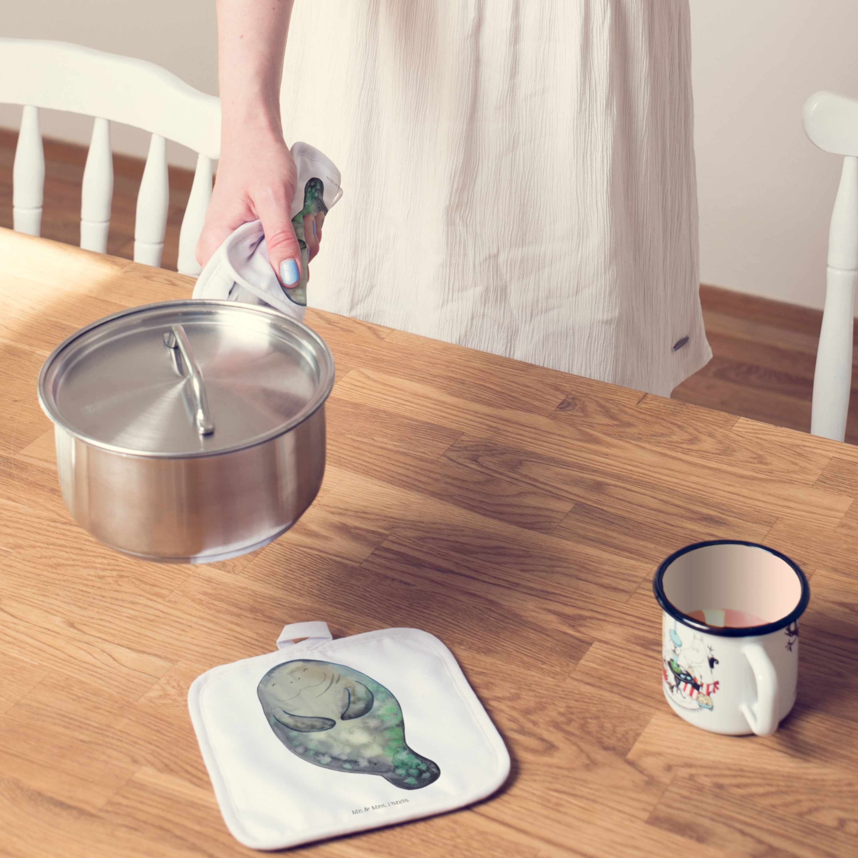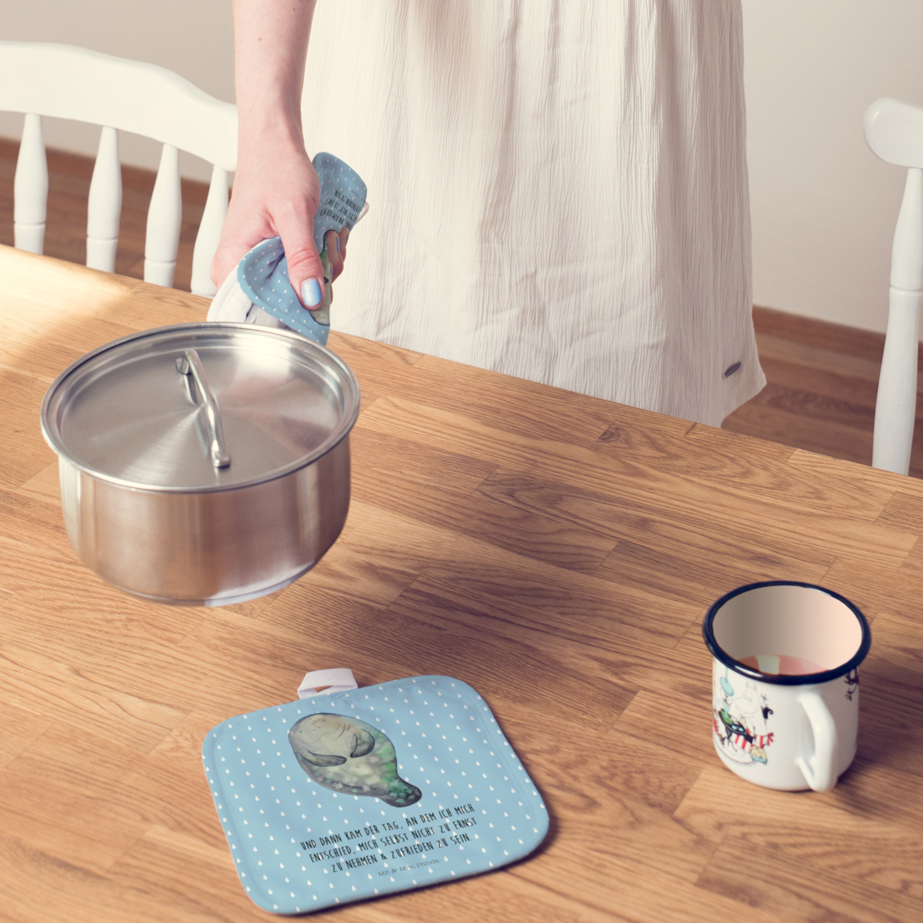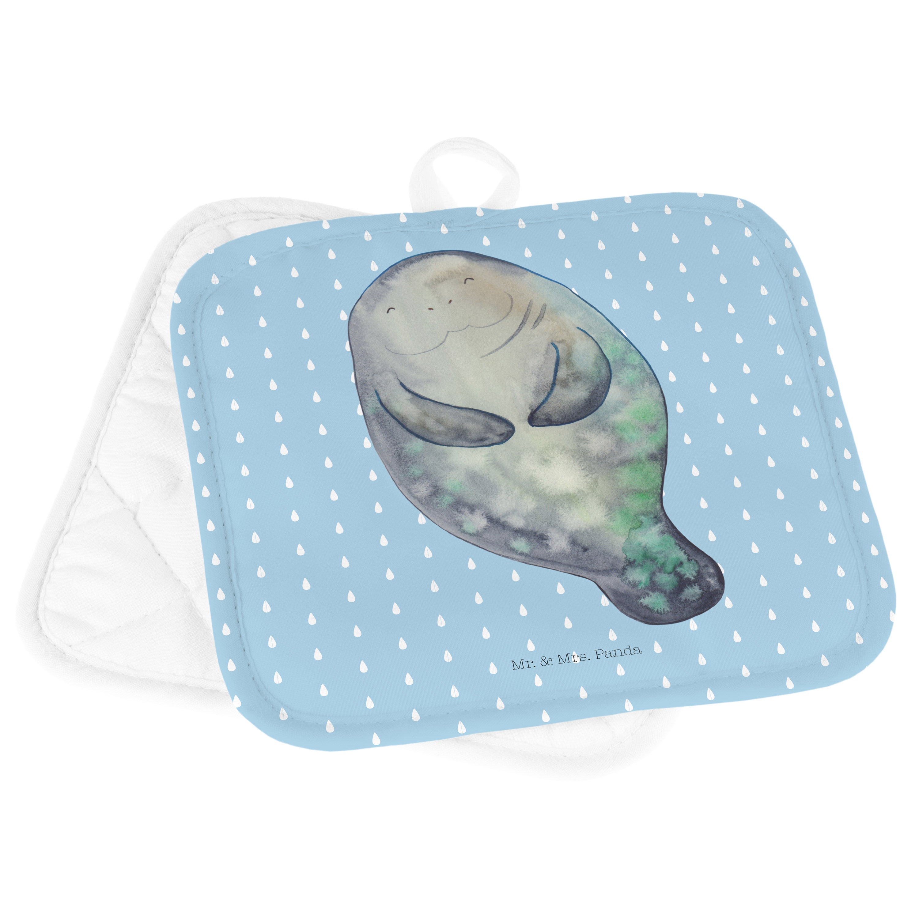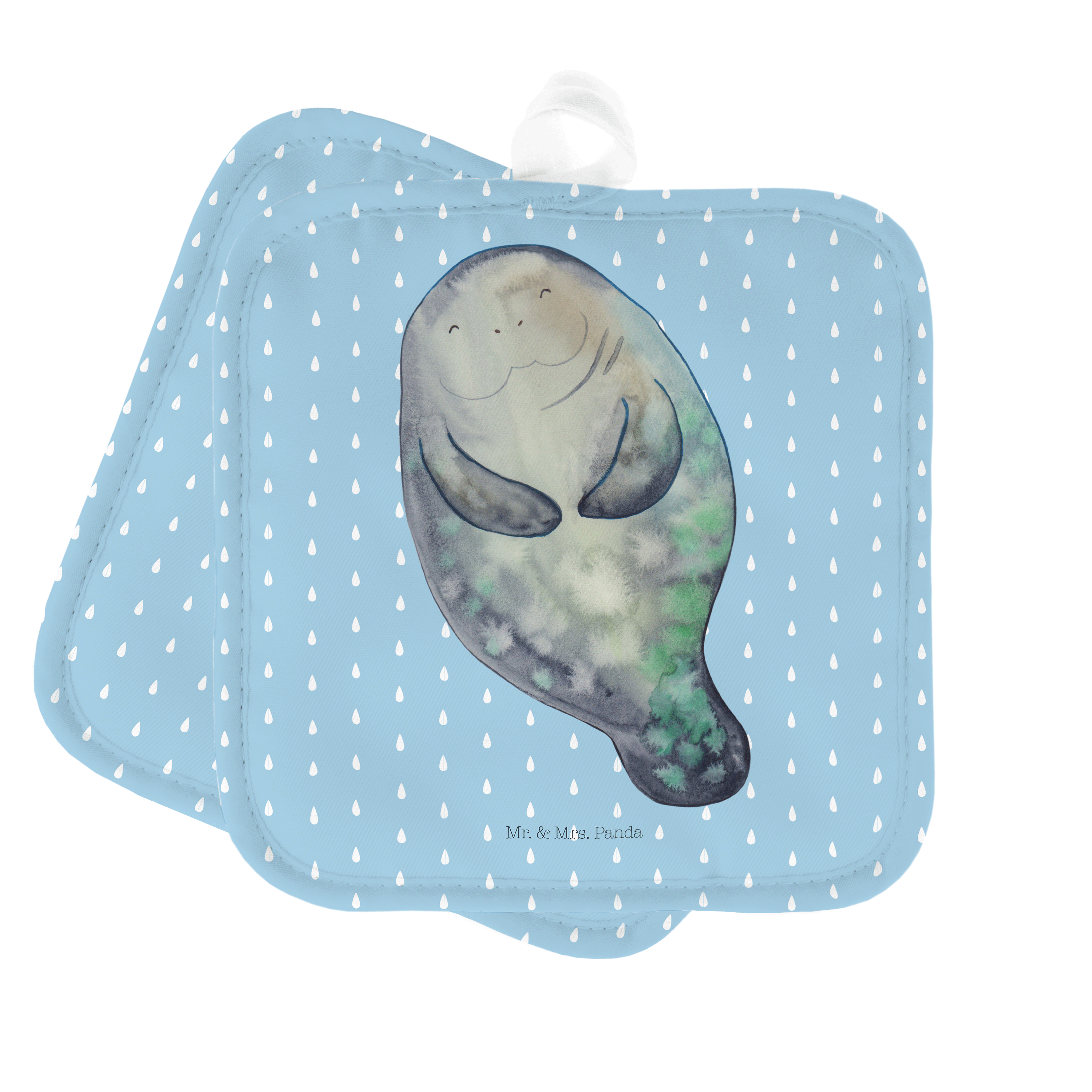 2er Set Topflappen Seekuh happy - mit Spruch - Weiß