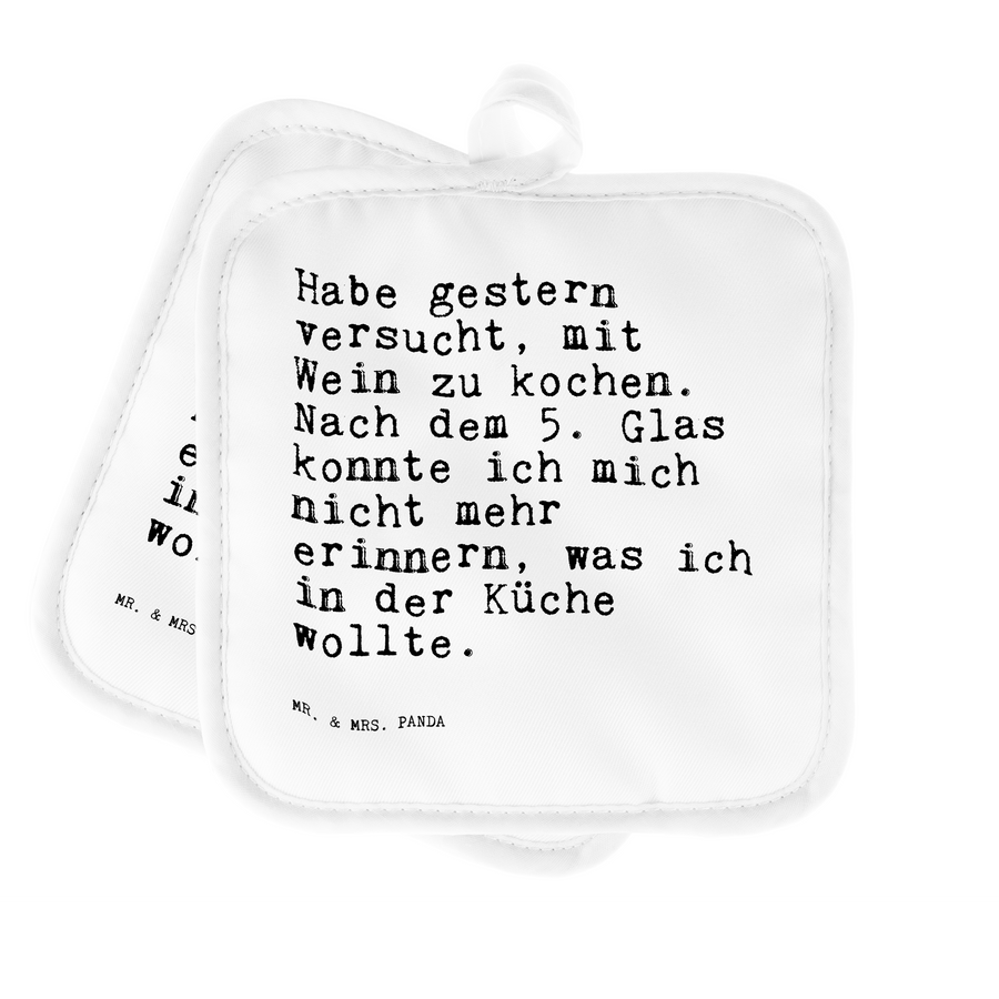 2er Set Topflappen Sprüche und Zitate Habe gestern versucht, mit Wein zu kochen. Nach dem 5. Glas konnte ich mich nicht mehr erinnern, was ich in der Küche wollte.