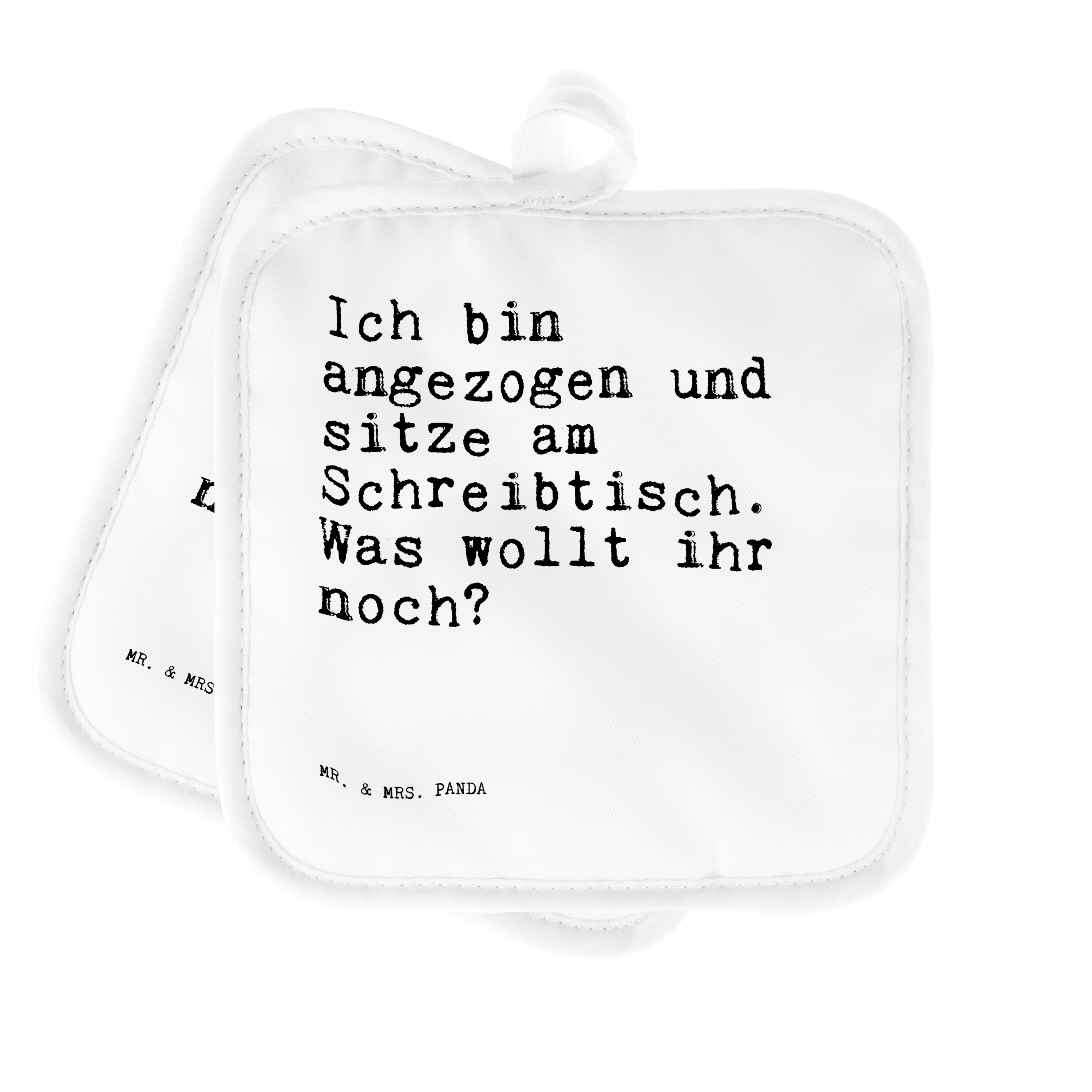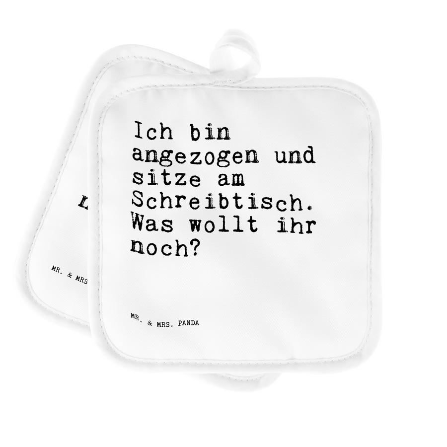 2er Set Topflappen  Sprüche und Zitate Ich bin angezogen und sitze am Schreibtisch. Was wollt ihr noch? Topflappen, Topfuntersetzer, Ofenhandschuh, Topflappen Set, Topflappen lustig, Topflappen mit Spruch, Spruch, Sprüche, lustig, Weisheiten, Zitate, Spruch Sprüche Weisheiten Zitate Lustig Weisheit Worte