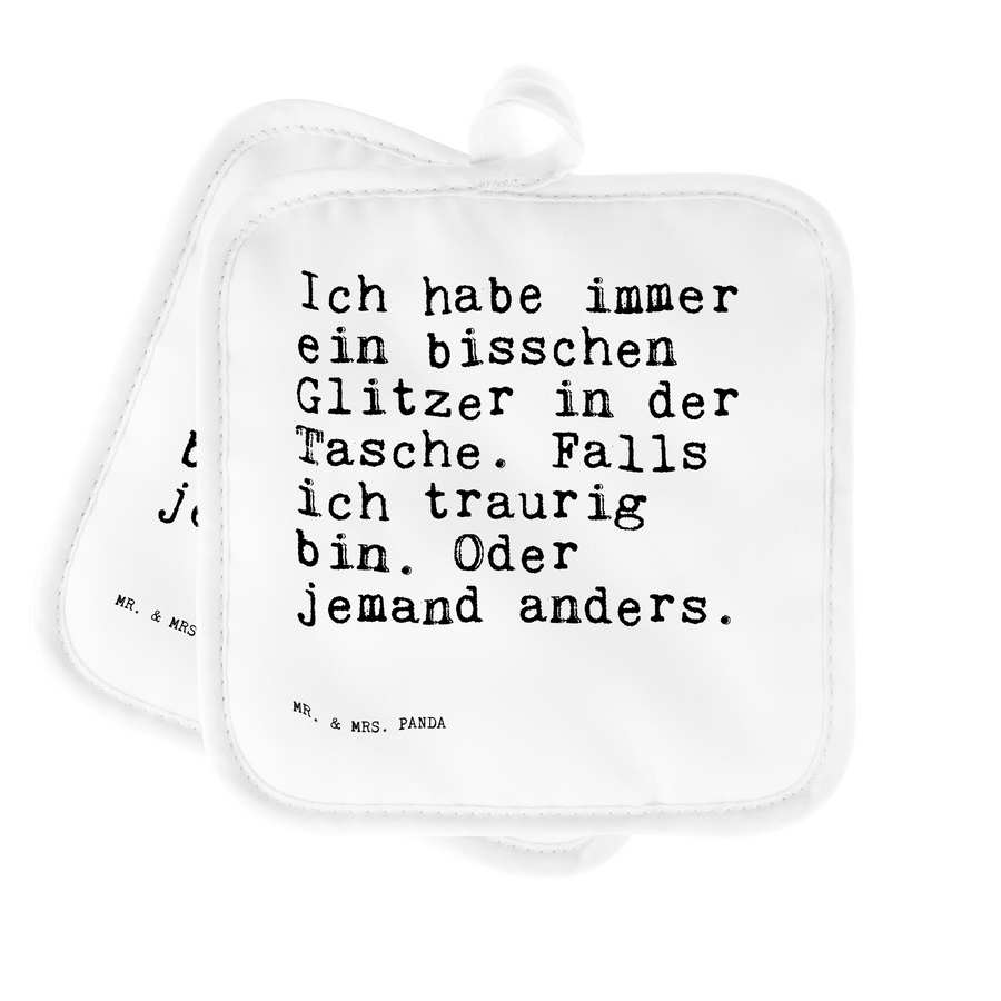 2er Set Topflappen Sprüche und Zitate Ich habe immer ein bisschen Glitzer in der Tasche. Falls ich traurig bin. Oder jemand anders.