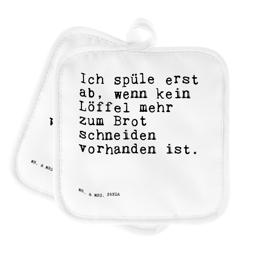 2er Set Topflappen Sprüche und Zitate Ich spüle erst ab, wenn kein Löffel mehr zum Brot schneiden vorhanden ist.