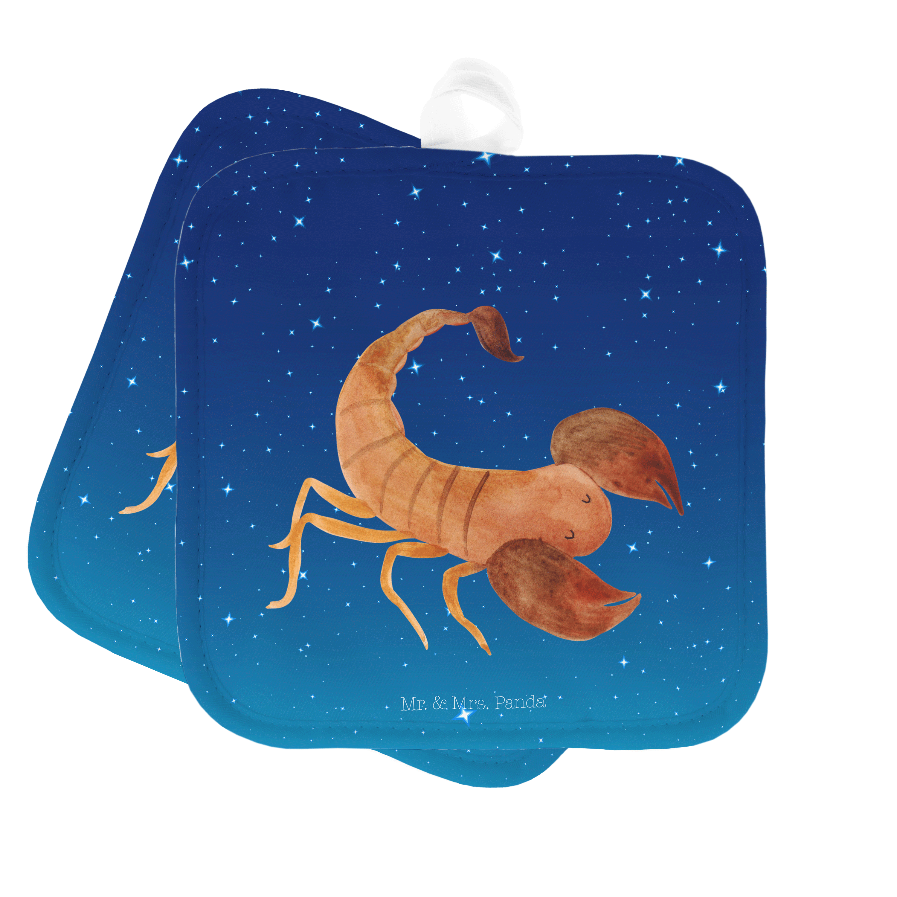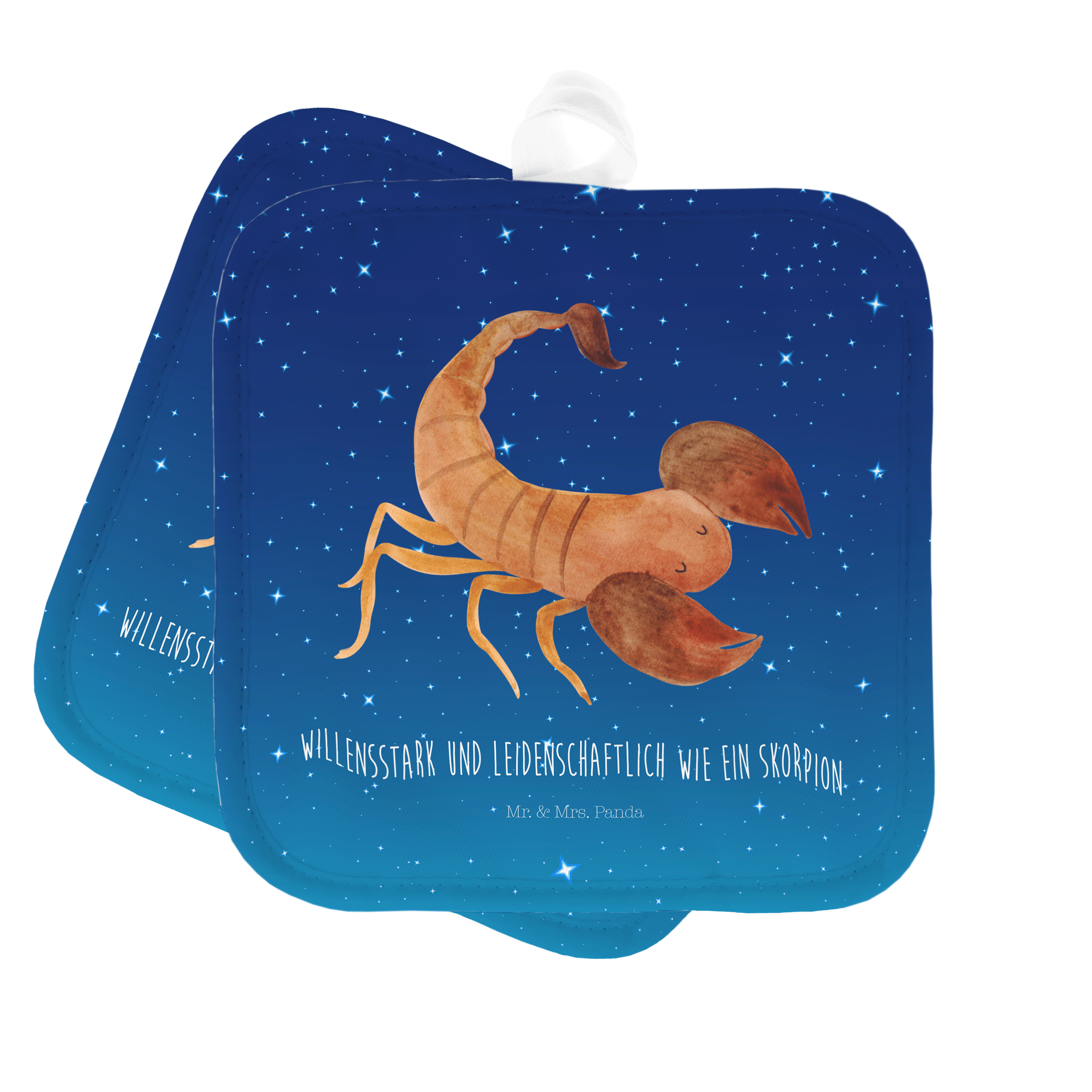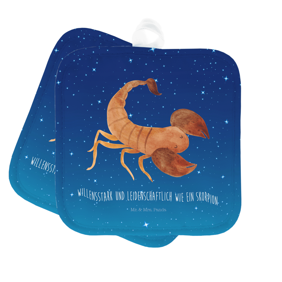 2er Set Topflappen Sternzeichen Skorpion - mit Spruch - Sternenhimmel Blau