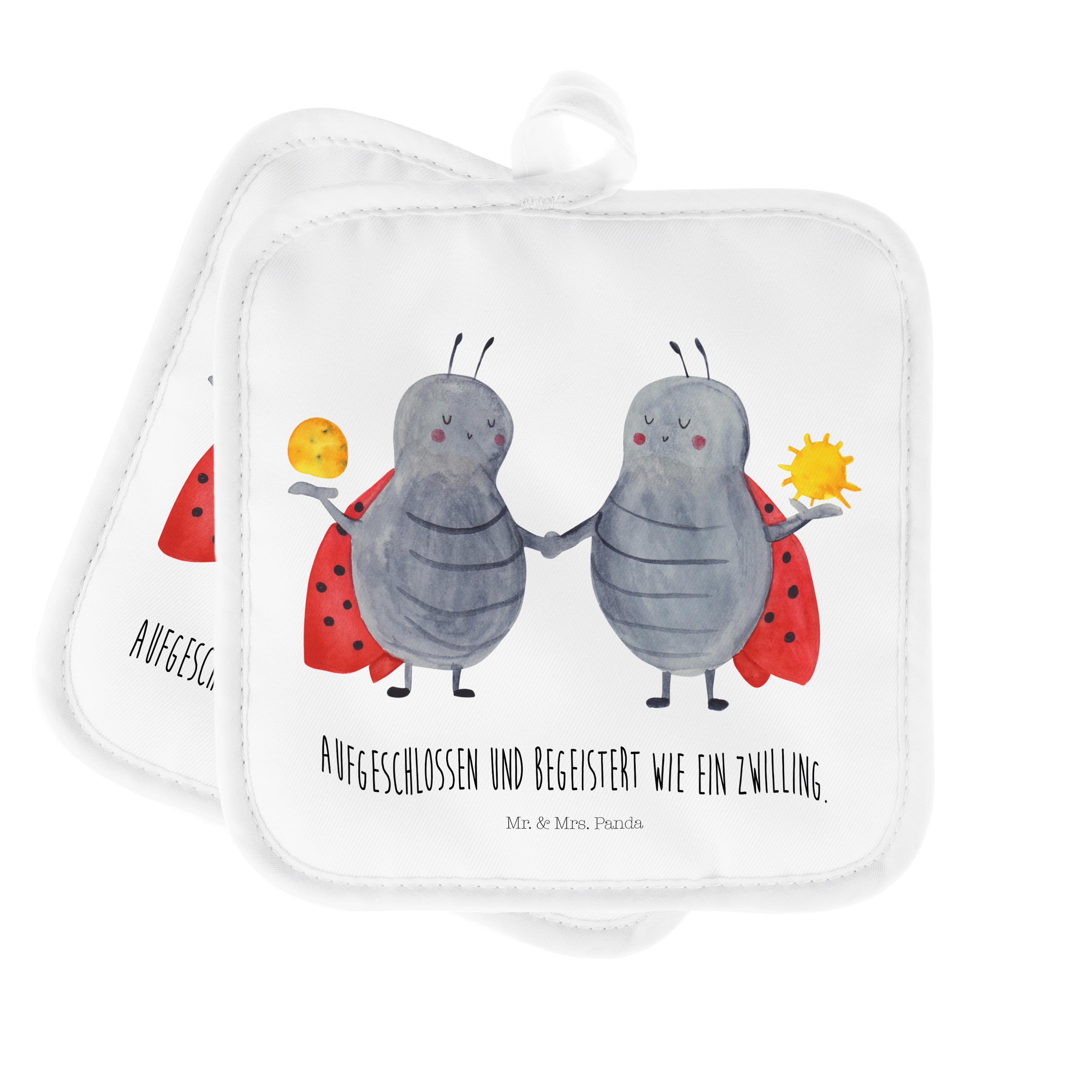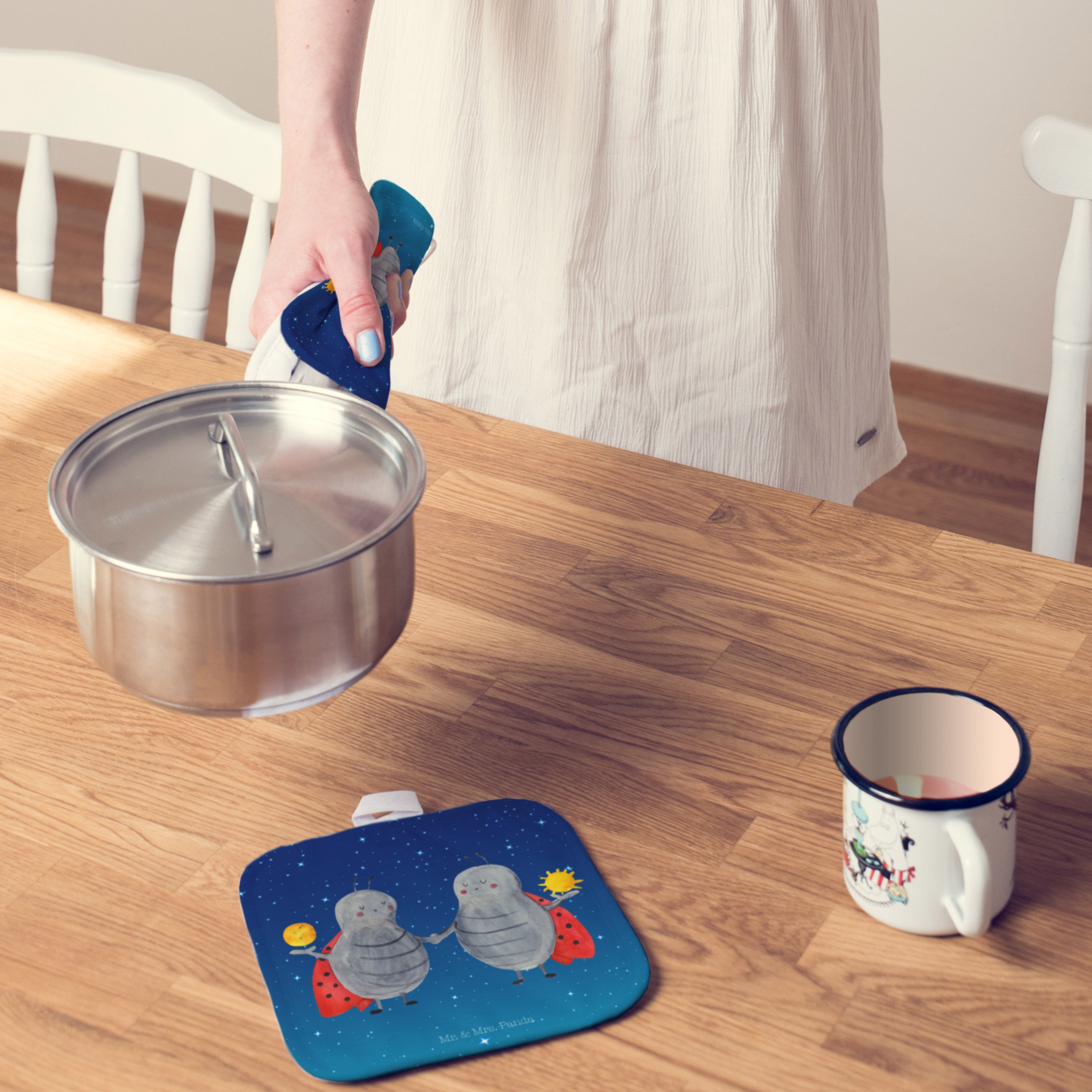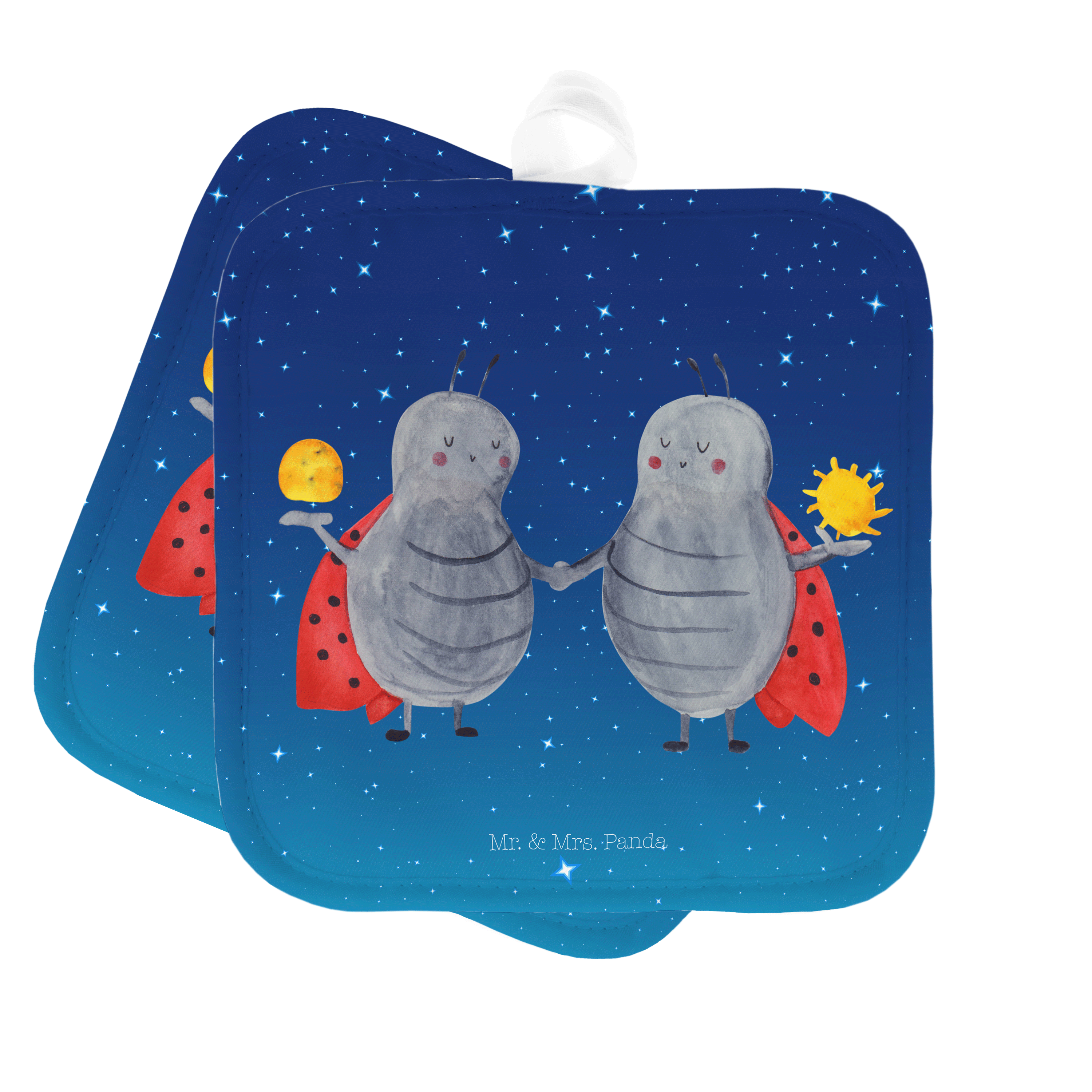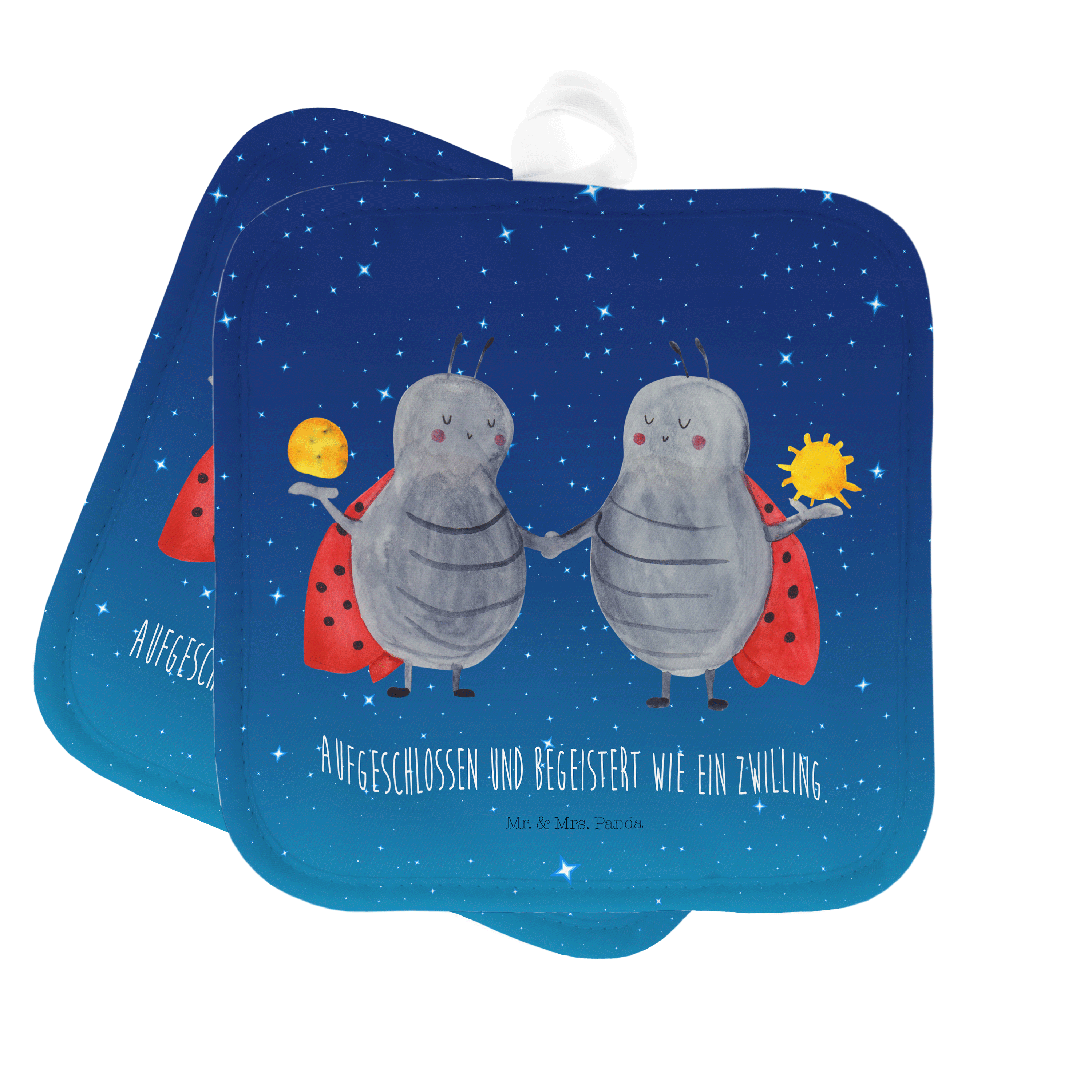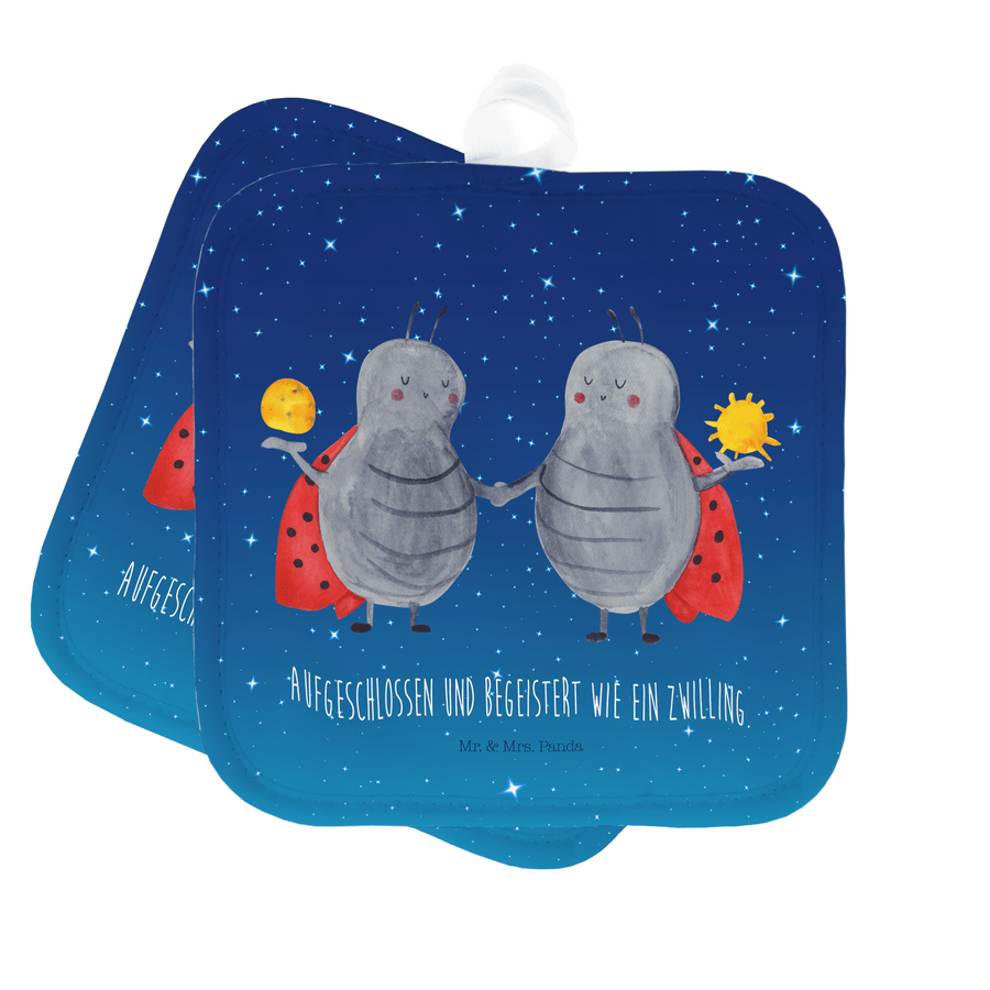 2er Set Topflappen Sternzeichen Zwilling - mit Spruch - Sternenhimmel Blau