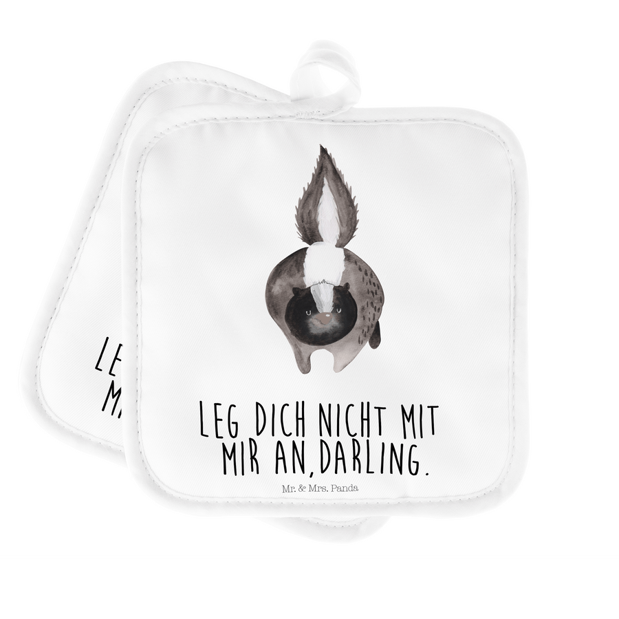 2er Set Topflappen Stinktier Angriff - mit Spruch - Weiß