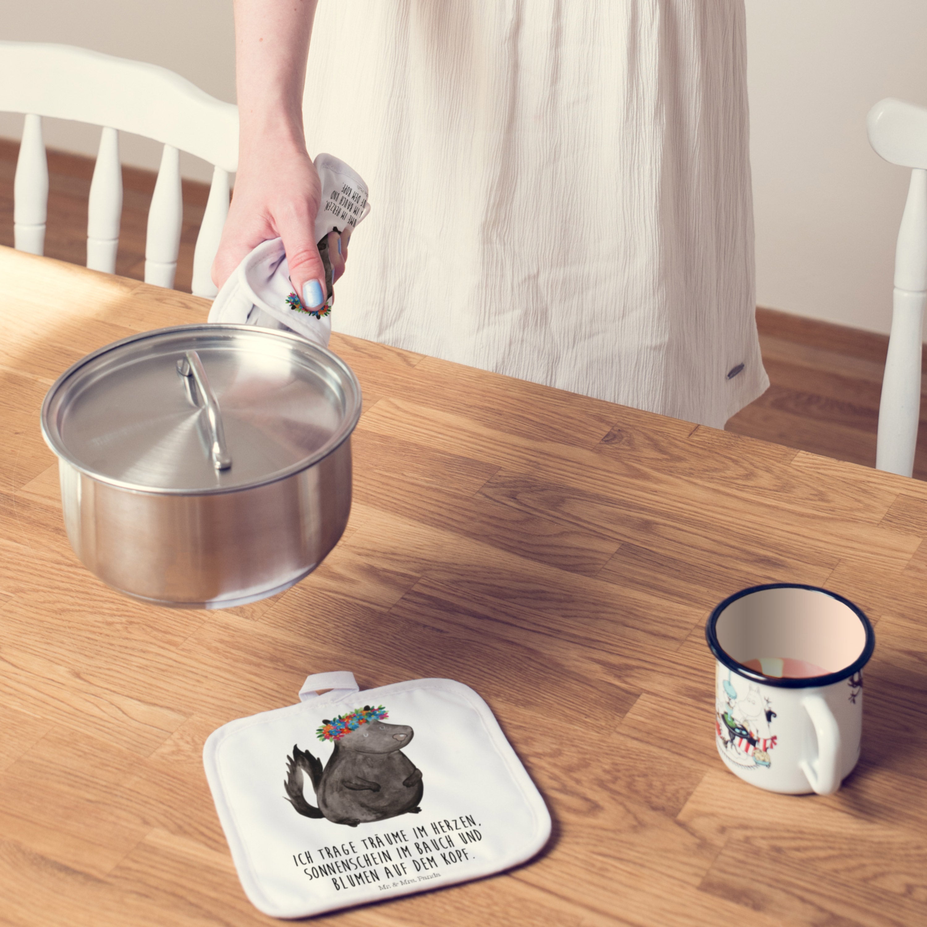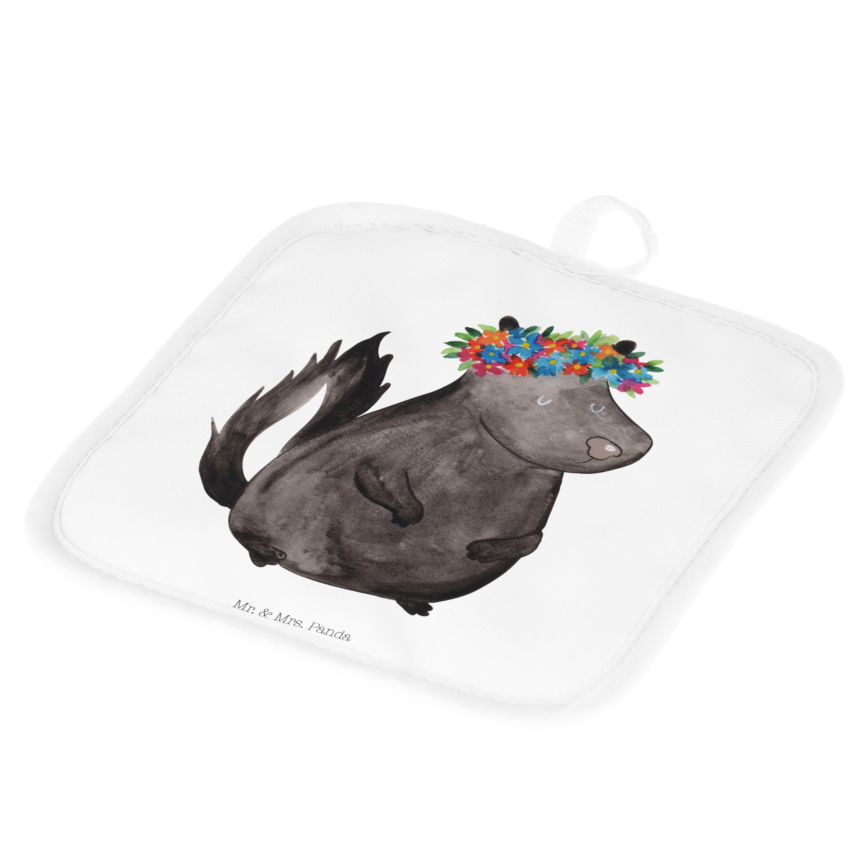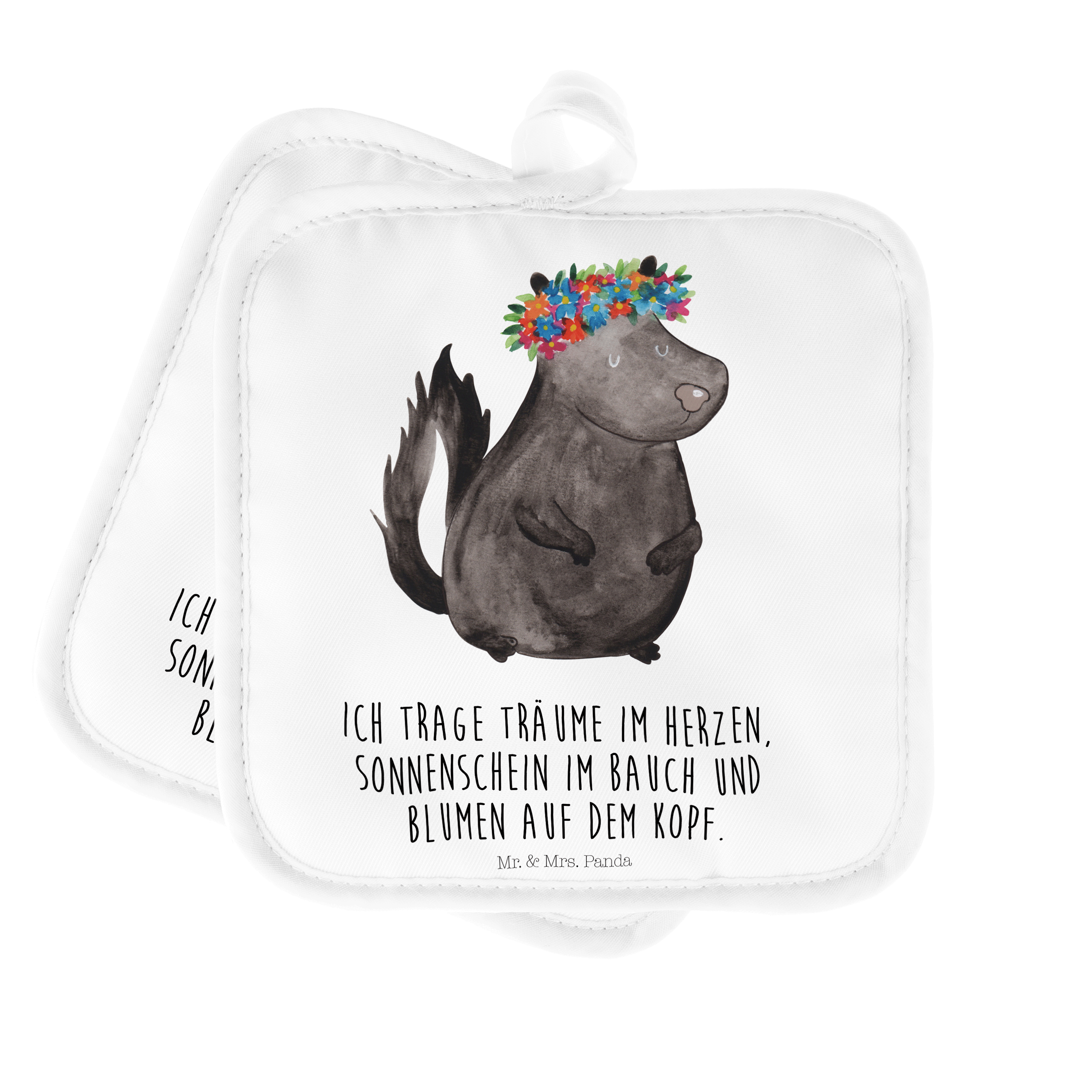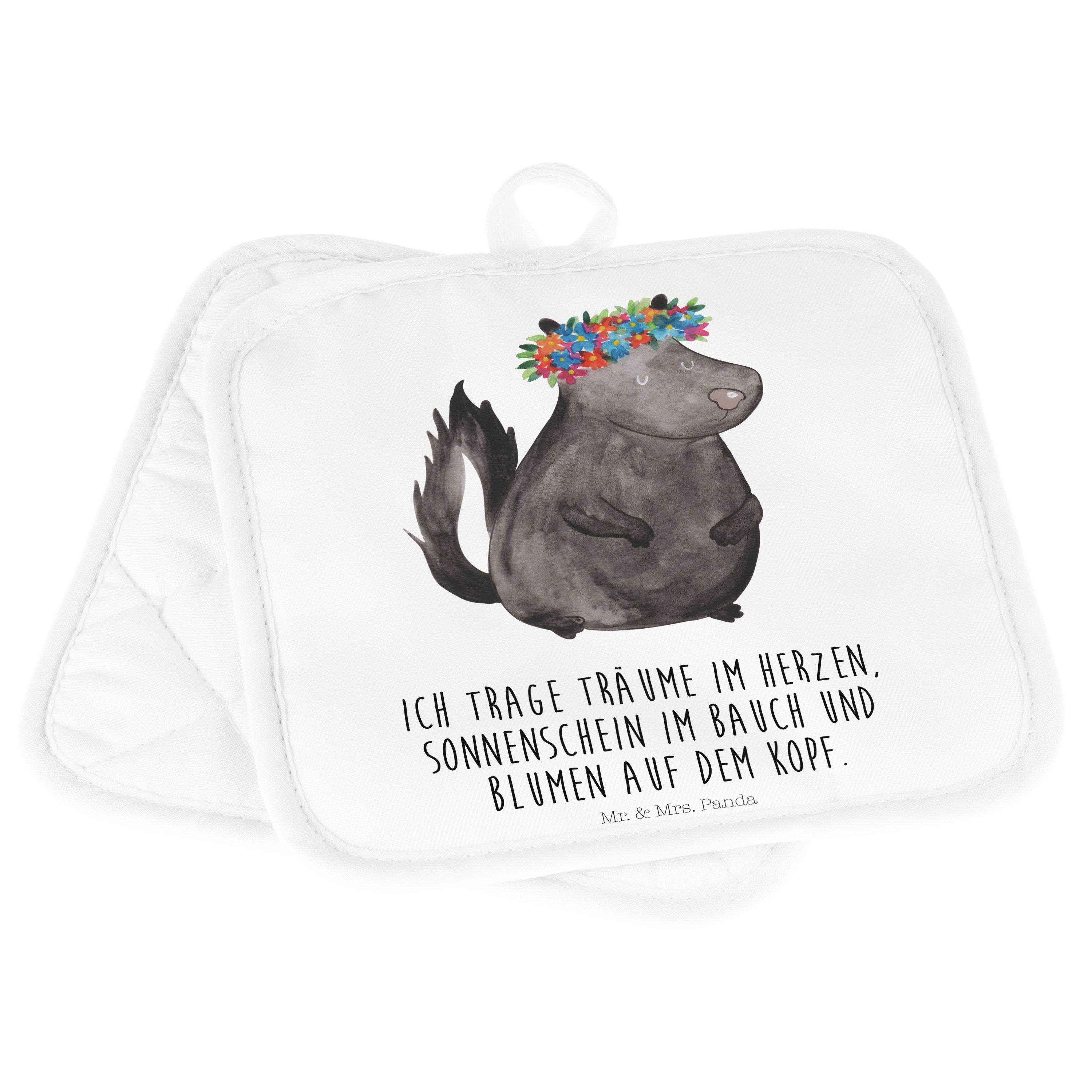 2er Set Topflappen Stinktier Blumenmaedchen - mit Spruch - Türkis Pastell